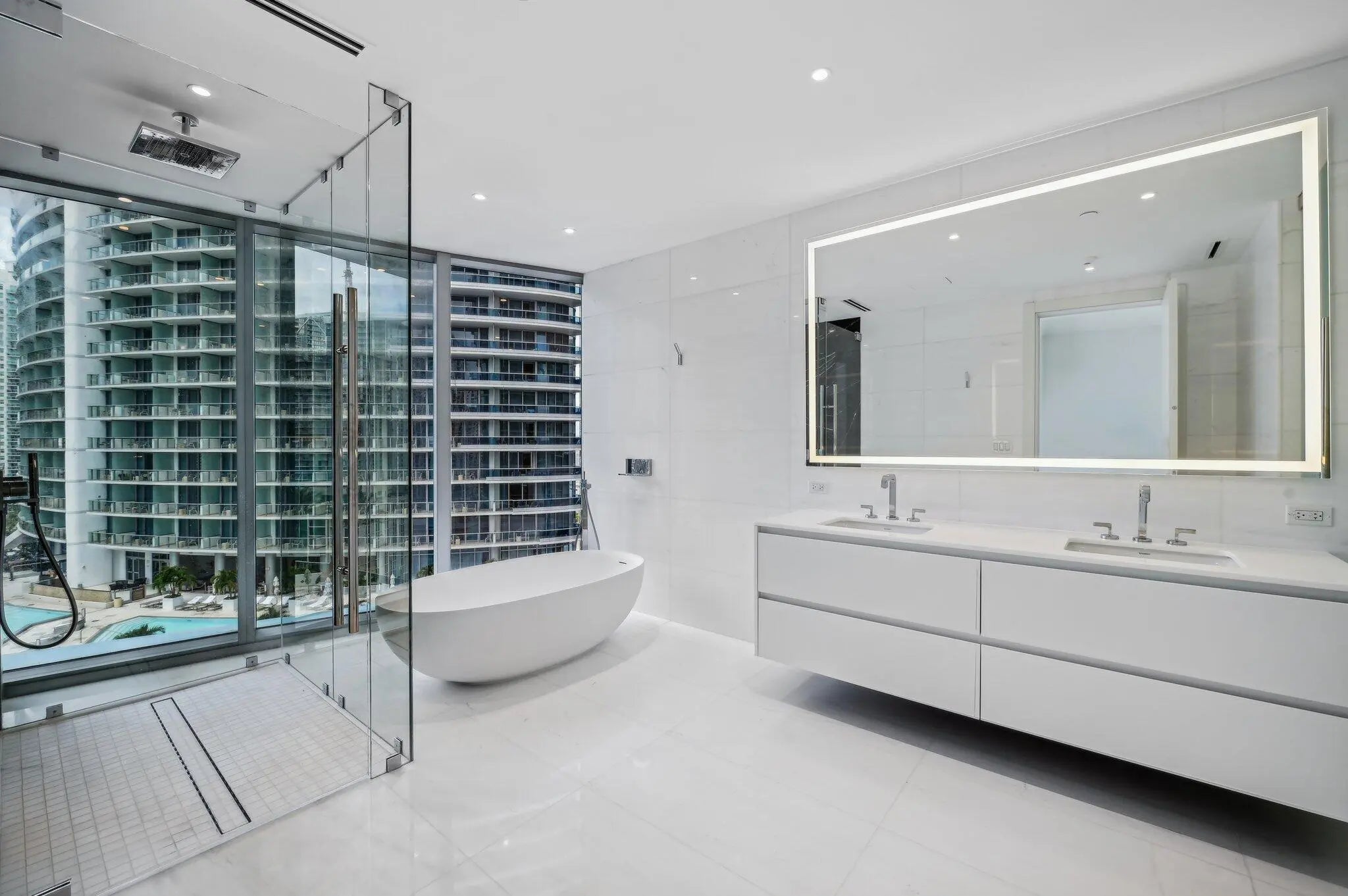 Available Now!! New Construction!! Aston Martin Residences with Breathtaking Panoramic Bay Views. The highly coveted 07 line boasts 2 spacious bedrooms, an open den or add glass walls, and 3 bathrooms. Designed to enhance your lifestyle, the home is adorned with exquisite marble flooring throughout, complemented by walls of glass sliding doors that seamlessly connect the indoor and outdoor living spaces The expansive primary suite features a generous walk-in closet and a spa-inspired bathroom, complete with a soaking tub and a rainfall shower, providing an indulgent retreat for relaxation. The gourmet kitchen is equipped with Gaggenau appliances, perfect for culinary enthusiasts, and effortlessly flows into the spacious living and dining areas. Luxury Amenities and more!!
