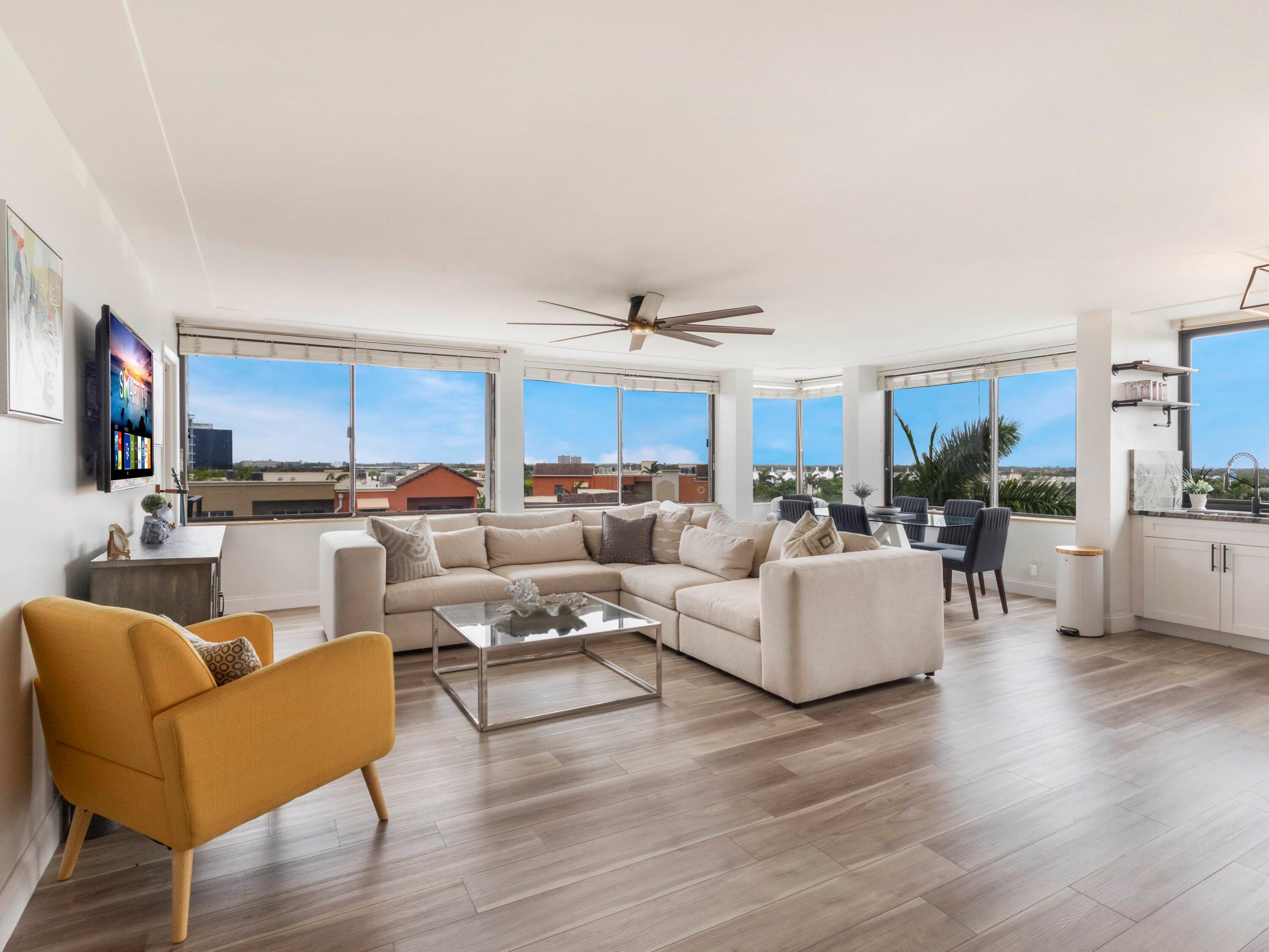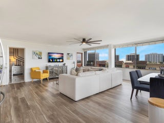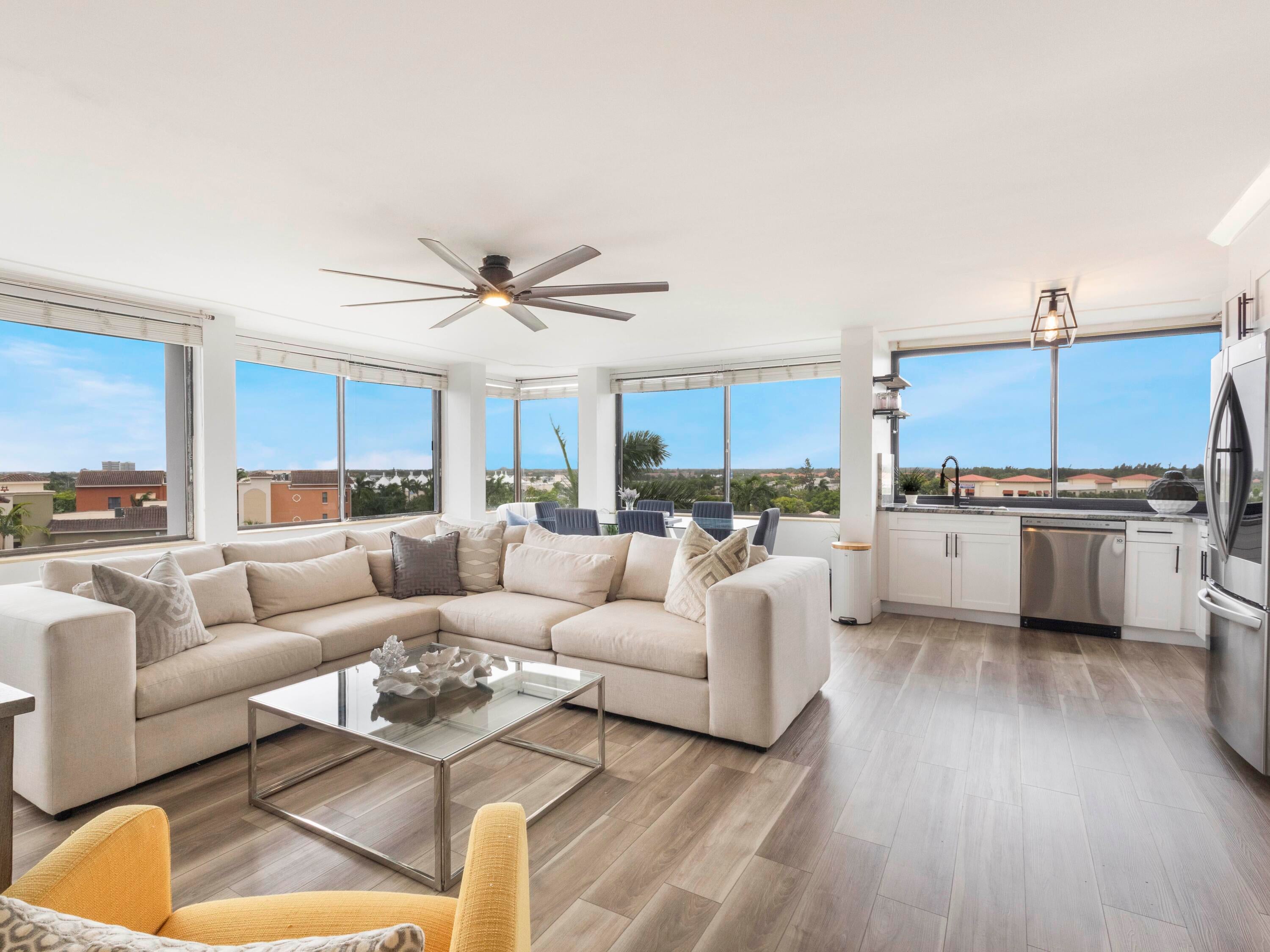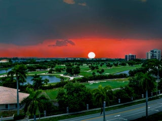 Elevate your lifestyle in this rare, sun-drenched 7th-floor corner condo boasting 2 spacious bedrooms and 2 bathrooms with expansive wrap-around windows that frame sweeping panoramic views of the prestigious Jack Nicklaus Signature, Banyan Cay Golf Course. Start your day on the private balcony and finish the day with breathtaking sunsets. All just steps from the Palm Beach Outlets and Whole Foods. Whether you're looking for an inspired year-round residence or an ideal seasonal escape, this prime location places you just 10 minutes from Palm Beach Airport and downtown West Palm Beach. A rare opportunity in today's competitive market where homes of this caliber are seldom found at such an accessible price. AC replaced end of 2023. Don't miss your chance to own this condo!