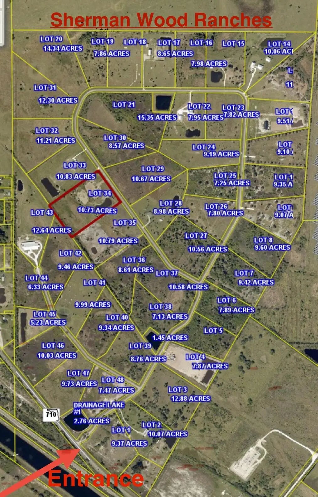 AMAZING opportunity to build your dream home on 10.73 acres of land in the GATED EQUESTRIAN community of Sherman Wood Ranches. This parcel has been CLEARED and FILLED. Lot #34 features a PICTURESQUE kidney shaped pond spanning across 1 acre. Survey available. Minimum build is 2,000 s/f under air. Guest home allowed not to exceed 50% of primary residence. Zoned AGRICULTURAL, horse and cattle permitted. Intended for RURAL ESTATE HOMES, this is a must see to appreciate the BEAUTY and TRANQUILITY of this impressive community.Sherman Wood Ranches is conveniently located off of SR-710. Very close to Lake Okeechobee and downtown Okeechobee. Experience a rural way of life in a forward thinking community.