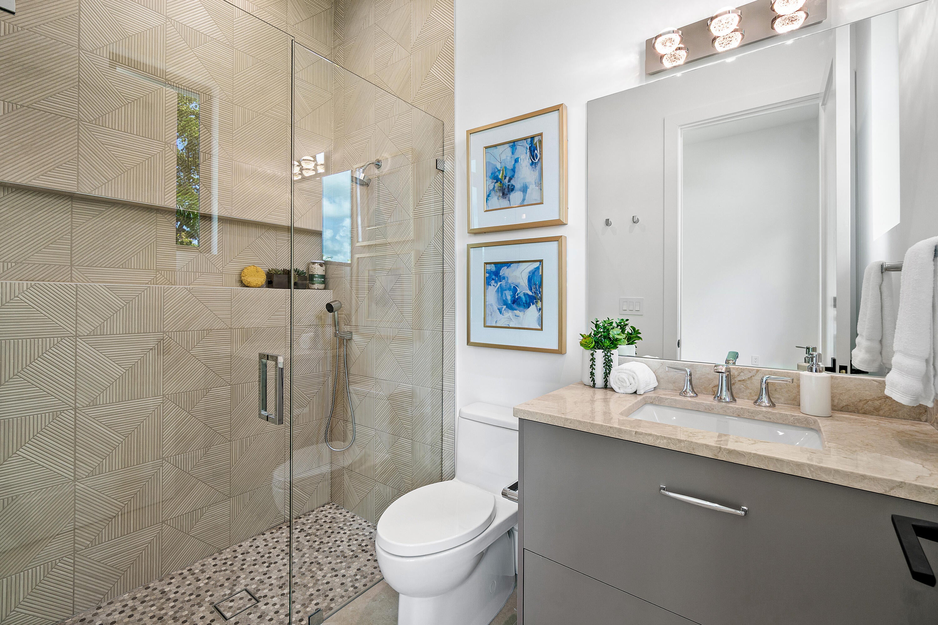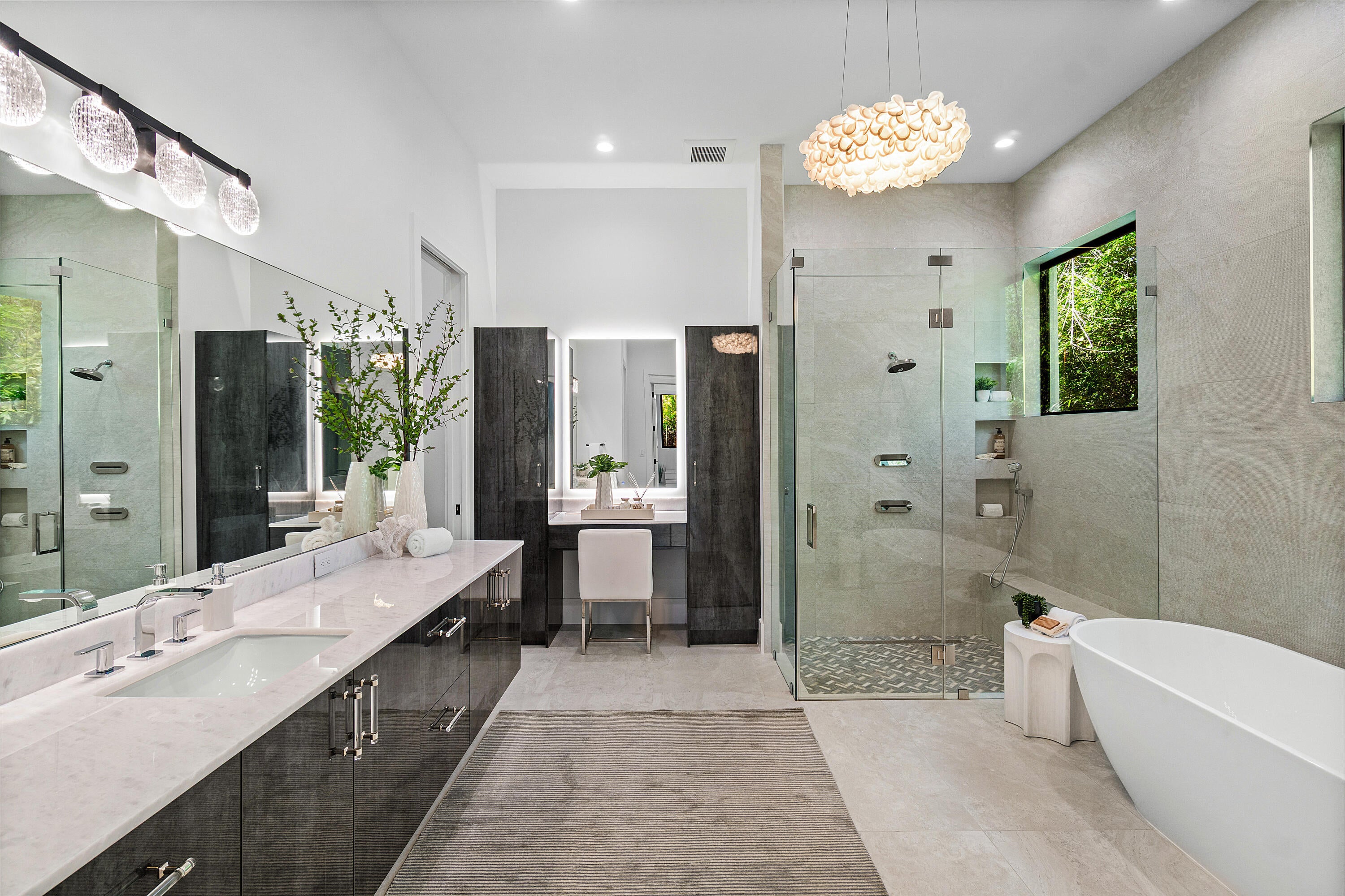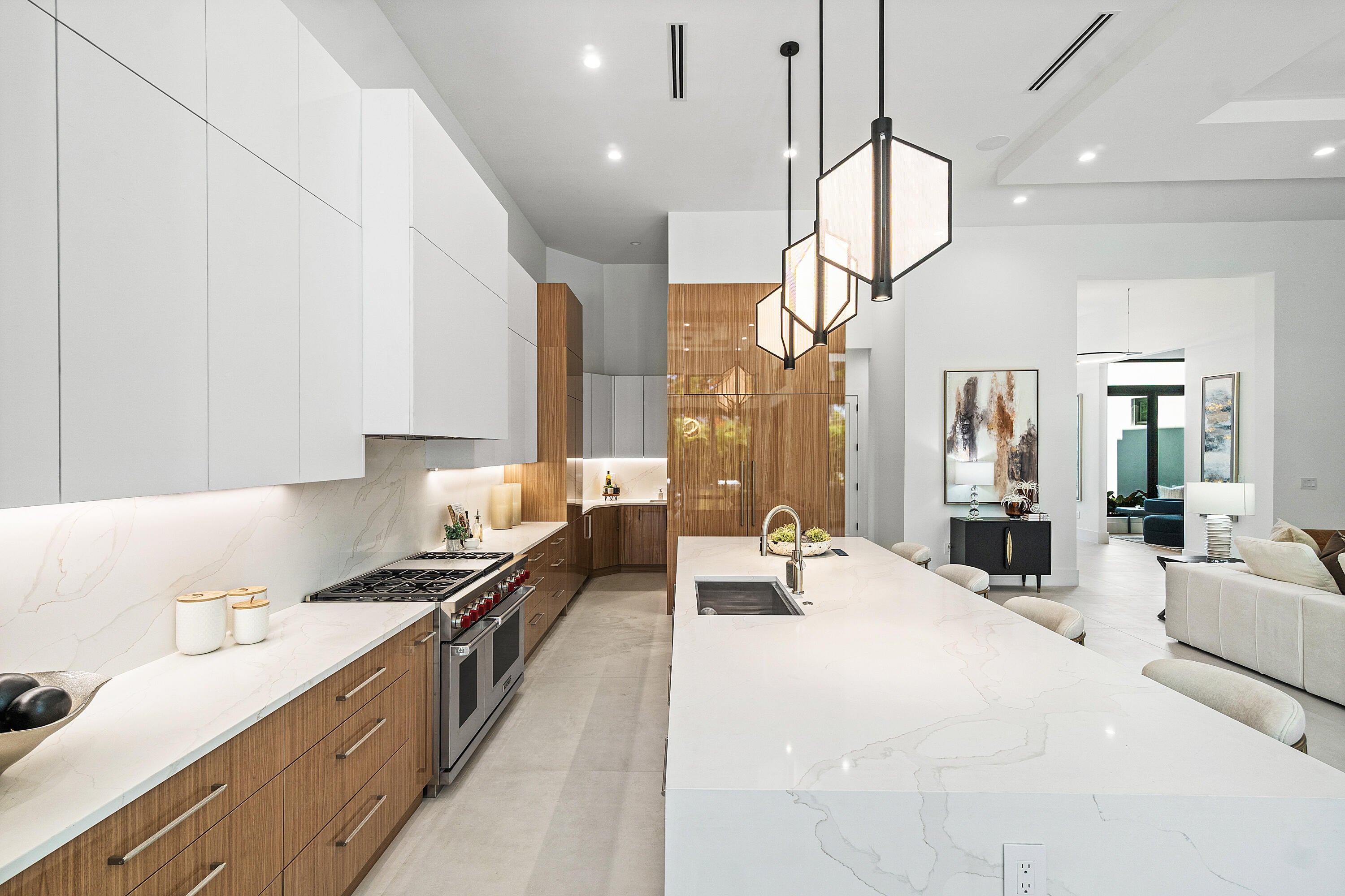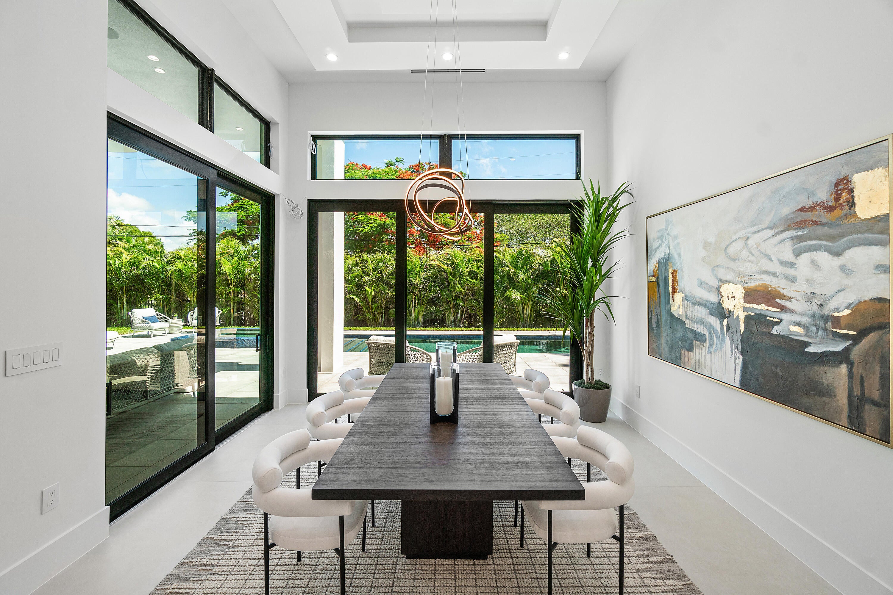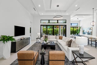 Step into luxury in this brand-new, single-story estate, thoughtfully designed with a bold great room concept and a highly desirable split-bedroom layout.At the heart of the home, soaring ceilings and intricate custom finishes showcase exceptional craftsmanship and timeless sophistication. The expansive floorplan offers a seamless flow, with a unique three-way design split that effortlessly balances comfort, privacy, and functionality--perfect for entertaining or everyday living. The grand primary suite is a private retreat, featuring sweeping views of the backyard and the rare luxury of two spa-inspired bathrooms and dual oversized walk-in closets. Four additional ensuite bedrooms provide ample space for family and guests, while a bright office and a versatile --den/playroom offer flexibility for work and relaxation. The chef's kitchen is a culinary dream, outfitted with Wolf and Sub-Zero appliances, sleek frameless European cabinetry, and a spacious butler's pantry complete with a second sink and refrigerator. Step outside to a resort-style backyard featuring a sparkling pool and spa, a covered patio, and a fully equipped summer kitchen ideal for year-round outdoor entertaining. A split three-car garage offers generous room for vehicles, storage, and even a golf cart. Located just minutes from vibrant Atlantic Avenue and the pristine beaches, this exceptional residence combines privacy, modern elegance, and a premier location.