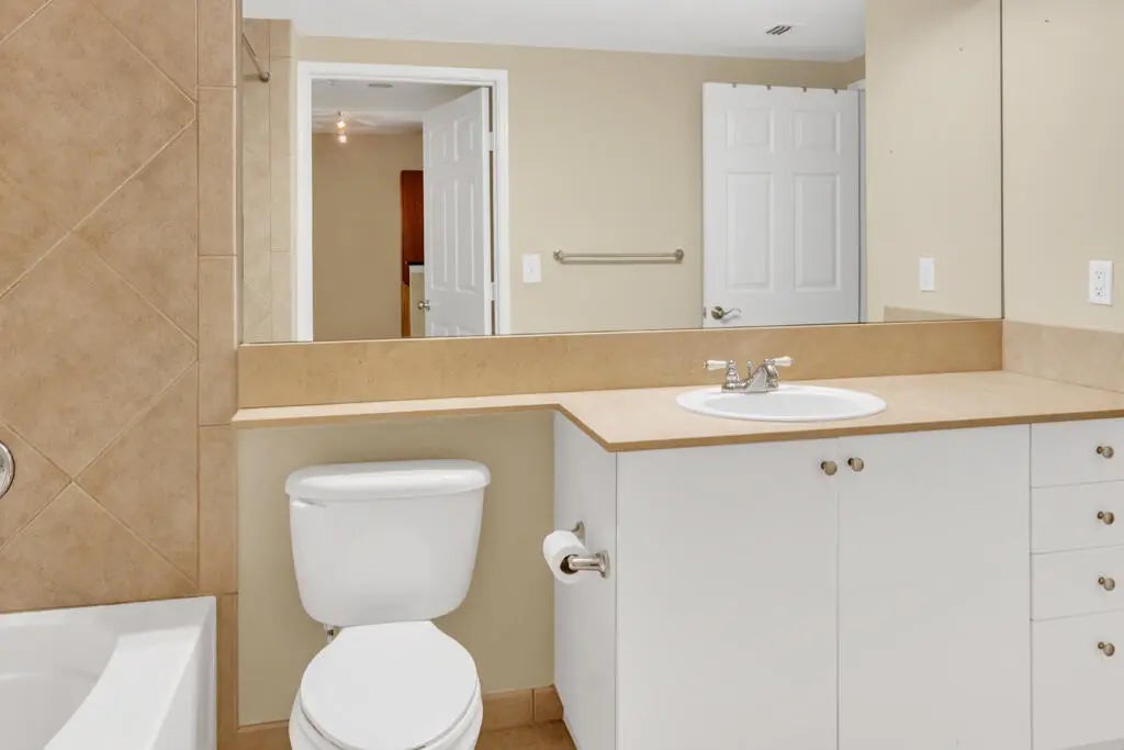 Enjoy the relaxed lifestyle of resort living in this inviting one-bedroom, one-bathroom condo. It features a spacious bedroom with a large walk-in closet. Inside, you'll find a blend of tiled and wooden flooring, along with stainless steel appliances. The south-facing unit provides a view of the pool. It is conveniently located near the elevator, and the parking space is also on the same floor. Marina Village is a pet-friendly waterfront community that offers a range of resort-style amenities. Residents can enjoy amenities such as billiards, a screening room, a state-of-the-art exercise room, a steam room, a community room, and a business center. There's also a heated pool and spa for relaxation. The monthly condo fees include outside building insurance, outside maintenance, roof, water,