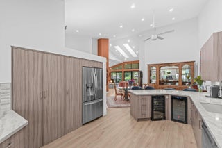 Discover an exceptional opportunity to own a completely renovated luxury condo in the prestigious, award-winning Polo Club. From the moment you arrive, a private elevator welcomes you into this expansive, designer-appointed home where modern elegance meets comfort. The soaring ceilings and thoughtfully designed open layout create an airy, inviting atmosphere. A soft, neutral color palette flows effortlessly throughout the home, providing a calm and cohesive backdrop. The stunning chef's kitchen is a true showstopper, featuring Taj Mahal quartzite countertops, a spacious peninsula with seating, and breathtaking views from every angle. Adjacent to the kitchen, the generous dining area connects seamlessly to the great room and a cozy, tucked-away den--perfect for relaxing or entertaining.