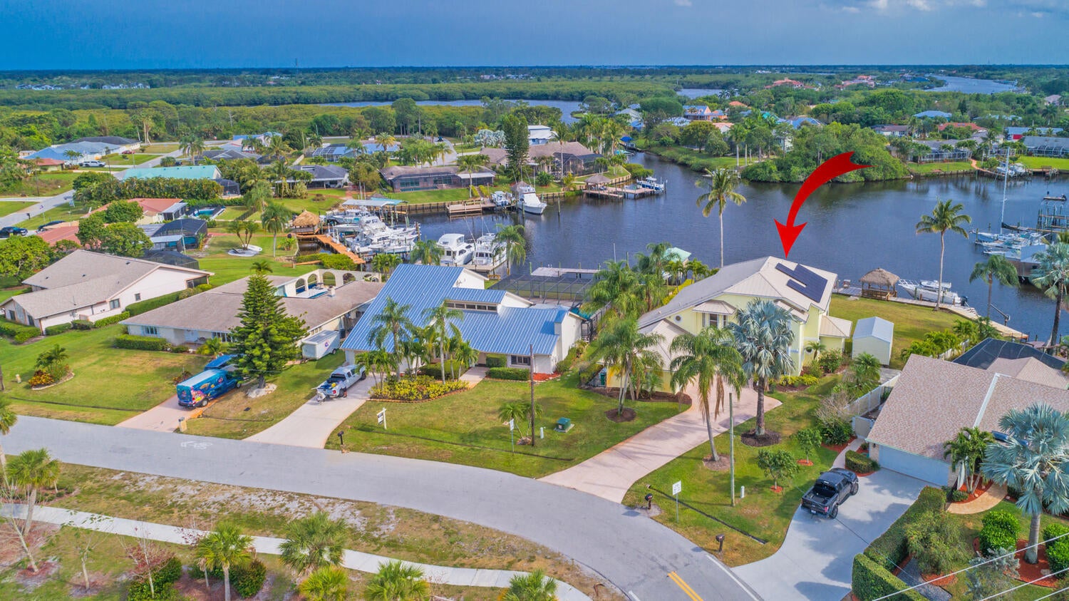 Enjoy tranquil water views and beautiful breezes from the back porch of this gorgeous home that sits on a cove in the St. Lucie River. This custom built 2 story 3/2.5 home has 180' of waterfront complete with dock, tiki hut and boat lift. OCEAN ACCESS. Amenities include full house generator, first floor master bedroom suite, office with french doors, oversized craft room with its own entry door which can be easily converted into guest suite, oversized air conditioned 2 car garage. Fully air-conditioned attic/storage. Accordion storm shutters. Metal roof 2016. Two A/C units 2014. Laminate and tile floors throughout and loft area and porch with amazing views of the river. Newly installed elevator. Some pictures have virtual staging
