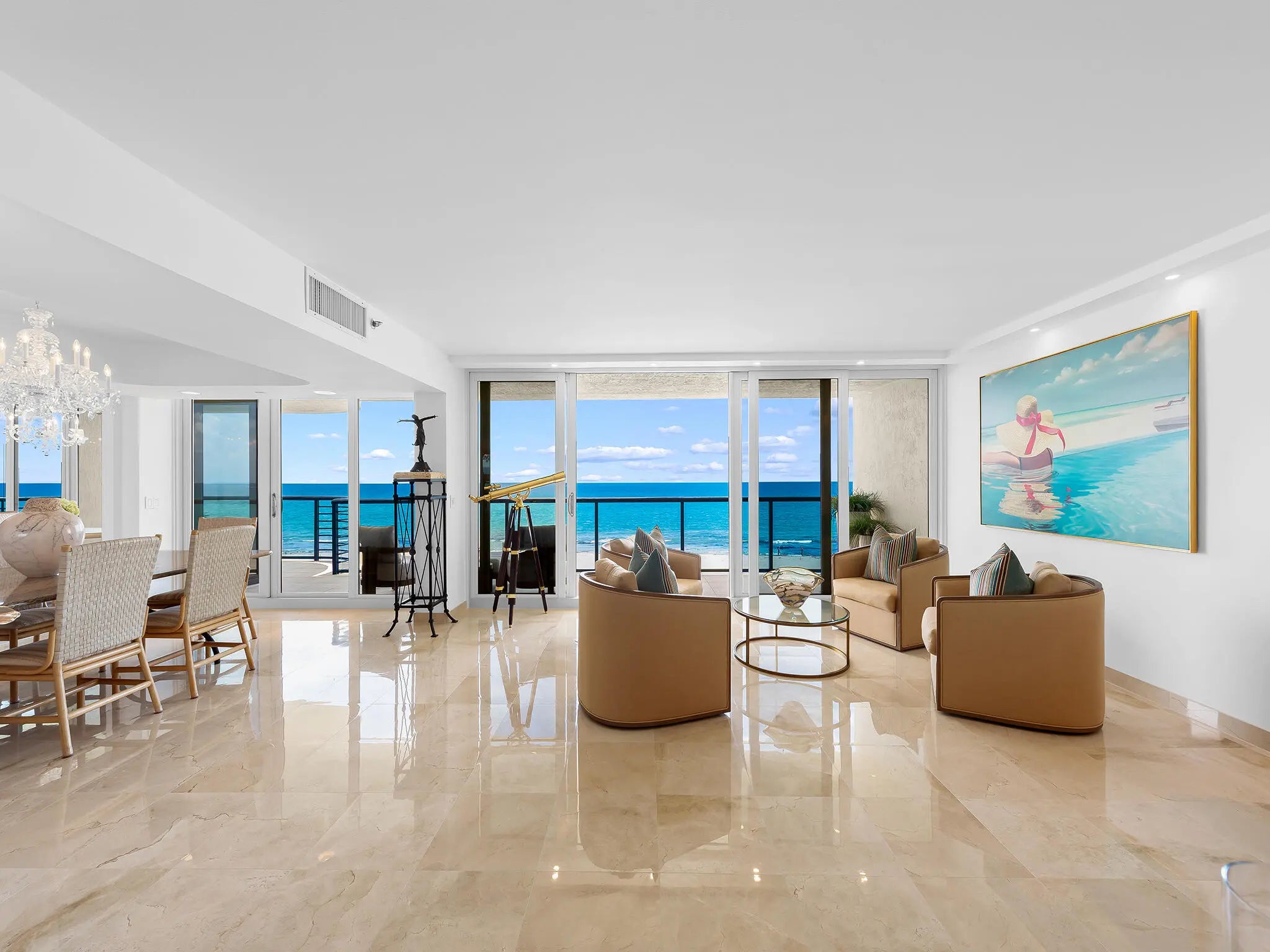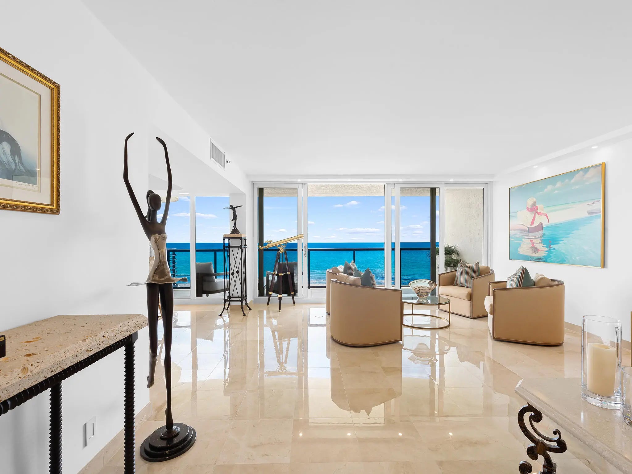 Villa Magna is a crown jewel in Highland Beach--an ultra-luxury, fully renovated oceanfront residence offering direct, unobstructed ocean views and over 2,500 sq ft of refined living. This 3-bed, 3-bath unit features expansive balconies, serene Intracoastal views, and elegant interiors. Located on the 4th floor, it provides panoramic vistas of both sunrise and sunset. Residents enjoy resort-style amenities, including a heated pool, 24/7 security, gym, and Club Room. A recent $21M renovation has elevated Villa Magna to Class-A status with milestone compliance, setting the standard for coastal living. Dock available, sold separately.