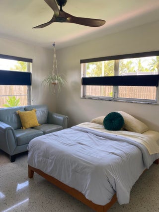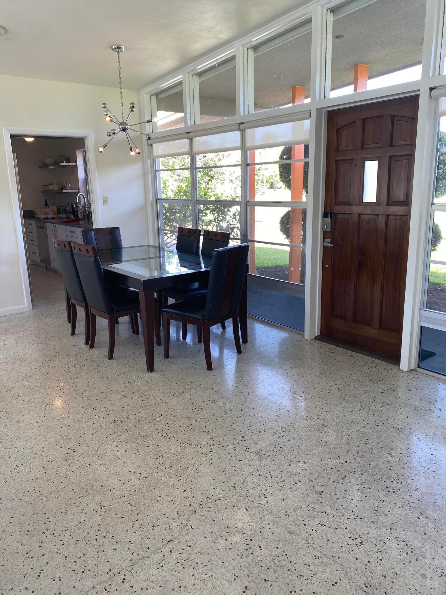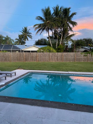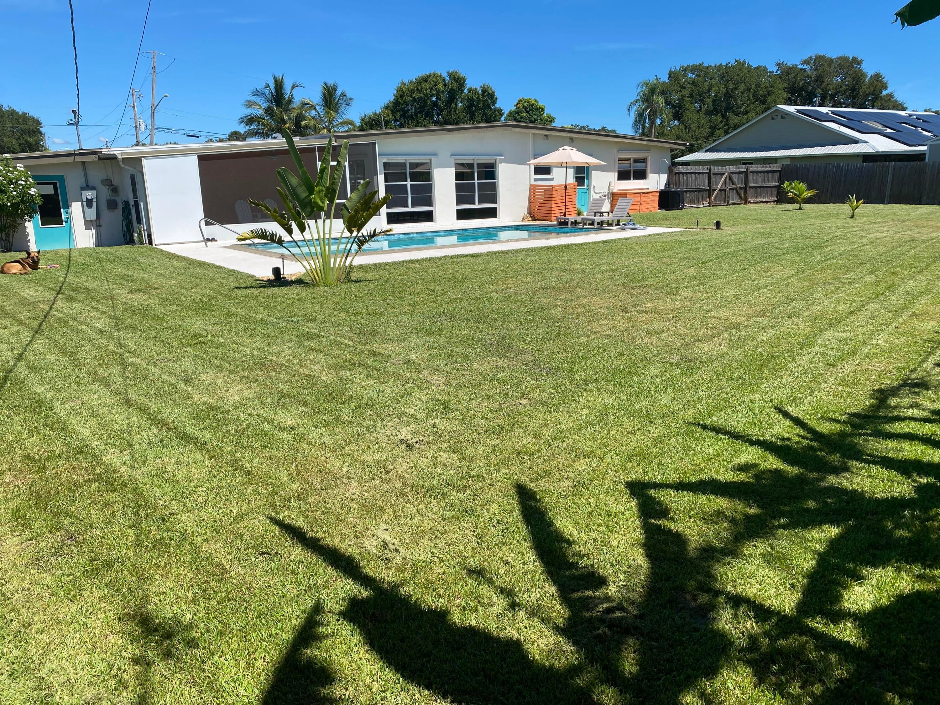 Mid-Century CBS modern home with 21st-century enhancements. No HOA, no restrictions. Desirable Vero Shores safe neighborhood, only five miles from the beach. Full hurricane protection includes shutters and custom hurricane garage doors.15X30 heated saltwater pool (2020heat pump, 2018energy-efficient V/S pool pump, 2024 saltwater system) Screened porch with ceiling fan overlooking large fenced backyard. Terrazzo floors throughout, renovated kitchen: gas range, SS appliances, custom cabinets, r/o filtration, pantry, laundry room. Features high ceilings-bright airy interiors. Electric updated:200amps/2020, insulated 2-car garage, 2018 Main H20 line repiped w/new shut-off valve. Located close to shopping, pharmacy, gas, and groceries. Rmsizeapprox.