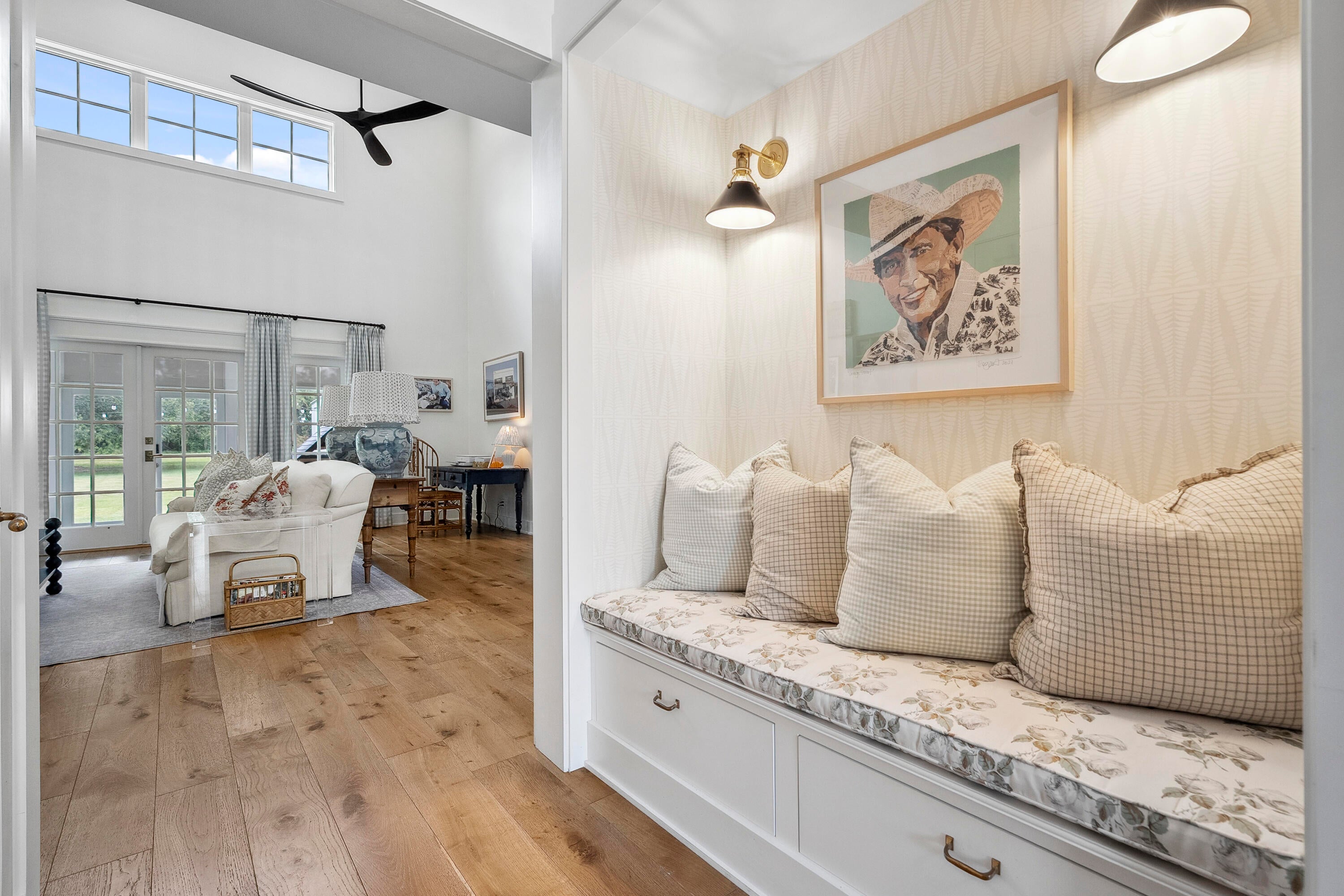 Built-in Shelves, Closet Cabinets, Foyer, French Door, Cook Island, Laundry Tub, Pantry, Split Bedroom, Volume Ceiling, Walk-in Closet