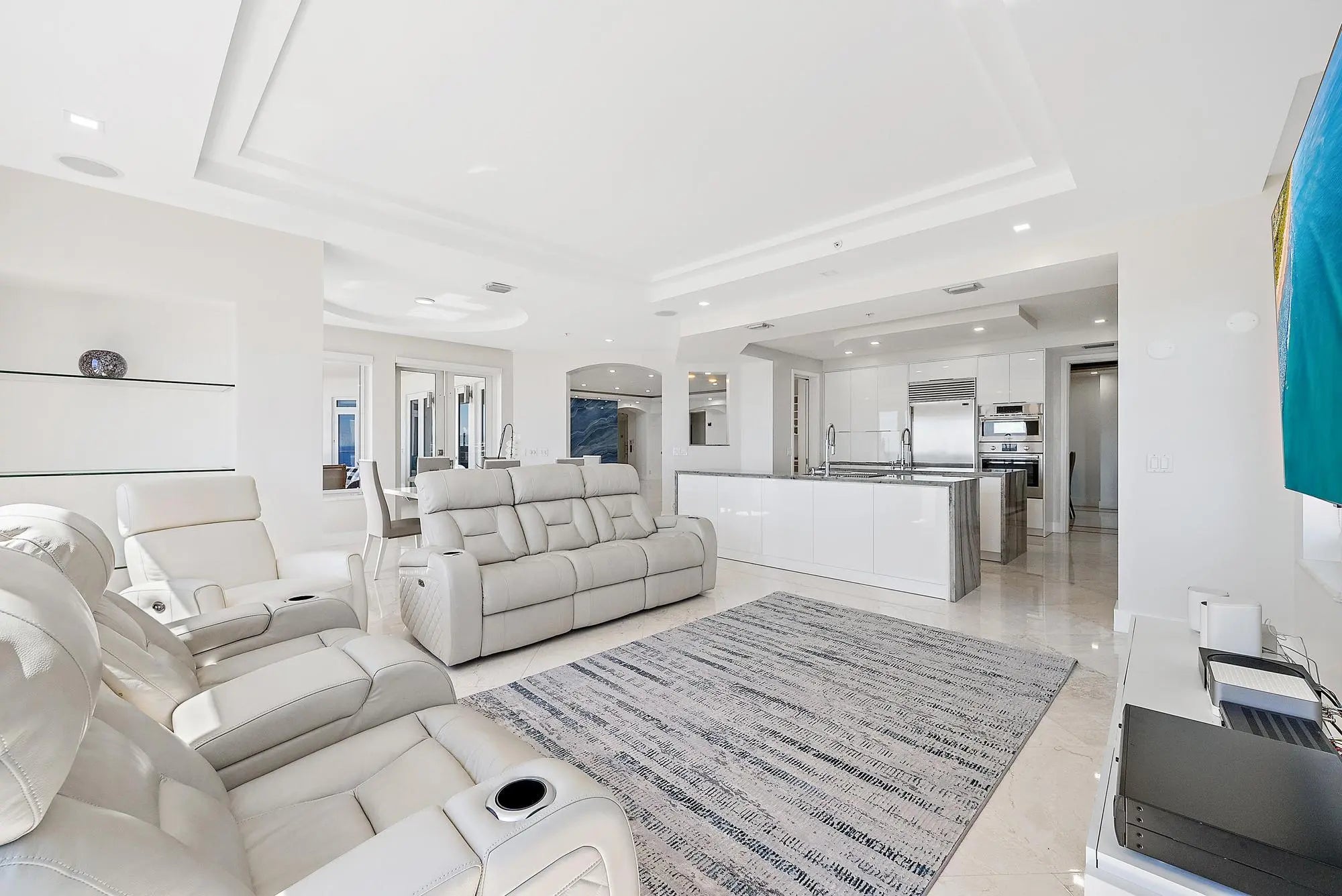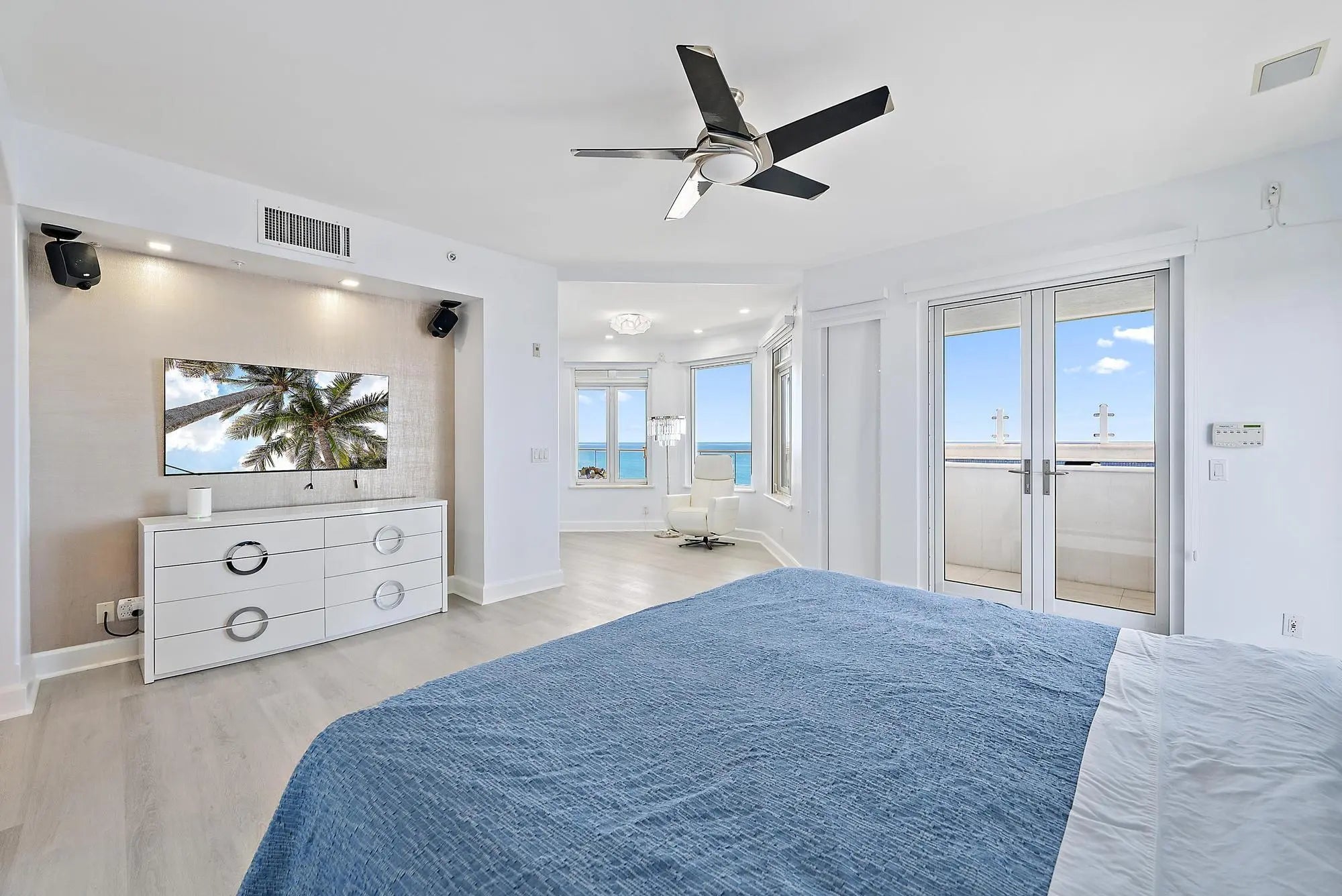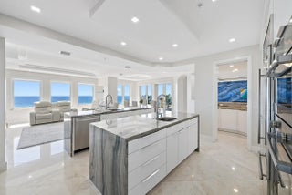 Private Penthouse Oasis with Sweeping Ocean Views. Elevate your lifestyle in this exquisite fourth-floor penthouse at the exclusive Athena, accessible by your own private entry and elevator. This coastal residence offers just under 4,000 square feet of single-level living, showcasing unobstructed, panoramic views of the Atlantic Ocean from every room. Designed with sophistication in mind, the 4-bedroom, 4-bath layout features a spacious split-bedroom floor plan, full-impact windows, and a grand great room. Entertain effortlessly in the formal living area, highlighted by a custom Italian porcelain feature wall and a sleek wet bar. The chef's kitchen is a culinary masterpiece, outfitted with quartzite countertops and top-tier Bosch, Sub-Zero, and Thermador appliances. This rare offering ...