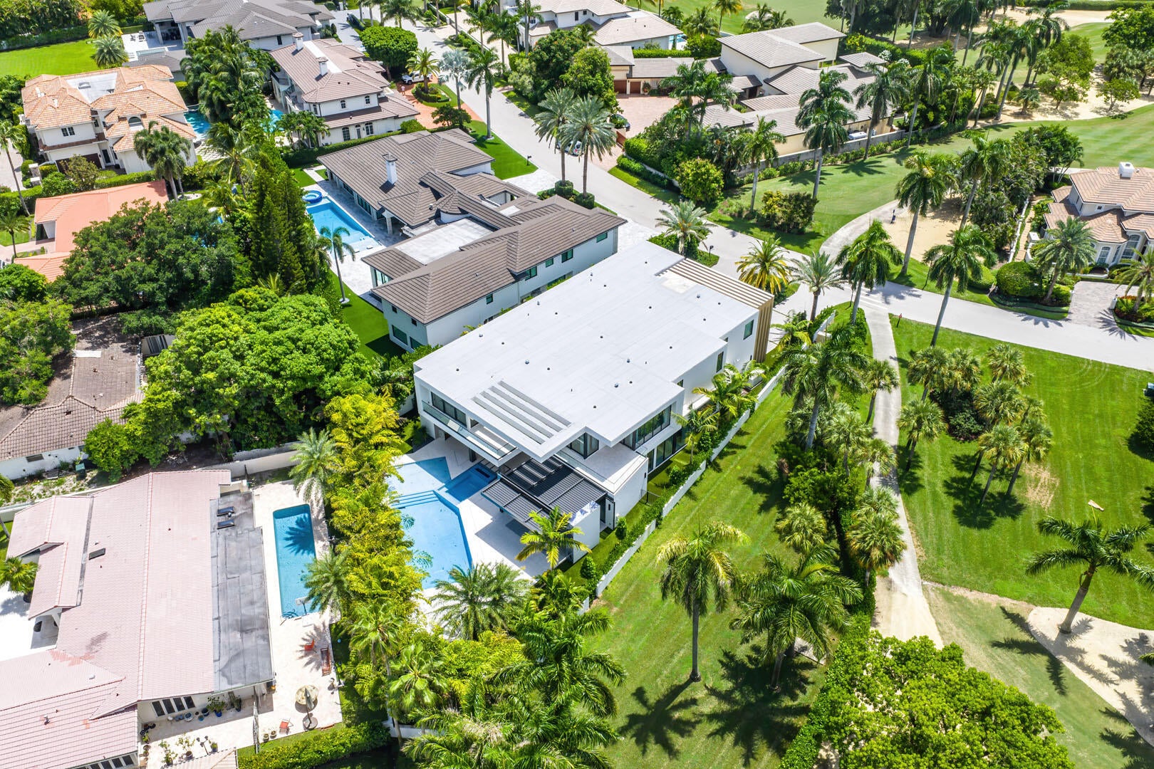 This brand-new contemporary estate overlooks the Jack Nicklaus Signature Golf Course and offers over 8,400 SF of designer living. Built by Albanese & Sons with interiors by Zelman Style Interiors, the furnished residence features six bedrooms, seven full and two half baths. Highlights include a dramatic two-story foyer, great room with custom wine wall and marble fireplace, chef's kitchen with Wolf appliances, glass-wrapped office, theater, and club room with full bar.and covered pavilion. Additional features include a 4-car + golf cart garage, Control4 automation, elevator, and full-house generator. The buyer is responsible for documentary stamp taxes on the deed and title insurance.