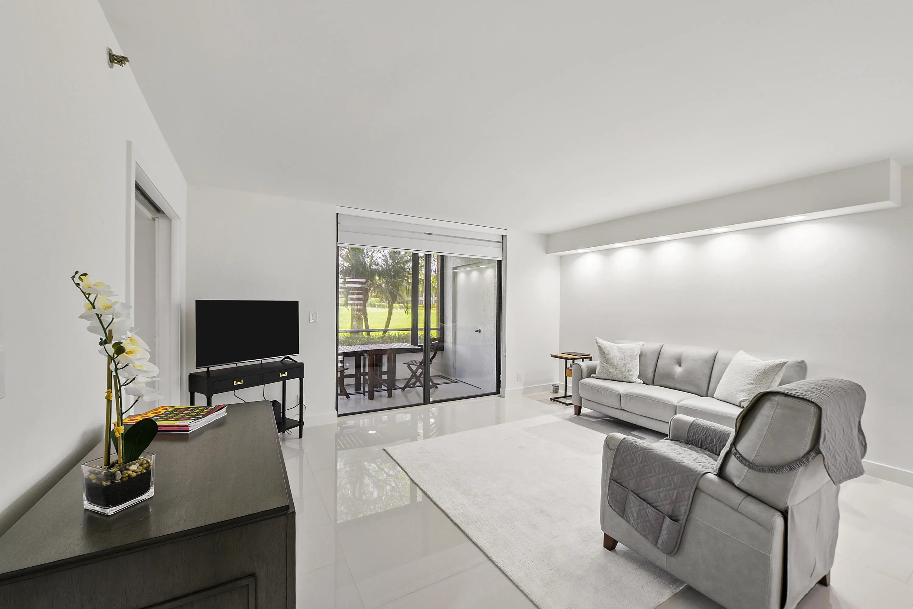 This completely remodeled first-floor residence in the Promenade at Boca Pointe offers three bedrooms, two bathrooms, and a spacious open layout filled with natural light. The modern kitchen features sleek finishes, while the expansive living and dining areas open to a patio with peaceful golf course views. The primary suite includes generous closets and a luxurious spa-like bathroom. Residents enjoy resort-style amenities, including a sparkling pool, clubhouse, and optional membership to Boca Pointe Country Club. Conveniently located near fine dining, shopping, and Boca Raton's beaches,