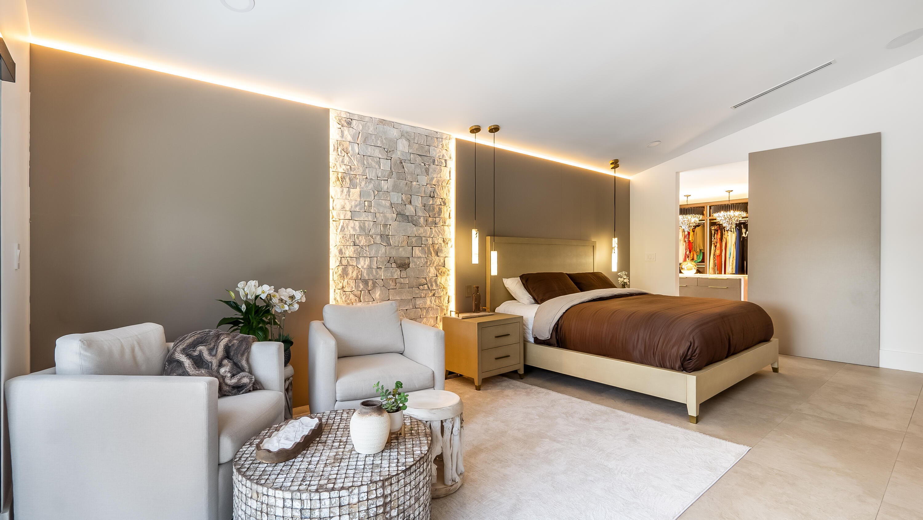 Closet Cabinets, Ctdrl/Vault Ceilings, Custom Mirror, Decorative Fireplace, Cook Island, Sky Light(s), Split Bedroom, Walk-in Closet