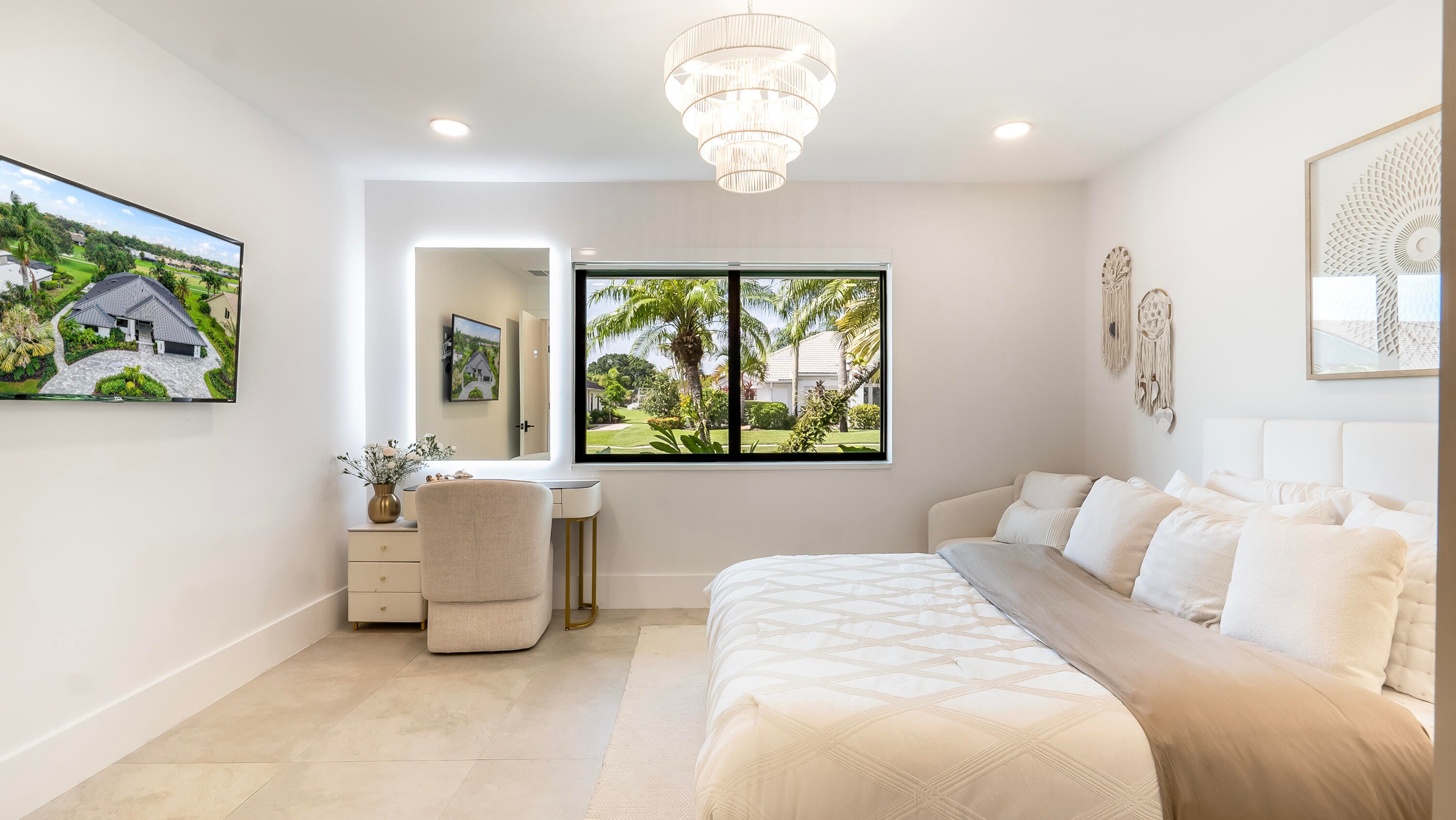 From the moment you arrive, this fully renovated home captivates with a floating water walkway and front glass pivot door. Inside, soaring 19-foot ceilings, open-concept living, and impeccable high-end finishes set the stage for sophisticated living. The residence features 4 en-suite bedrooms with custom closets, a spacious primary bedroom with wet-room and dream closet, a chef's kitchen with Wolf appliances, bespoke cabinetry, and quartzite island, a modern Taj Mahal stone fireplace, as well as a 300-bottle wine cellar and man cave garage that elevate lifestyle and entertainment. Step outside to your private resort oasis with a saltwater pool, sunken lounge, in-pool fire pit, swim jets,10-person spa, and cabana steam bath, all framed by lush tropical landscaping and golf course views.This stunning Fully Renovated Home with No Detail Overlooked can be yours. Exterior & Structural "' 'New Standing Seam Metal Roof - Installed 2024 (50+ year life expectancy, energy-efficient, hurricane-rated) "' 'Complete Foam Insulation System - Installed 2024 for maximum energy efficiency "' 'Smooth Stucco Finish - Entire exterior refinished 2024 "' 'Freshly Painted Interior & Exterior - 2024 "' 'Hurricane Impact Protection - Installed 2024 "' 'High-performance impact windows & doors (energy-efficient & noise reducing) "' 'Insulated hurricane-rated garage doors (2-car + golf cart garage) "' 'Expanded Circular Driveway - New paver driveway & walkway with modern hardscaping (2024) Mechanical, Electrical & Plumbing "' 'Dual High-Efficiency HVAC Systems - 2 new units with condensers (2024) "' 'Complete HVAC Ductwork Replacement - Optimized for air quality and comfort (2024) "' 'Smart Control Thermostats - Multi-zone management (2024) "' 'HVAC UV Light Protection "' 'Upgraded 200-Amp Electrical Panel - Installed 2024 "' 'Whole-House Surge & Lightning Protection System - 2024 "' 'Smart Hybrid Electric Water Heater - Energy-efficient with intelligent controls (2024) "' 'Full Repiping Throughout Entire House - Installed 2024 (all new plumbing supply lines) "' '500-Gallon Underground Propane Tank - Installed 2024 (dedicated to range & generator-ready) "' 'Tesla EV Charger - Installed 2025 "' 'Dedicated Irrigation Well - Installed 2025 with rust-prevention system "' 'Smart Irrigation System - Wi-Fi controlled (2025) "' 'Smart Smoke & Carbon Monoxide Detectors - Throughout Lighting & Home Automation "' 'Fully Integrated Smart Home System - Lighting, security, sound, and climate control "' 'Smart Switches & Dimmers - Throughout "' 'LED Recessed High-Hat Lighting - Energy-efficient & modern design "' 'Motorized Window Treatments - Programmable for privacy & efficiency "' 'Smart Sonos Whole-House Audio System - Interior & exterior zones Pool & Outdoor Living "' 'Modern Pool Resurfacing & Custom Tile Design - 2024 "' 'Smart Automated Pool System - Jets, bubbles, LED lighting, automated controls (2024) "' 'Electric Pool Heater & Saltwater System - 2024 "' 'Champagne Spa / Hot Tub - Built-in with dual temperature zones, foot massage pump, and targeted hydrotherapy blowers "' 'Integrated Sunken Lounge - With built-in gas fireplace & modern seating "' '20' High Screen Enclosure - With UV protection (new) "' 'Modern Cabana Bathroom & Steam Room Shower "' 'Outdoor Wet Bar - Built-in with modern finishes "' 'Professionally Designed Landscaping - With LED low-voltage lighting "' 'Ring Security System - Exterior cameras & smart doorbell Interior Features "' 'Modern Custom Walk-In Wine Cellar - Insulated glass, floating racks, capacity ~300 bottles "' 'Custom European-Style MDF Panels & Hidden Doors - For a sleek, modern aesthetic "' 'Custom Kitchen Cabinetry & Bar Pantry - With integrated panel-ready appliances "' 'Luxury Appliance Package: Wolf 60" Professional Fuel Range, Wolf 24" Built-In Microwave Drawer, Signature 60" Refrigerator & Freezer (60" built-in), Asko Dishwasher, LG Tower Washer & Dryer "' 'Modern Custom Closets - Designer MDF-built with integrated lighting "' 'Porcelain Tile Flooring - Oversized 24" x 48" slabs throughout "' 'Smart Toilets - Multiple units with bidet features & ambient lighting "' 'Designer Bathrooms - LED backlit mirrors, premium fixtures, and modern spa-style finishes "' 'Smart Frame TVs - Flush-mounted, integrated entertainment "' 'Interior Fireplaces - Contemporary electric fireplaces with LED accent lighting A Private Club Lifestyle- Golf Paradise!!! Boca Woods Country Club is nestled in the heart of Boca Raton and just minutes from two miles of beautiful white sandy Boca Raton Beaches. Located in Palm Beach County, Boca Raton offers residents an assortment of casual and fine dining, world-class shopping and entertainment venues. Boca Woods Country Club welcomes members to Palm Beach living, in an upscale community, to enjoy an active lifestyle that is set in a relaxed and comfortable golf and country club private residential community. It's a family friendly community where neighbors become friends and friends are like family. Members embrace a complete lifestyle with an array of resort-style amenities including 36-holes of spectacular golf, 7 Har Tru tennis courts, pickleball, modern Fitness Center, card rooms and an elegant-contemporary clubhouse for dining and socializing. Lifelong friendships are made while enjoying a life well lived. Championship Golf in Boca Raton Boca Woods Country Club is home to two of the best golf courses in Southeast coast of Florida. Boca Woods is a golfer's paradise with two of the lowest density courses in the Boca Raton area. Golfers have five sets of tees to choose from, plus recently installed family tees. At Boca Woods, you are sure to enjoy easy golf access to tee times and frequent games. New and seasoned golfers benefit from Boca Woods resources. Newly renovated practice facilities include chipping, putting and driving range facilities, and a newly installed range hood providing plenty of space for golfers to practice in the shade. The Woods Course, de