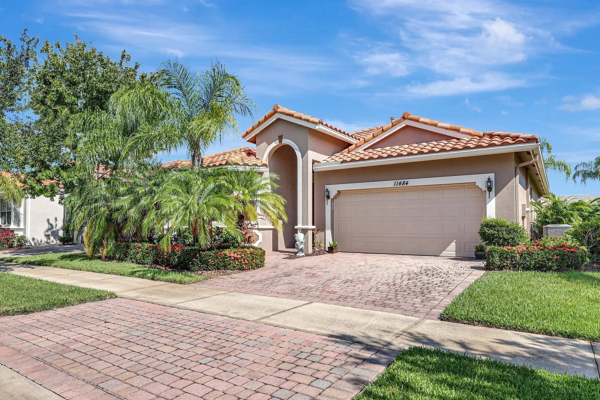 The spacious open-plan living area is bathed in natural light, highlighting the cathedral ceilings and elegant crown molding for a sophisticated feel. The kitchen boasts extra high cabinets offering ample storage and style. Step outside this 2/2 with a versatile den to the extended lanai surrounded by lush foliage providing a private and serene outdoor retreat. Nestled in a vibrant Community, residents enjoy access to a stunning Clubhouse with exciting events, clubs and top-tier amenities. Don't miss the opportunity to experience comfort, elegance and an active lifestyle in one perfect home. Stop looking - THIS is your home!