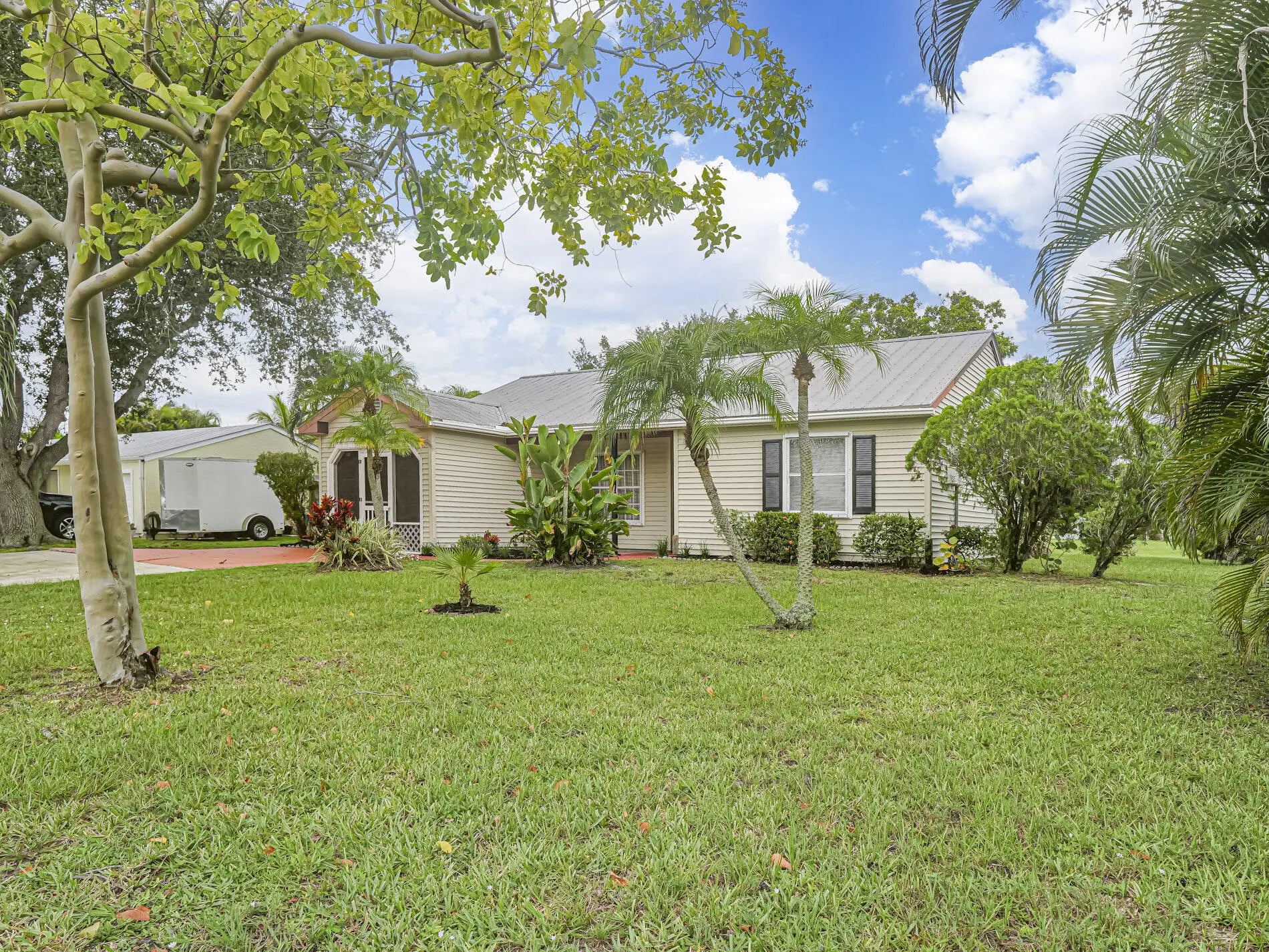 Florida Living at its Best! This charming 2 Bedroom 2 bathroom home is filled with inviting Florida vibes. Step inside to find a bright and open layout featuring new cabinets, granite countertops, A/C 2015 and HW 2017. For peace of mind relax on your spacious outdoor patio while overlooking your large lot and lush green space. This home is perfect for enjoying morning coffee or evening sunsets with plenty of room to spread out both inside and outside. This beautiful home is ready to be your own personal slice of paradise! Great location close to schools, hospital, parks, beach and lots of shopping!