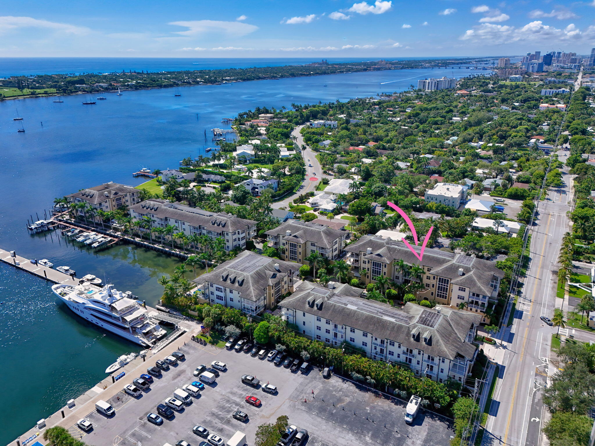 Luxury living awaits in this boutique waterfront community, ideally positioned beside the prestigious Rybovich Superyacht Marina and just steps from the Intracoastal. This stunning fourth-floor penthouse offers private elevator entry, soaring ceilings, and an open-concept design that flows seamlessly to balconies off both the living area and the primary suite. Each bedroom features its own ensuite bathroom, providing comfort and privacy for residents and guests alike. With two garage spaces, secure gated access, and the option to purchase or lease boat slips, this residence combines convenience with exclusivity. Perfectly situated close to Downtown West Palm Beach, Palm Beach Island, the airport, beaches, boating, fine dining, and vibrant nightlife. Flagler Landing offers the best ofcoastal living in the heart of South Florida. A/C 2019