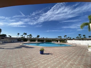Come enjoy the Florida sunshine in this light and bright 2 bedroom 1 bath Villa located in the Dudley section of the Cresthaven Villas. Newer electric panel, AC, range & refrigerator. New luxury vinyl wood plank flooring in both bedrooms. Fresh paint throughout. Bathroom has been updated with a walk in shower. Many closets for storage. Each bedroom has full wall closet as ell as a linen closet, ac closet and a large walk in closet on the back porch. Enclosed back porch overlooks tropical backyard. Short walk to the resort style amenities with a heated salt water pool, clubhouse and amenities. Auditorium hosts many activities including bingo, parties/entertainment, dance/yoga classes. There is shuffle board, bocce, library, full fitness center, sauna, and locker rooms with showers.