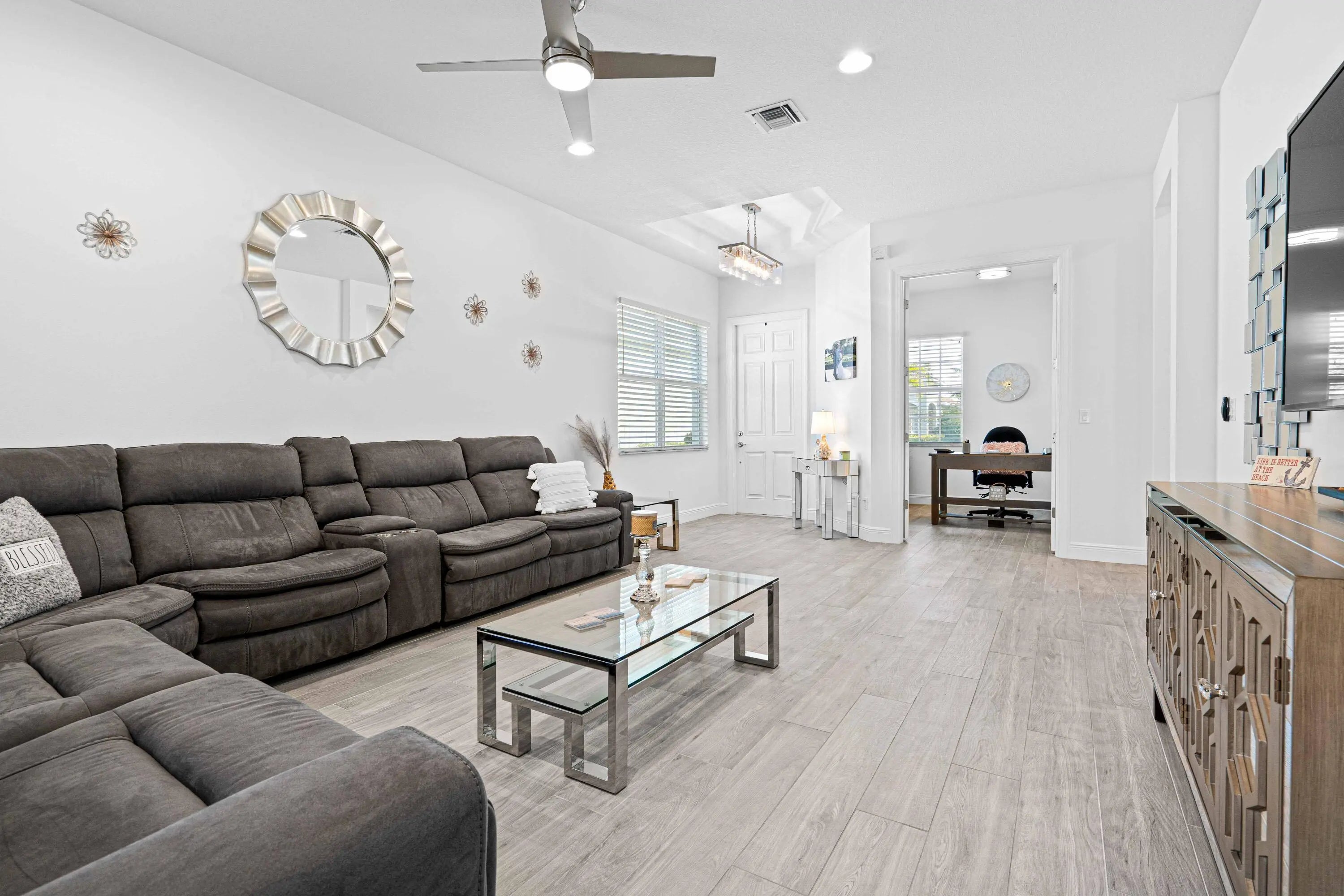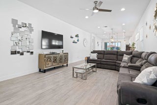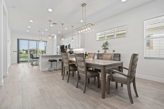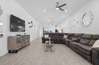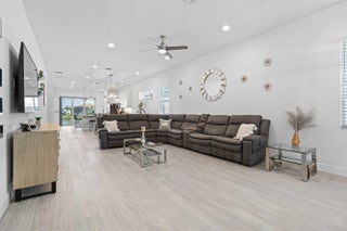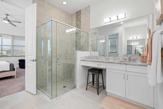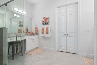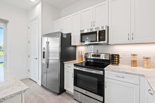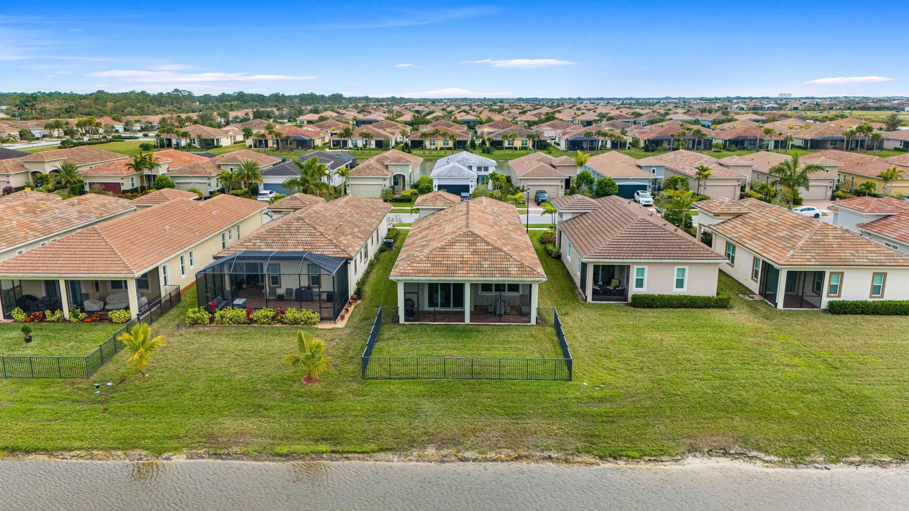 Waterfront 'Casita' Model in Verano PGA Village. Discover lakefront living in this well maintained 2 BR's, 2 BA's, plus large den/office & 2 car garage with epoxy flooring. Laundry room featuring cabinets and utility sink. Built with CBS construction, Barrel tile roof, hurricane impact windows and doors. Volume ceilings & tile in main areas. The open kitchen is a chef's dream, showcasing quartz countertops, a glass backsplash, stainless steel appliances (new refrigerator), 42'' soft-close cabinets, a breakfast bar, island & pantry. The spacious master suite includes a walk-in closet, dual sinks and a seamless glass shower, while the split floor plan ensures privacy. Beautiful Tranquil lake views includes screen enclosed lanai & spacious fenced backyard. ONE YEAR HOME WARRANTY INCLUDED!!