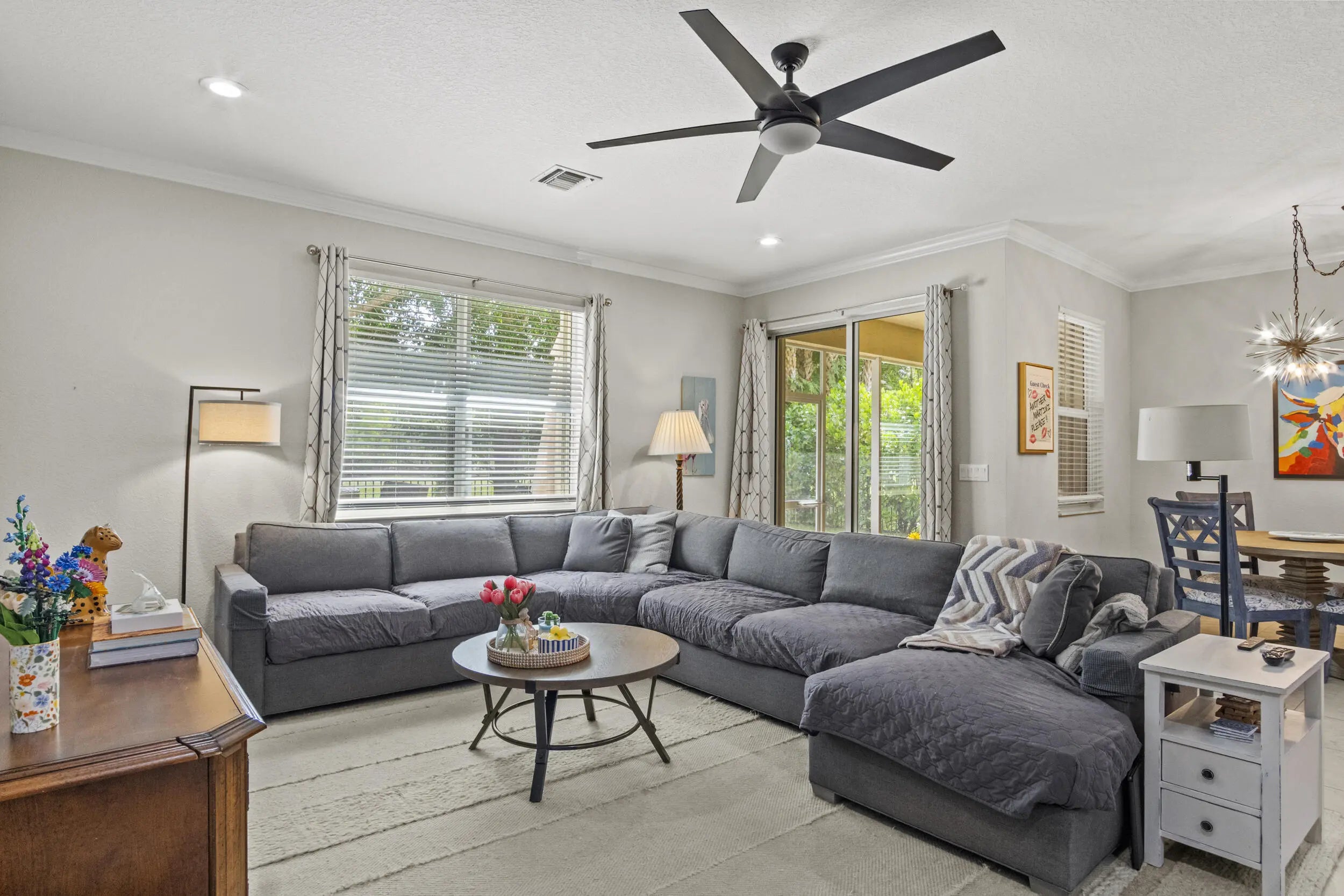 This is a large, move-in-ready single family home built in 2018, perfect for buyers who want space, comfort, and a strong community lifestyle. This Villanova model offers over 3,600 square feet and stands out for its smart layout, modern upgrades, and peaceful preserve views. As you walk in, you'll notice tile floors throughout the main living areas and a bright, open feel. The home has 5 bedrooms, 3.5 bathrooms, a den, and a 3-car garage, giving plenty of room for family, guests, work, and storage. The den features a decorative ship lap and works well as a home office or quiet retreat. The kitchen is open to the main living space and includes granite counter tops and stainless steel appliances, making it easy to cook, gather, and entertain.The home includes a full house water filtration