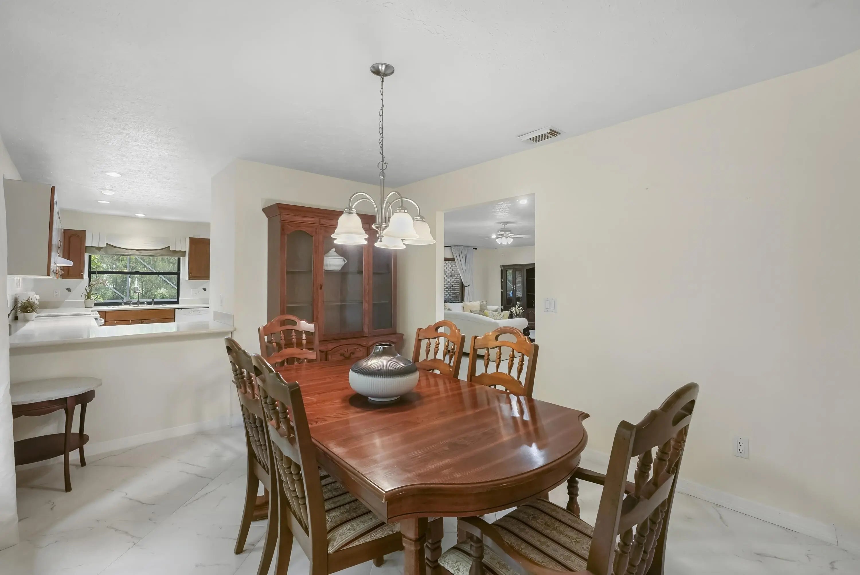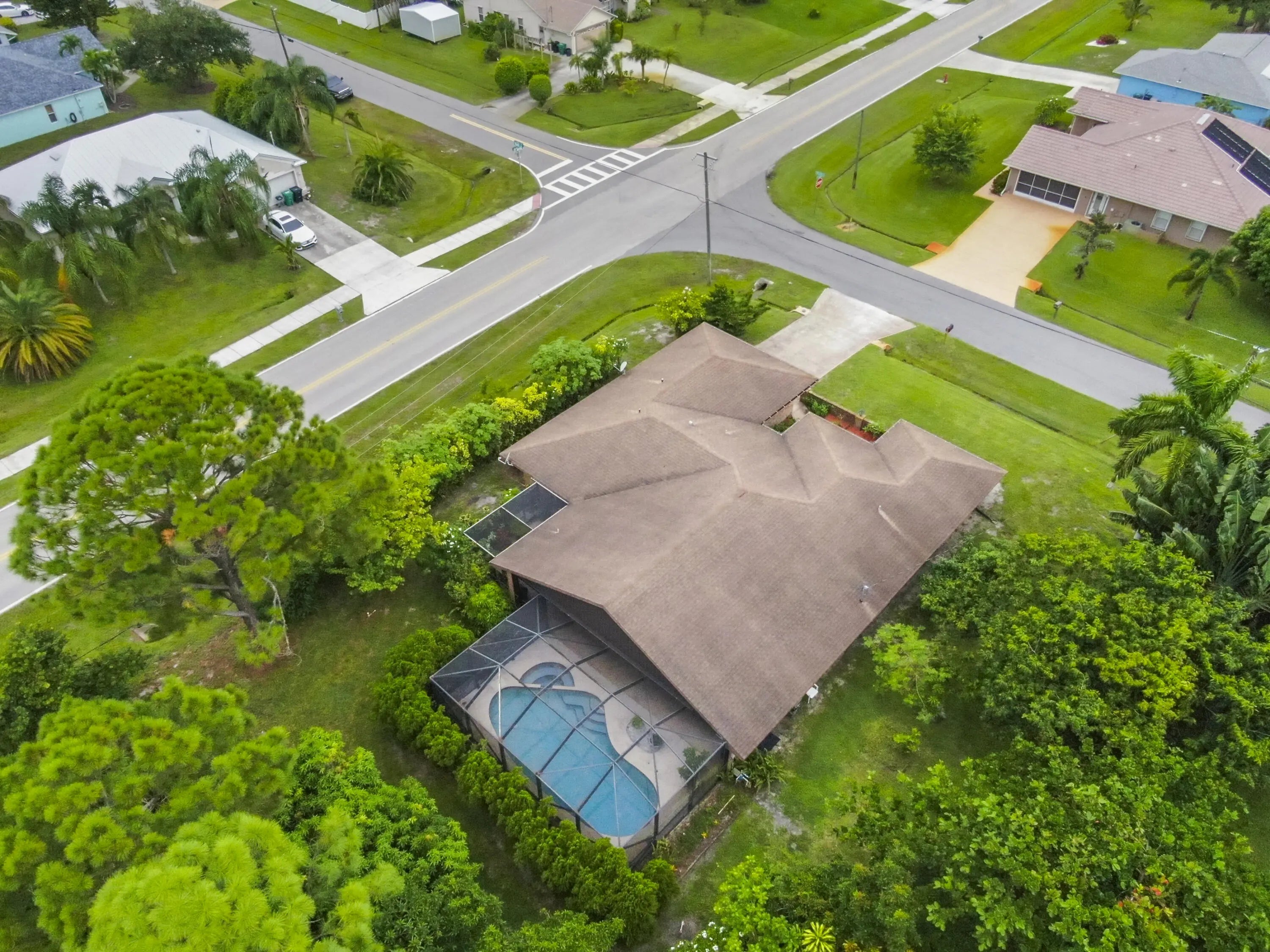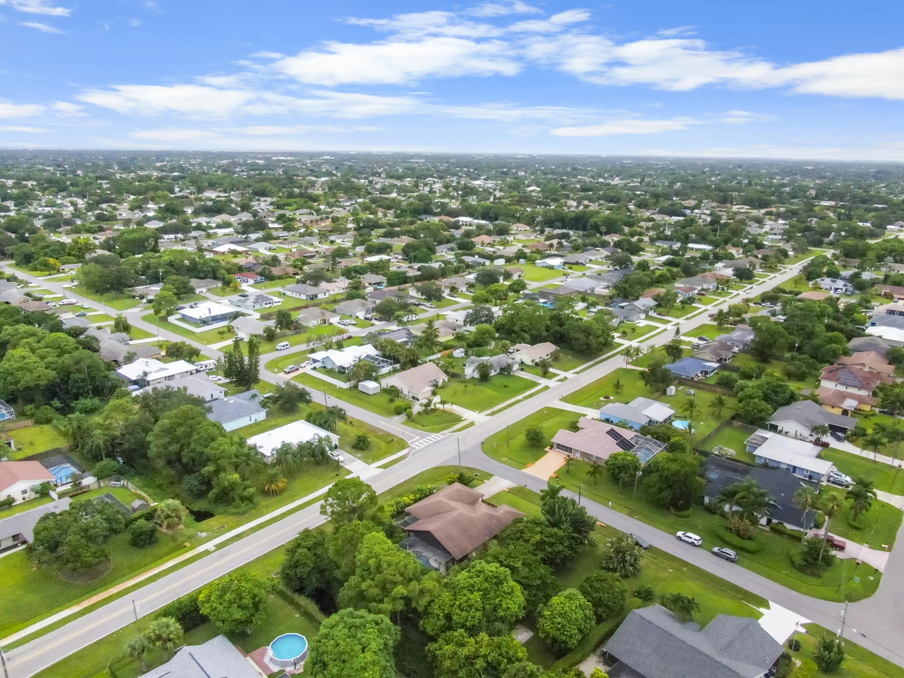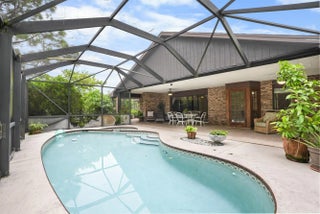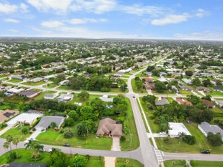 Discover this 3-bedroom, 3-bath pool home on a coveted corner lot in desirable non-HOA Floresta Gardens. Boasting 2,252 sq ft of living space, this home features a charming brick exterior and a spacious split-floorplan with a rare cabana bath, large bedrooms, and upgraded oversized tile flooring - no carpet! Perfect for entertaining, you'll love the wet bar, kitchen pass-through to the patio, and expansive outdoor living area with a covered patio and screen enclosure. Additional highlights include gutters, a newer water heater & refrigerator, and a layout designed for privacy and comfort. All this in a prime location, just 15 minutes from the shops and restaurants of Tradition and St Lucie West. This well-cared-for, one-owner home blends indoor elegance with outdoor enjoyment.
