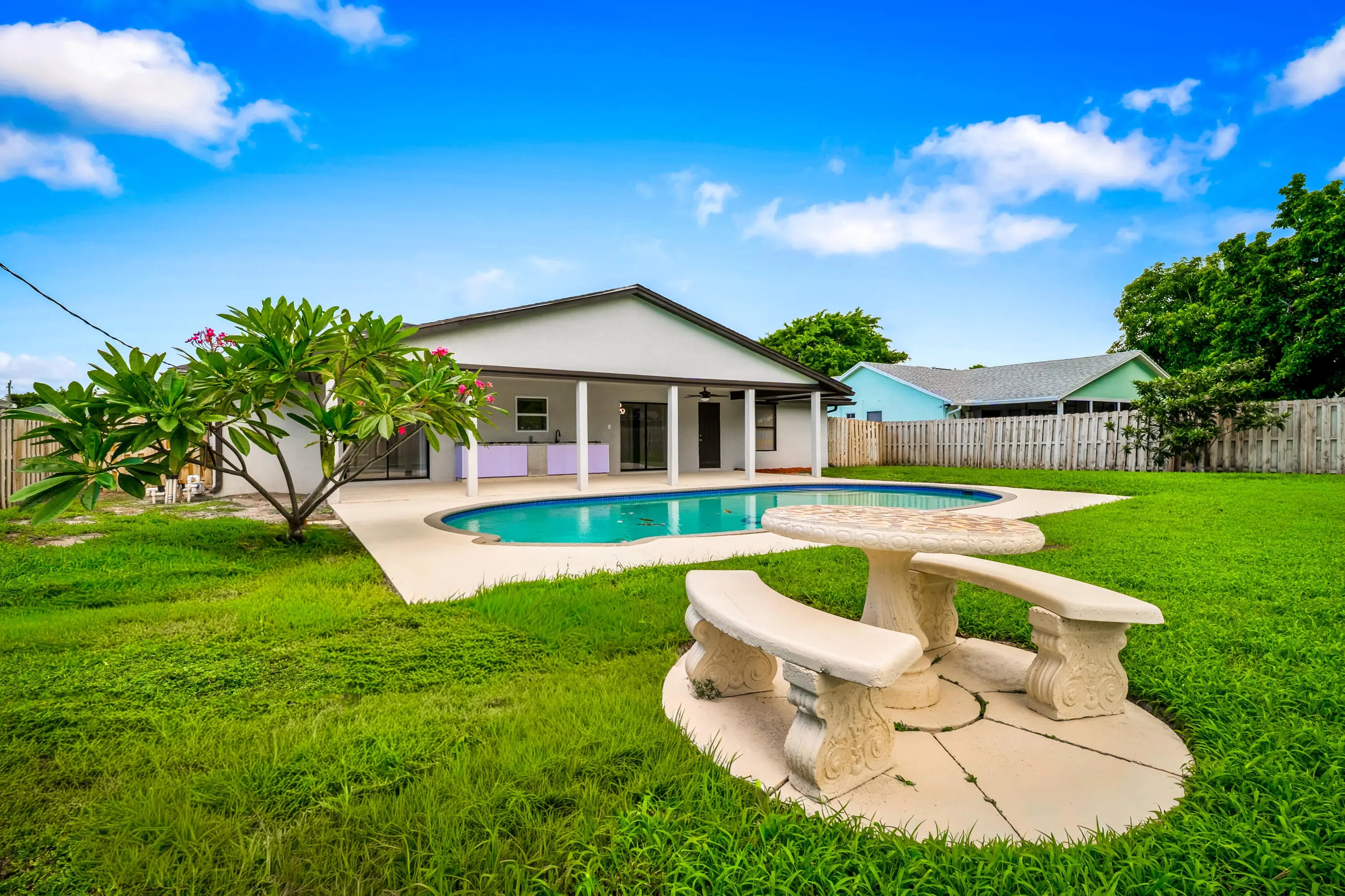 NEW SEAMLESS METAL ROOF JUST INSTALLED!! Stunningly remodeled 3BR/2BA 2 car garage pool home in Port St. Lucie! This move-in ready property offers fresh interior & exterior paint, brand new tile flooring throughout, and a spacious open-concept kitchen with quartz counters, sleek cabinetry, and new stainless-steel appliances. Both bathrooms have been stylishly remodeled with modern finishes and quartz countertops. Major upgrades include a new A/C with handler & ductwork, new hot water heater, and epoxied garage floor. The backyard is a true retreat with a sparkling, clean pool, freshly painted deck & patio, and a brand-new outdoor kitchen- perfect for entertaining year-round! Schedule your showing today!