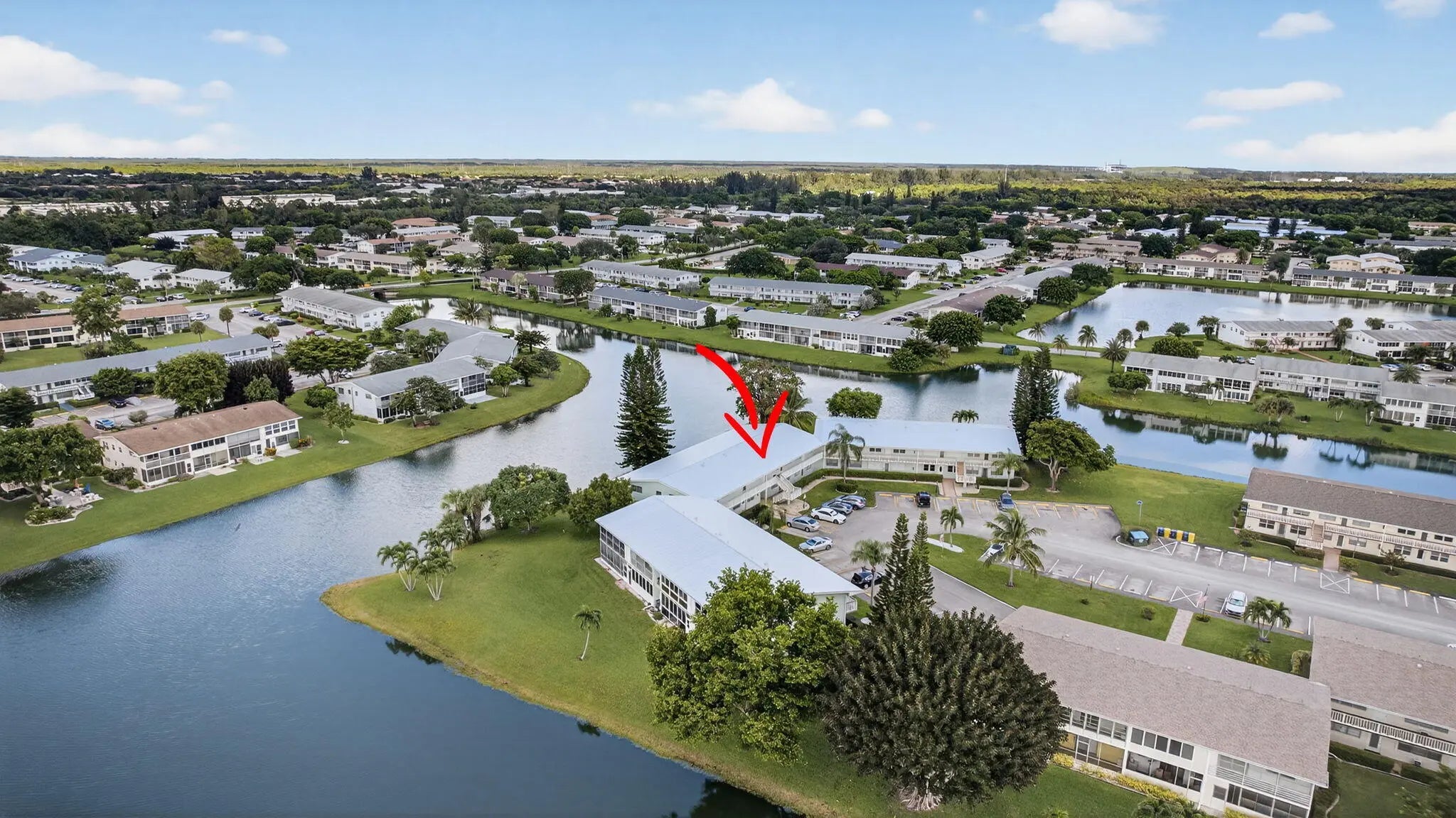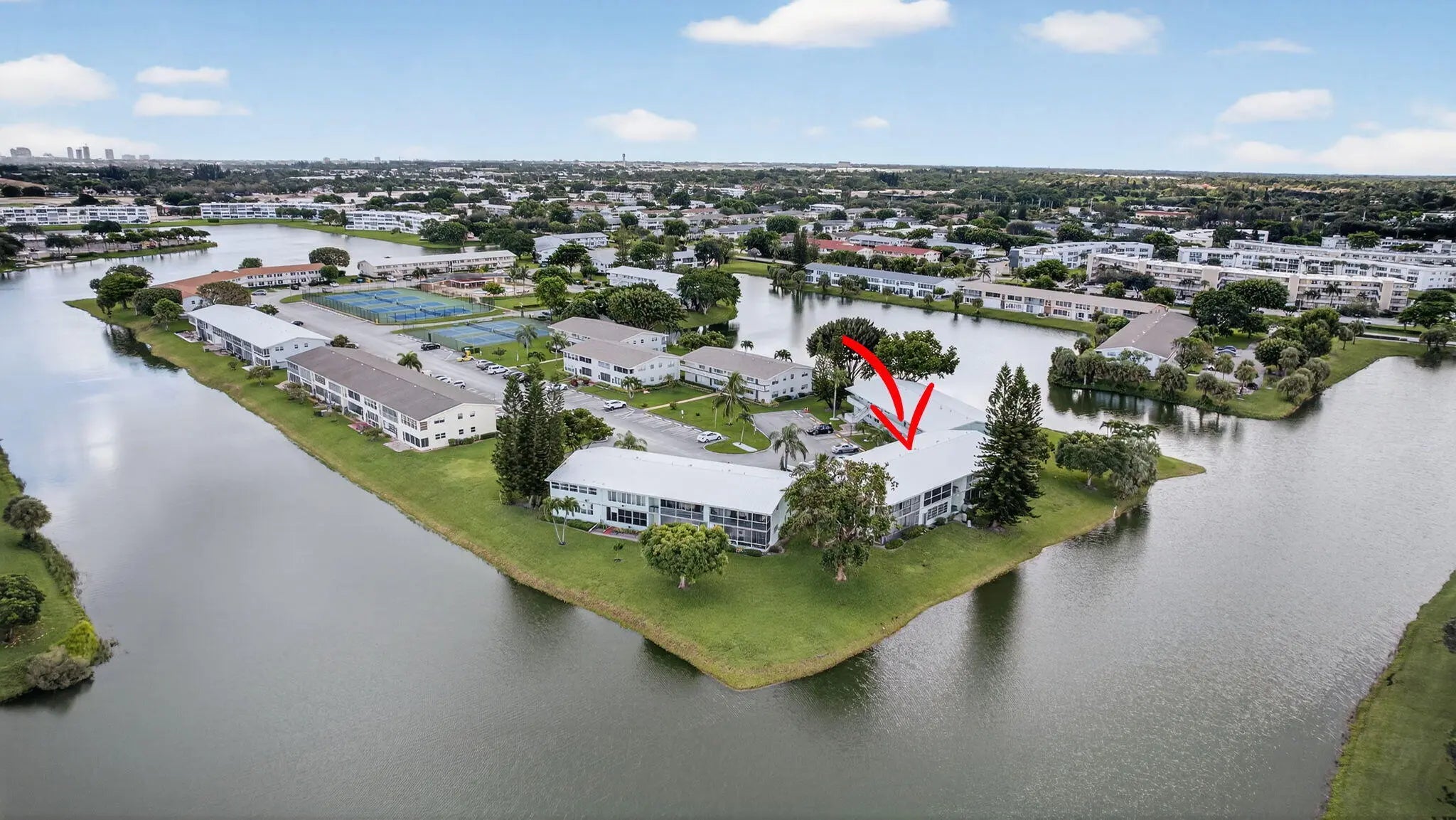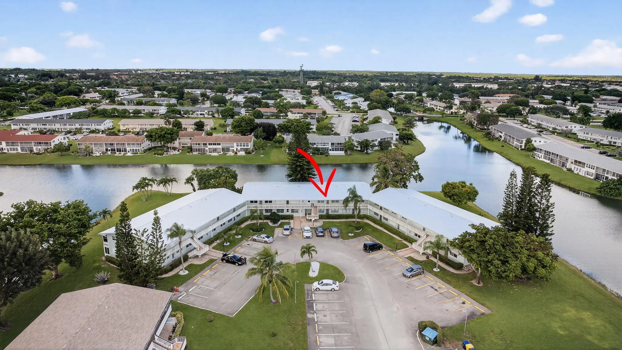 If you love the resort lifestyle, don't miss this light & bright 2 bed/2 bath 2nd-floor condo in Century Village(55+). Enjoy stunning water views from the large balcony off both bedrooms. Located in the desirable Somerset section near the pool & tennis courts, with a newer roof & strong reserves. Features include diagonal white tile throughout, white kitchen & bath cabinets, roomy closets, and laundry right outside your door. Assigned parking plus plenty of guest spots & community bus service. The main clubhouse offers a theater, indoor & outdoor pools, fitness center with classes, tennis, pickleball, bocce, clubs & more. Two guarded gates, 24-hr security patrol, and hurricane shutters add peace of mind. Centrally located near shops, dining, airport, beaches & downtown.