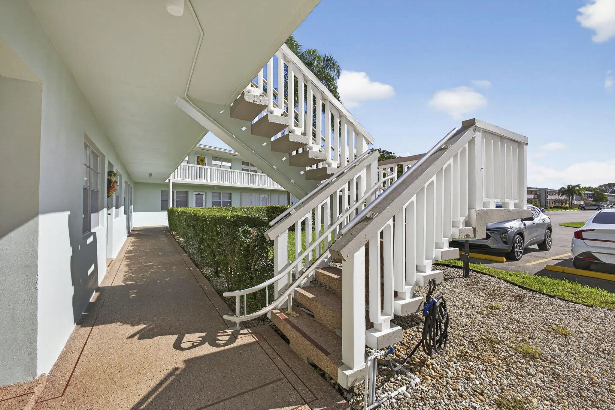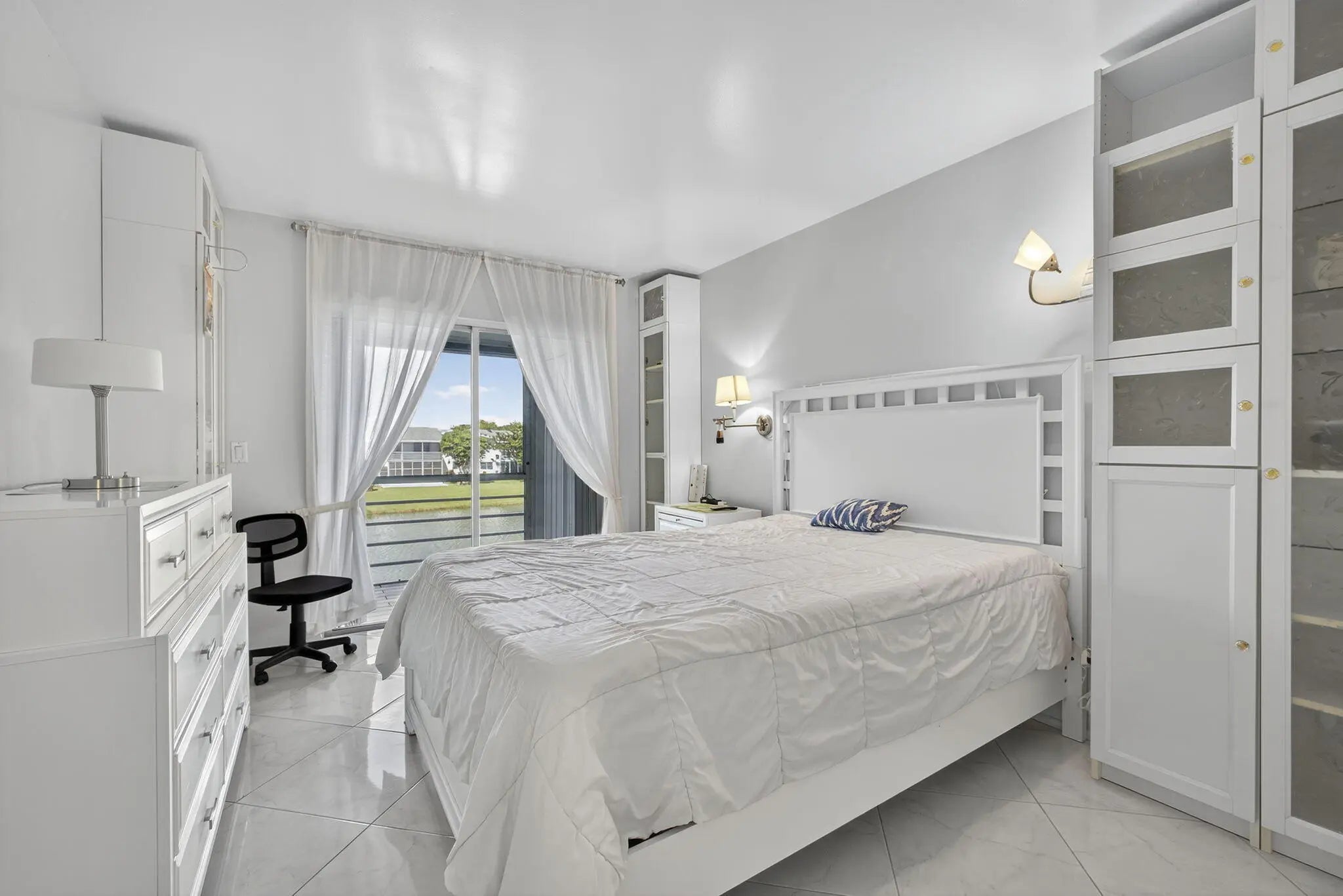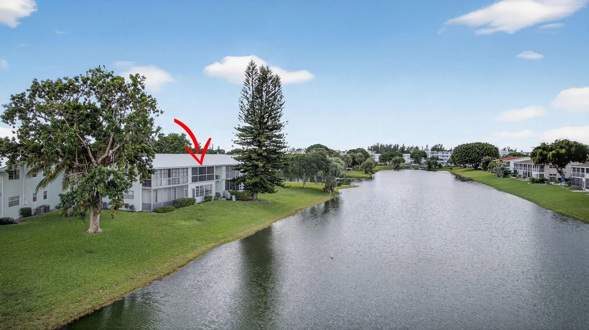 If you love the resort lifestyle, don't miss this light & bright 2 bed/2 bath 2nd-floor condo in Century Village(55+). Enjoy stunning water views from the large balcony off both bedrooms. Located in the desirable Somerset section near the pool & tennis courts, with a newer roof & strong reserves. Features include diagonal white tile throughout, white kitchen & bath cabinets, roomy closets, and laundry right outside your door. Assigned parking plus plenty of guest spots & community bus service. The main clubhouse offers a theater, indoor & outdoor pools, fitness center with classes, tennis, pickleball, bocce, clubs & more. Two guarded gates, 24-hr security patrol, and hurricane shutters add peace of mind. Centrally located near shops, dining, airport, beaches & downtown.