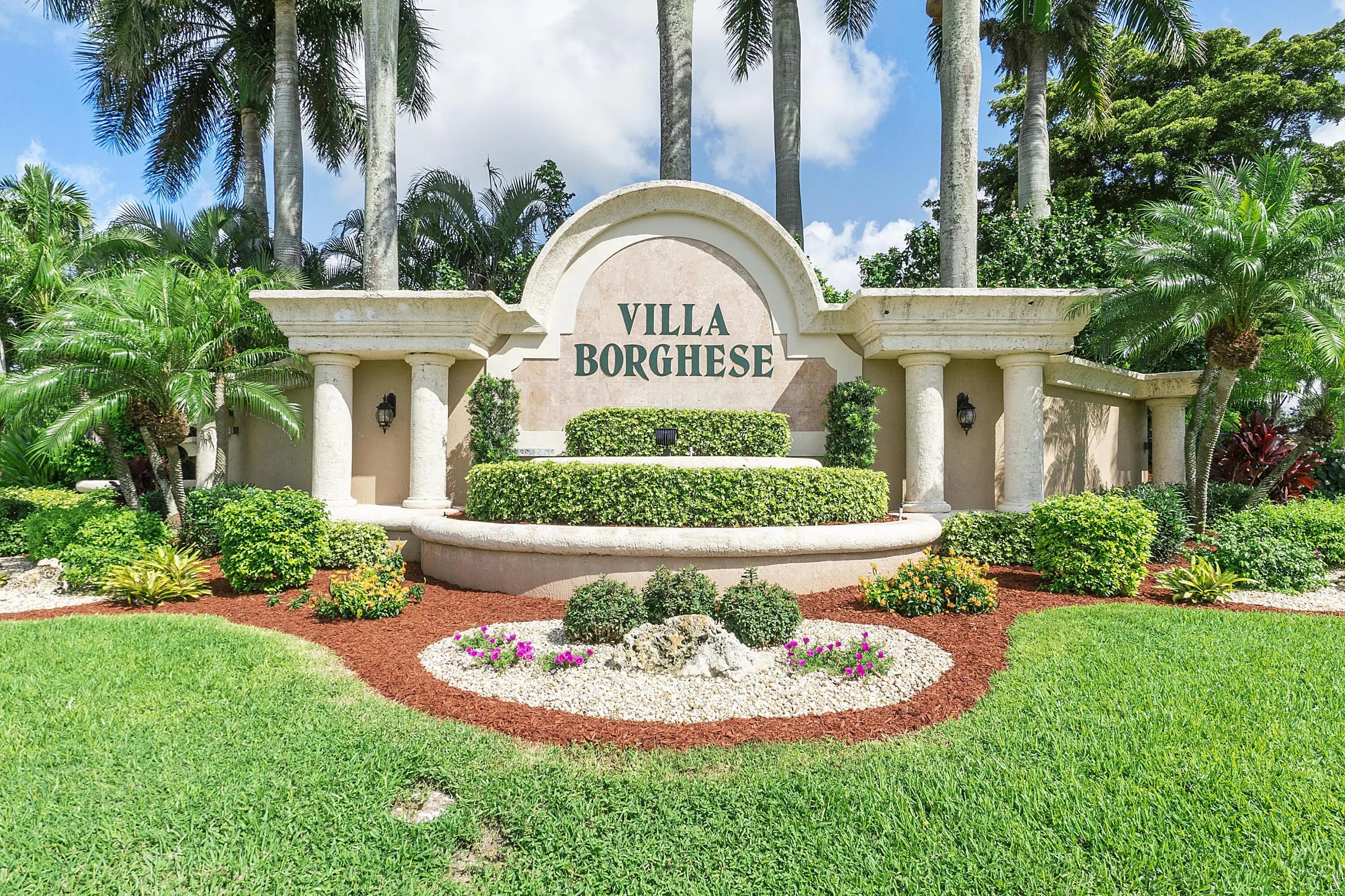 Enjoy the fabulous lifestyle in beautiful Villa Borghese that offers a dynamic 18,000 sq' clubhouse with a heated pool, spa, game rooms, tennis, pickleball courts and more. This awesome home has3 bedroom 2 bath split plan for complete privacy. Open designed living room dining area overlooks a screened patio and garden. the spacious kitchen offers a eat in breakfast area which is adjacent to laundry room and 2 car garage. HOA includes cable, internet, security system, landscaping, & 24 hour manned gate.A must to see ....