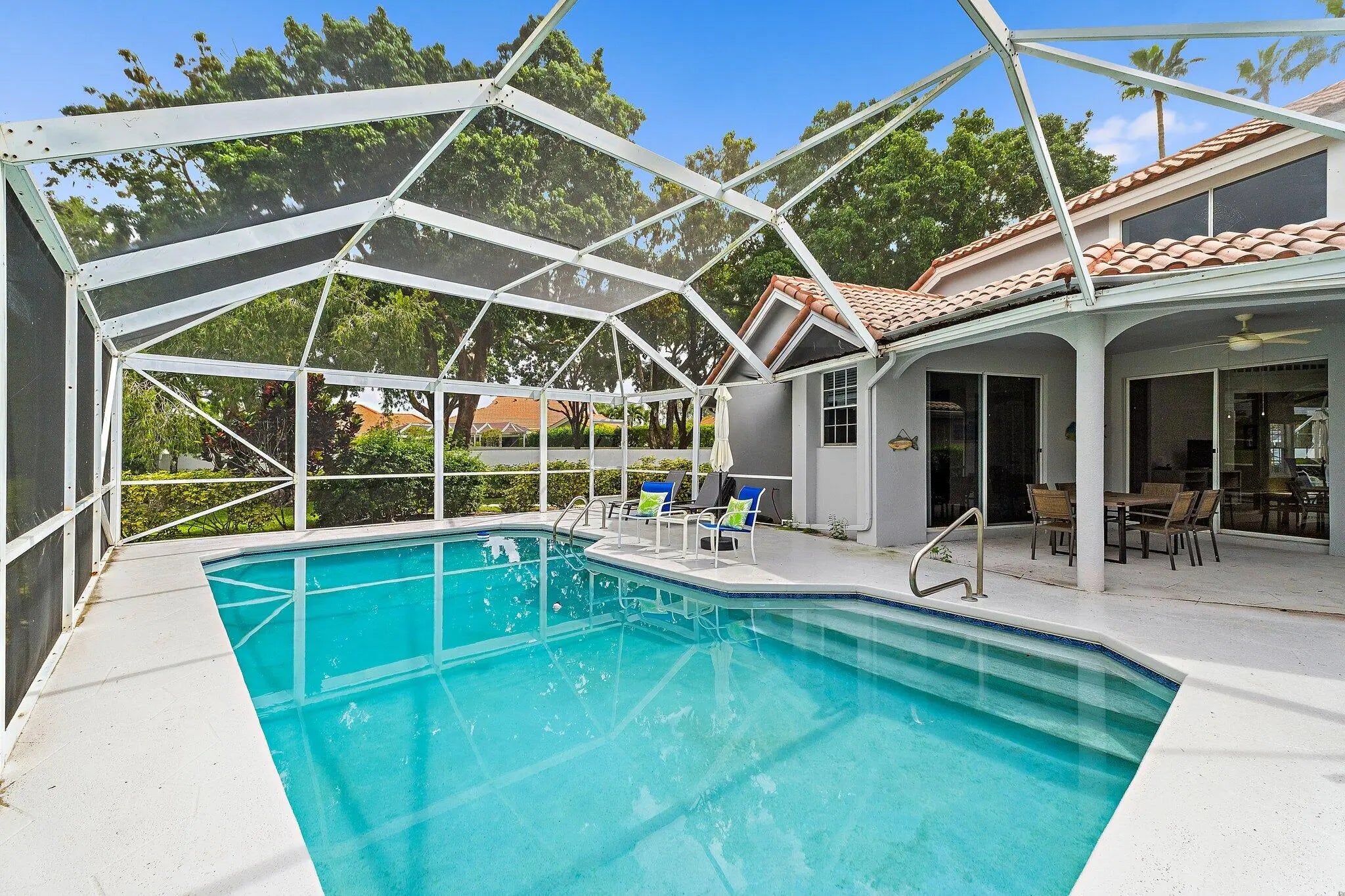 Welcome to Your Golfer's Dream Getaway at 137 Eagleton CourtDiscover the ultimate golf retreat at this beautifully updated 3-bedroom, 3-bathroom end unit, perfectly situated in a quiet cul-de-sac within the gated community of Eagleton Estates at PGA National. Overlooking the 14th hole of the world-renowned PGA Championship Course, this classic two-story home offers FRONT ROW VIEWS OF THE HONDA CLASSIC and other premier tournaments--right from your own poolside patio.Golf enthusiasts will love Eagleton's exclusive features, including an additional gated entrance for enhanced security and a resident-only lap pool, heated year-round and conveniently located just steps from your front door.
