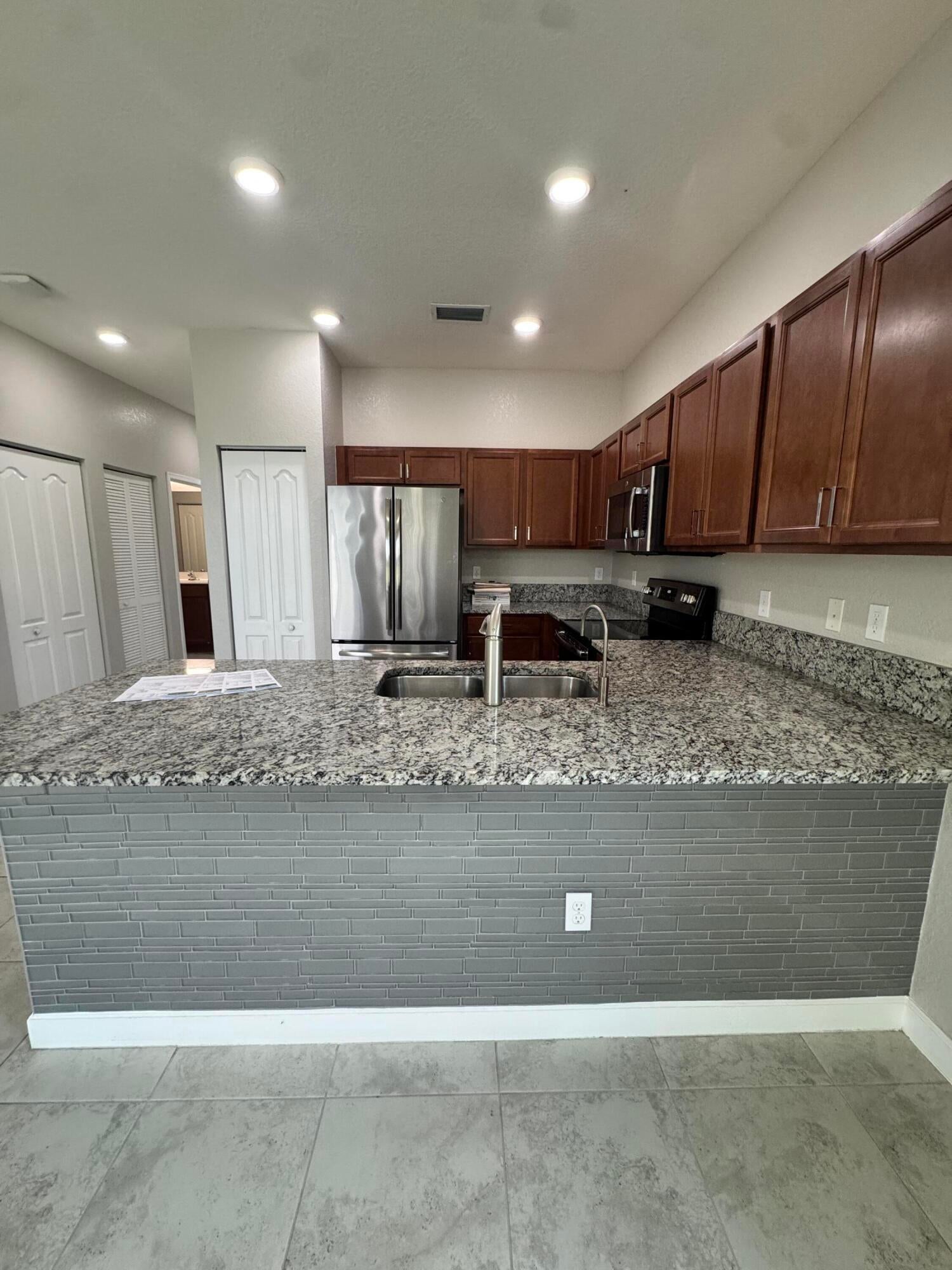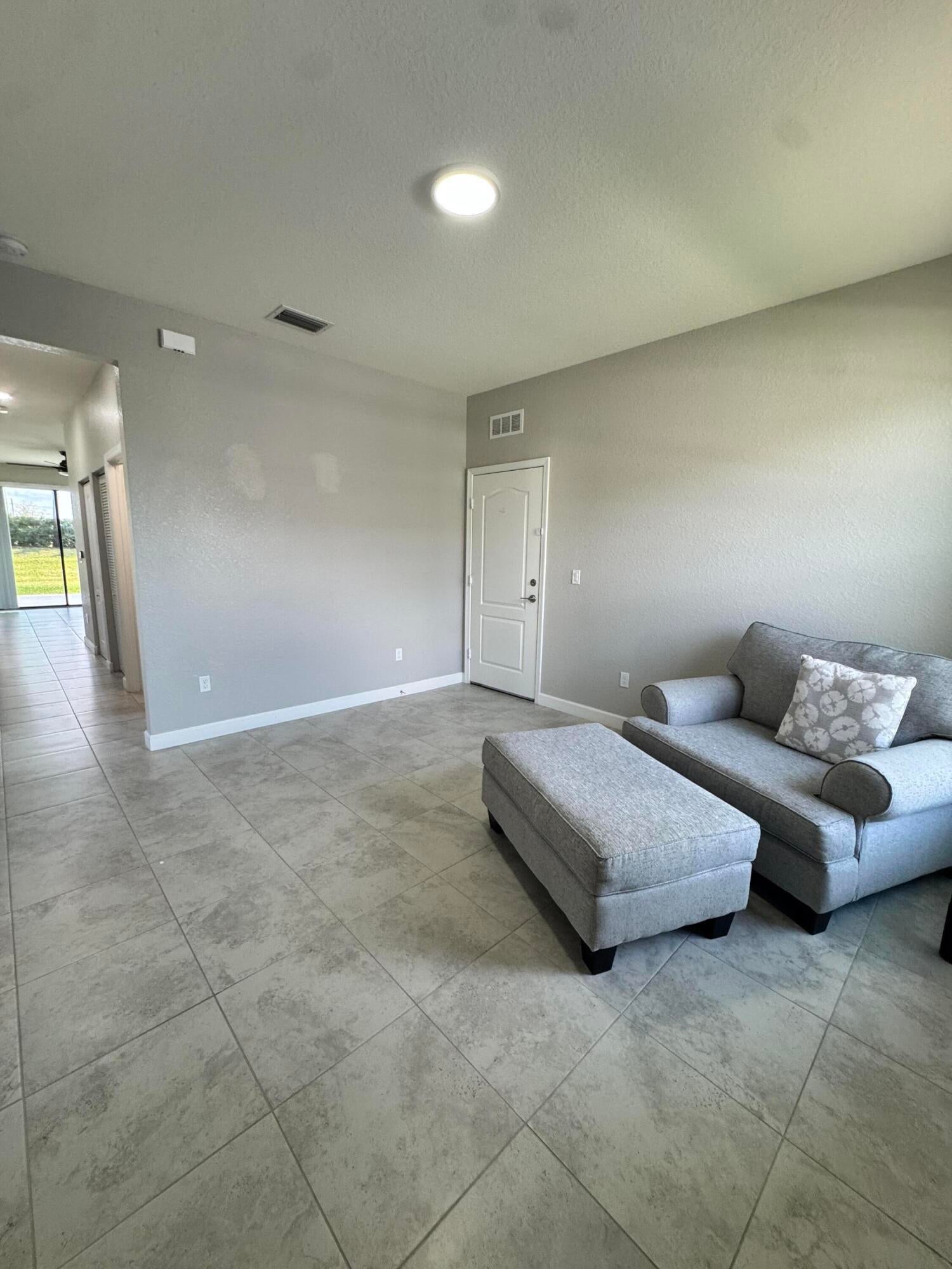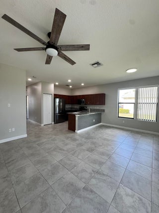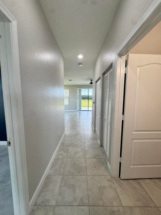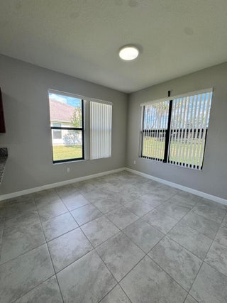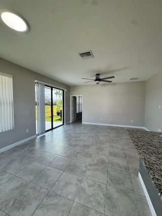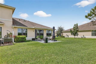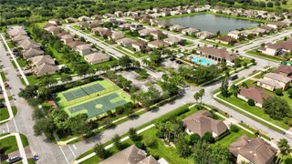 Meticulous 3BR/2BA villa in a sidewalk community. Open concept with ceramic tile throughout, living room, family room, and patio overlooking a spacious back yard. Kitchen flows to dining and gathering spaces. Primary suite offers walk-in shower and double vanity. Air-conditioned garage with laminate flooring and custom shelving. Hurricane shutters, reverse osmosis water system, and hybrid water heater add comfort. Community amenities include pool, tennis, basketball, playground, and more. Close to shopping, dining, and beaches.