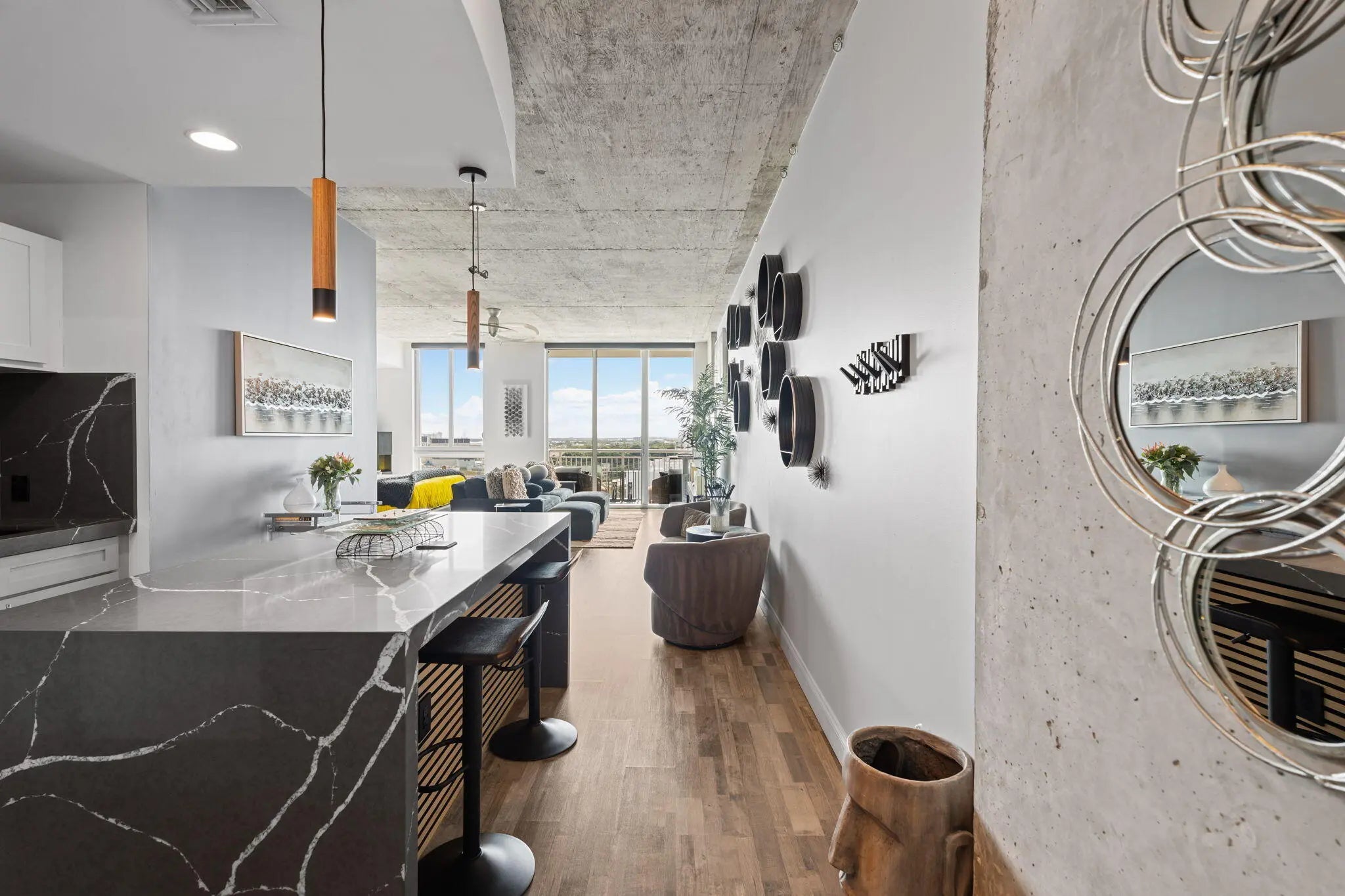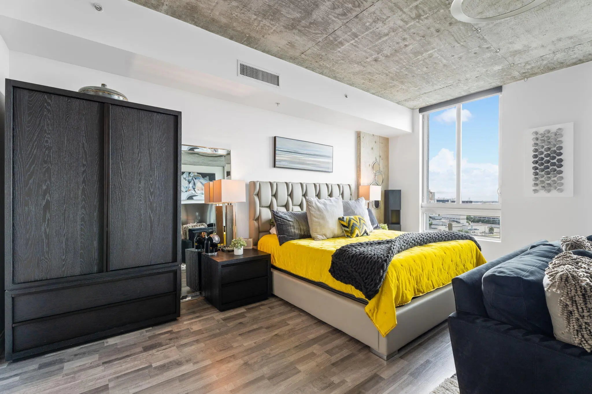RARELY available TURNKEY GEM! 1BED/1BA w/ Triple Water Views of Ocean, Pool, & Clear Lake!! Most Popular & Largest 1 Bed Floor Plan at the Highly Desired Edge Condo. Spacious & Beautifully FURNISHED with all designer furniture - custom Restoration Hardware. INVESTORS DREAM or your dream home! Private Balcony. 12ft ceilings. Stylish Exposed Concrete. BRAND NEW GORGEOUS FULLY GUT RENOVATED throughout. W/D in unit. Rent right away, up to 12x per year. Brand New Construction next door and major plans for ''Transit Village'', centered around The Edge. Fully funded reserves, no pending or special assessments. Recently remodeled circular driveway, fitness center, repainting/maintenance of entire building exterior complete. 24 hr concierge, resort style pool deck. Pets welcome. Brand new Bosch AC