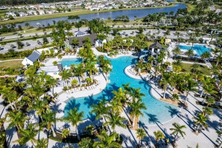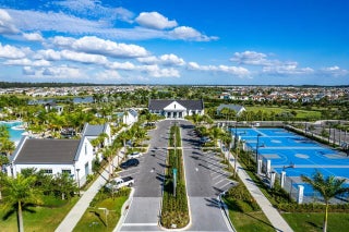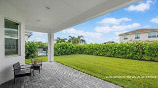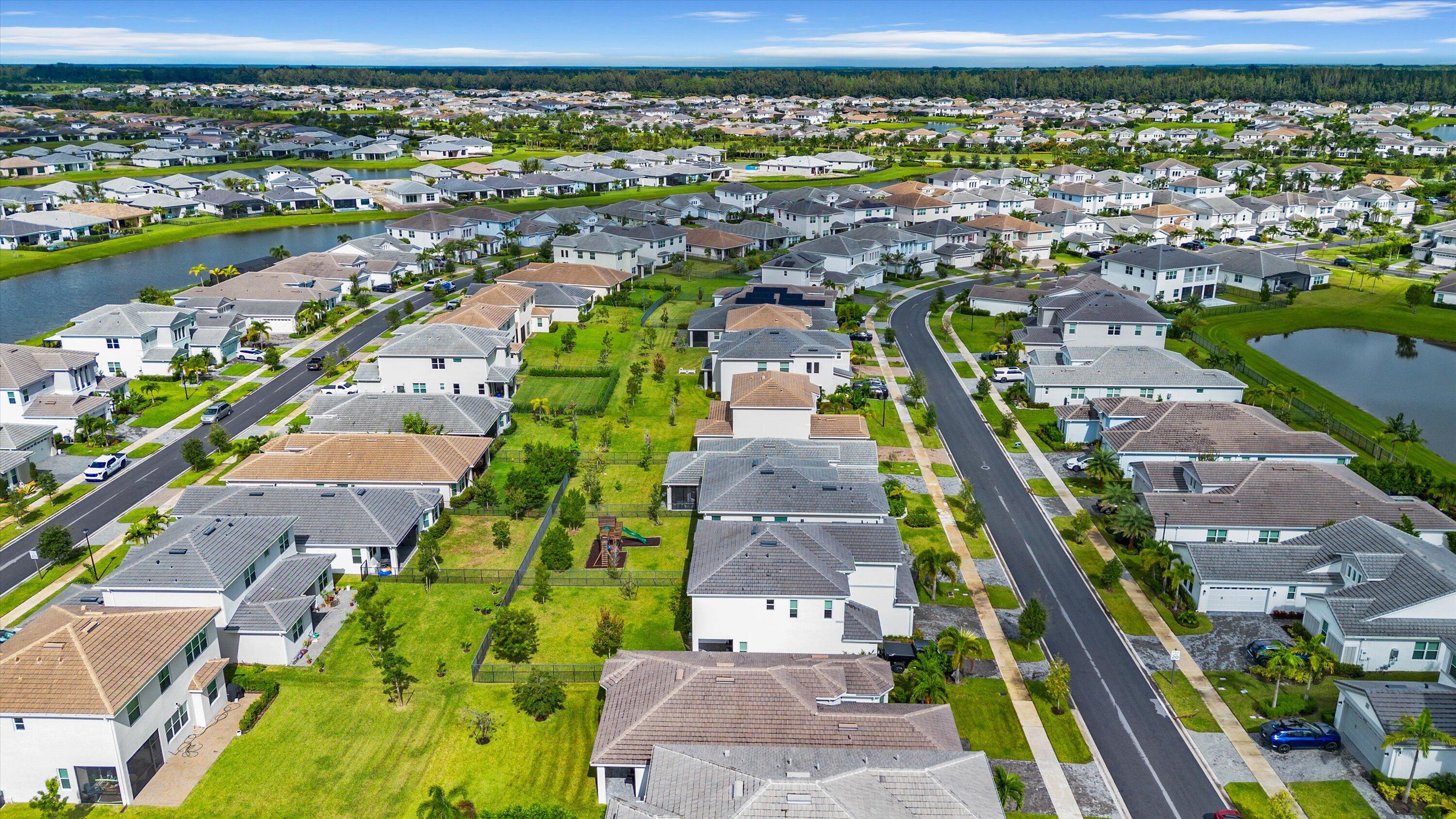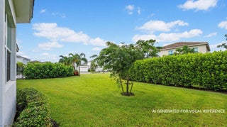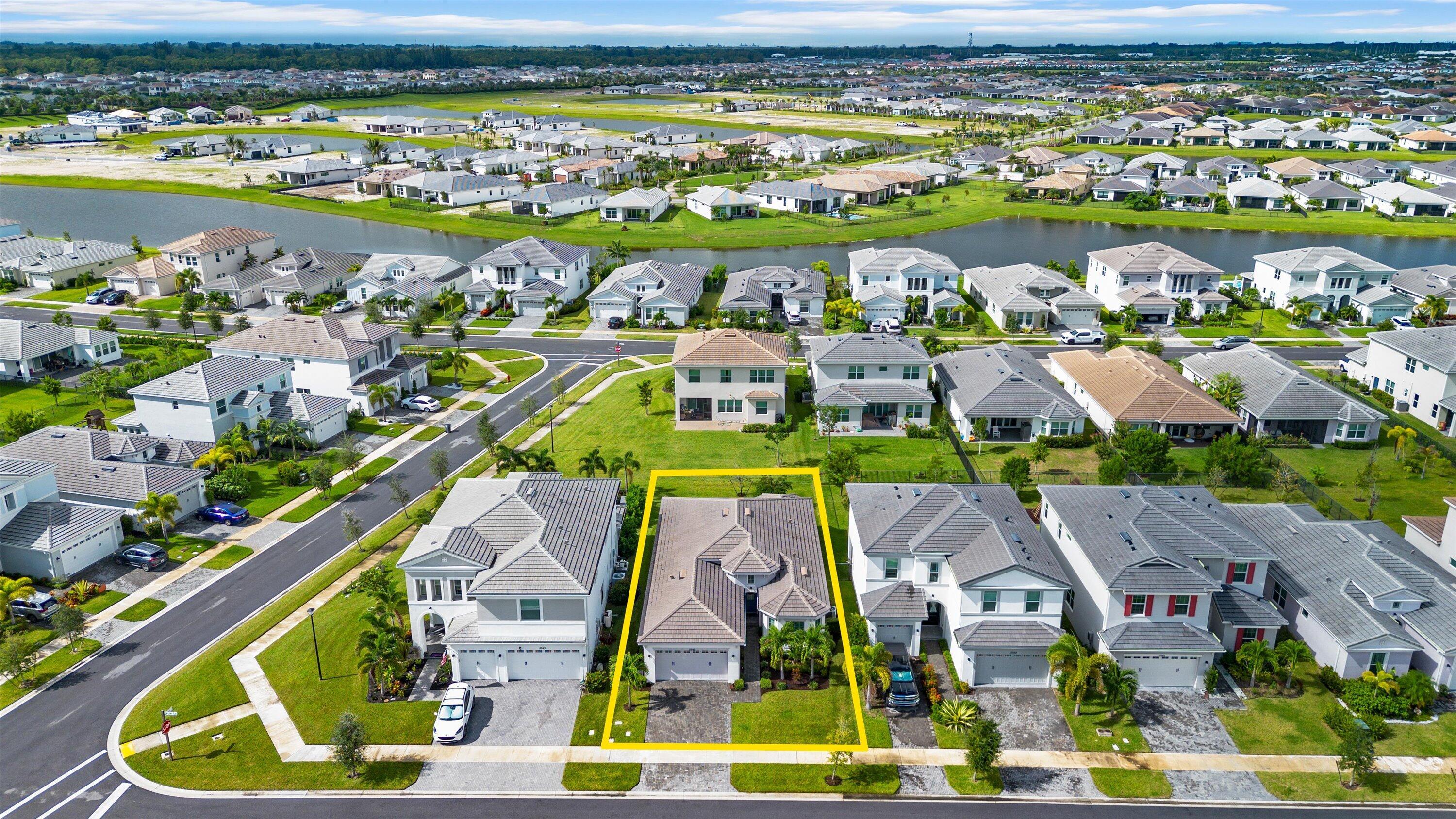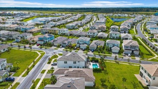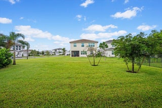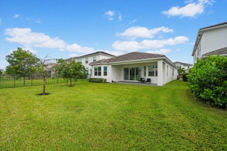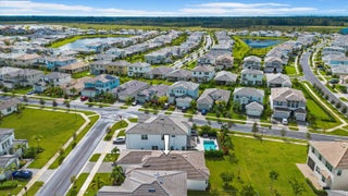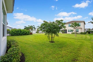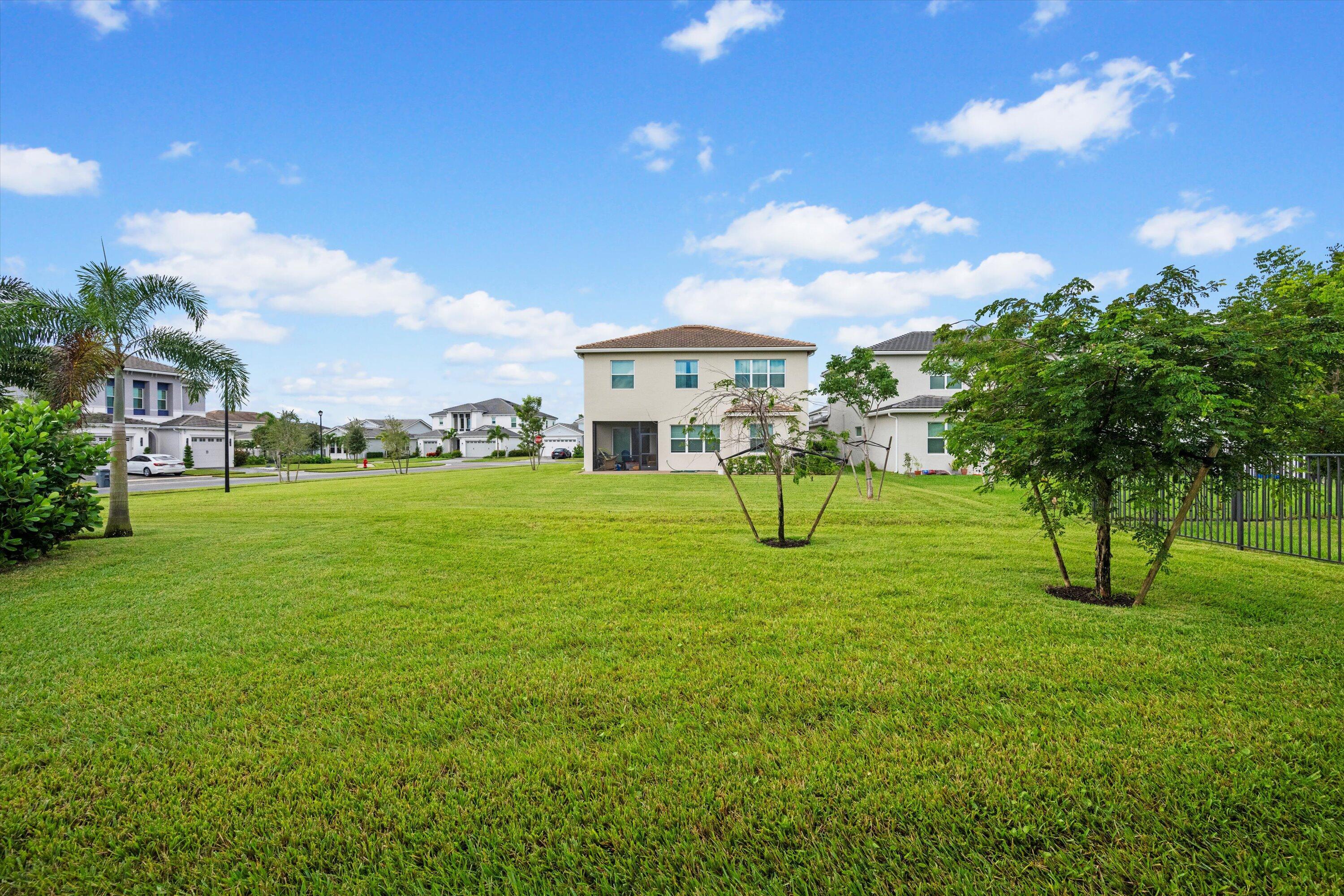 Welcome to the Marlberry model located in The Orchards of Westlake! This beautifully designed single-story home offers 3 bedrooms, 2 bathrooms, and a 2-car garage, spanning approximately 1,913 sq. ft. of living space. Built in 2023, this residence showcases a perfect balance of modern finishes and functional design.As you approach the home, you're greeted by a charming blue front door that opens into a grand, curved foyer with high ceilings and abundant natural light. The home features neutral white interior paint and tile flooring throughout all main living areas, creating a bright and cohesive flow. The gourmet kitchen is a standout, boasting white shaker cabinetry, a quartz island, contrasting dark lower cabinets, a stylish backsplash, and stainless steel appliances including a gas range. Adjacent to the kitchen is a cozy breakfast nook with custom built-in seating, and nearby you'll find a formal dining area with convenient kitchen access. The expansive living room is filled with natural light thanks to sliding glass doors and recessed lighting, offering an ideal layout for entertaining or relaxing. The primary suite is spacious and thoughtfully designed, featuring carpet flooring, a bay window, two large walk-in closets, and an ensuite bathroom with dual sinks, brown shaker cabinetry, granite countertops, and an upgraded walk-in shower with dual shower heads. The additional bedrooms also include carpet flooring, with one featuring a bay window. A full secondary bathroom with granite counters, brown cabinetry, and a bathtub sits conveniently between them. Additional highlights include a large laundry room with built-in cabinetry, granite counters, and Maytag washer and dryer, plus a covered lanai that overlooks a spacious backyardperfect for outdoor living. The home is equipped with impact windows throughout for peace of mind and energy efficiency. This Marlberry model combines luxury, comfort, and practicality set in the desirable, family-friendly community of The Orchards in Westlake, Florida.
