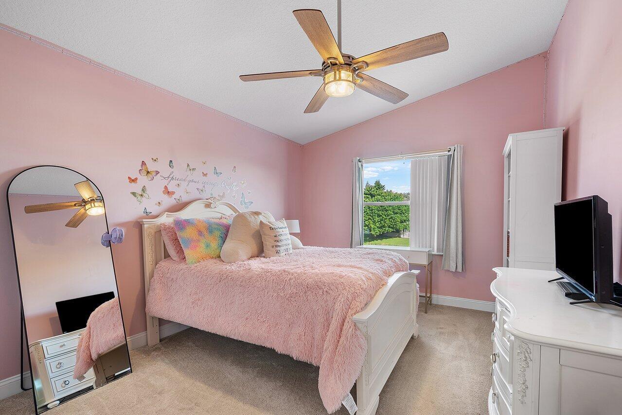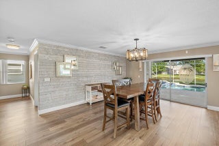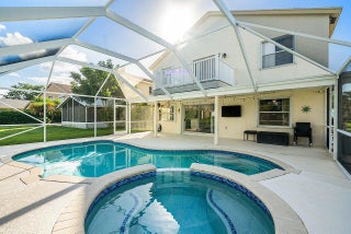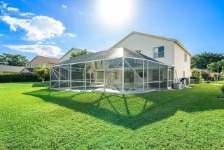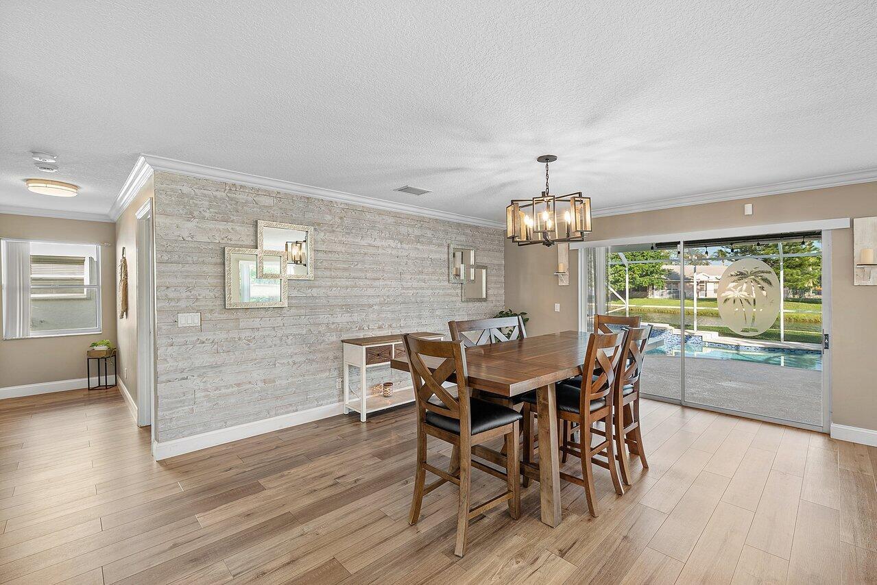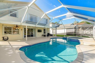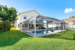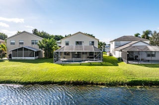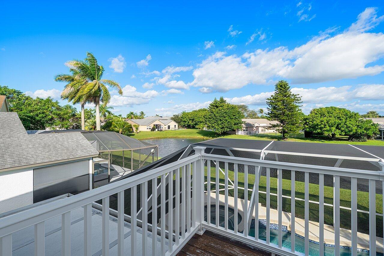 Welcome to your dream home in Bay Estates at Rainbow Lakes! This desirable 4-bedroom, 3-bath waterfront pool home Delaware model blends comfort, elegance, and functionality for today's modern lifestyle. Step through the welcoming foyer and be greeted by volume ceilings filling the home with light and space. The premium vinyl wood floors flow seamlessly throughout the main living areas, adding both style and durability. The chef's kitchen is the heart of the home -- featuring a welcoming island, Bellevue quartz countertops, white cabinetry with crown molding throughout. Other features to take in are pull-out pantry drawers, recessed lighting, and ample counter and storage space. It's truly a culinary dream come true!Perfect for entertaining, the family room features a designer bar alcove, ideal for hosting gatherings or cozy evenings in. Upstairs, you'll find a spacious open loft with custom built-in shelving perfect for a home office, play area, or reading nook. The primary suite offers a serene retreat with a private balcony overlooking the lake, a walk-in closet, a jacuzzi tub, and a spacious shower. Also on the second floor are two sizeable guest bedrooms, each offering generous closets and plenty of natural light. A ground-floor bedroom with double door grab closet conveniently near a full guest bath. Step outside to your private paradise: a screened-in pool and hot tub, a covered lanai, and breathtaking long-lake views the perfect backdrop for sunsets, stargazing, or weekend gatherings. This home truly has it all space, style, and the warm welcoming energy ready to make it your home.