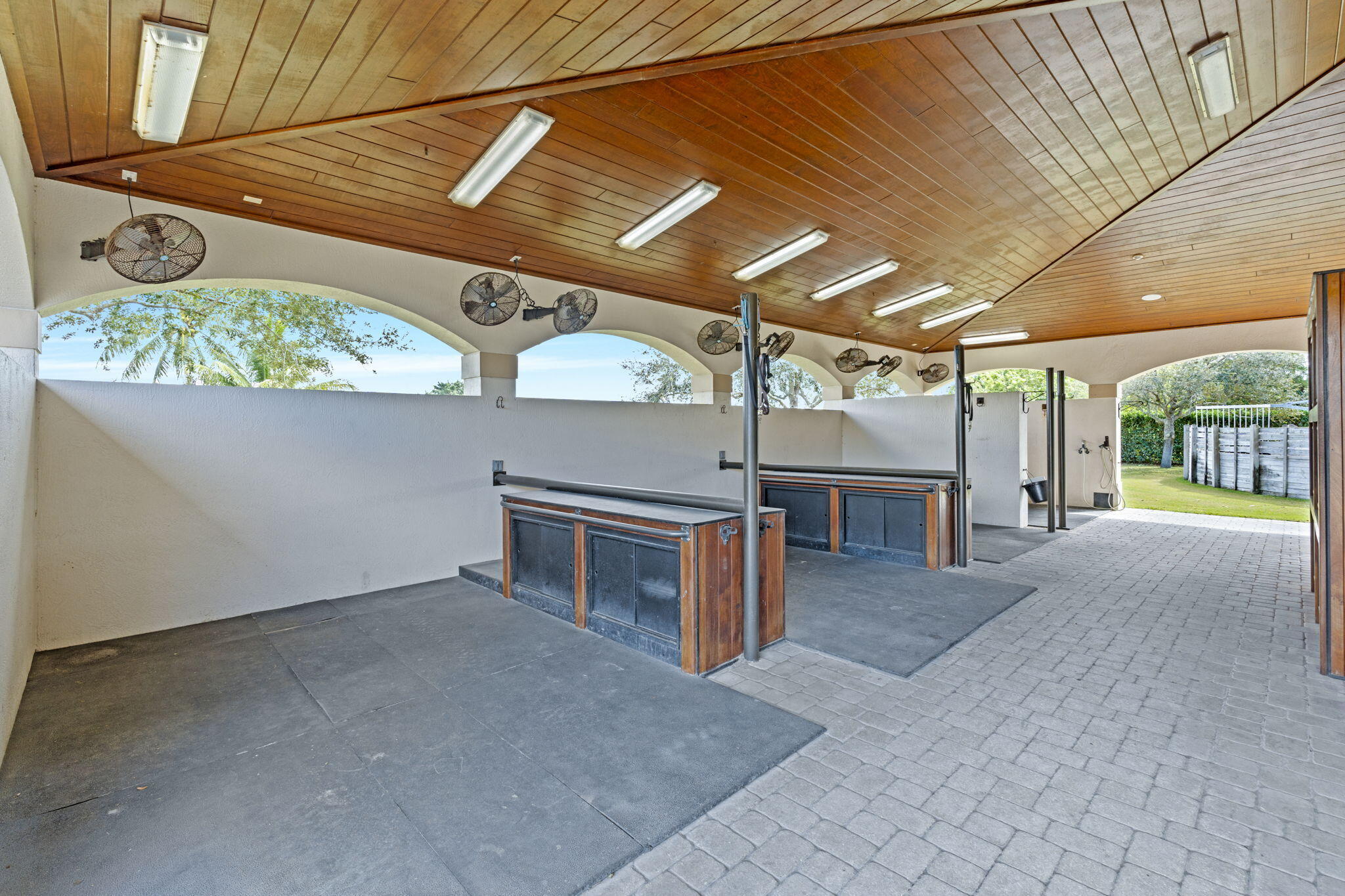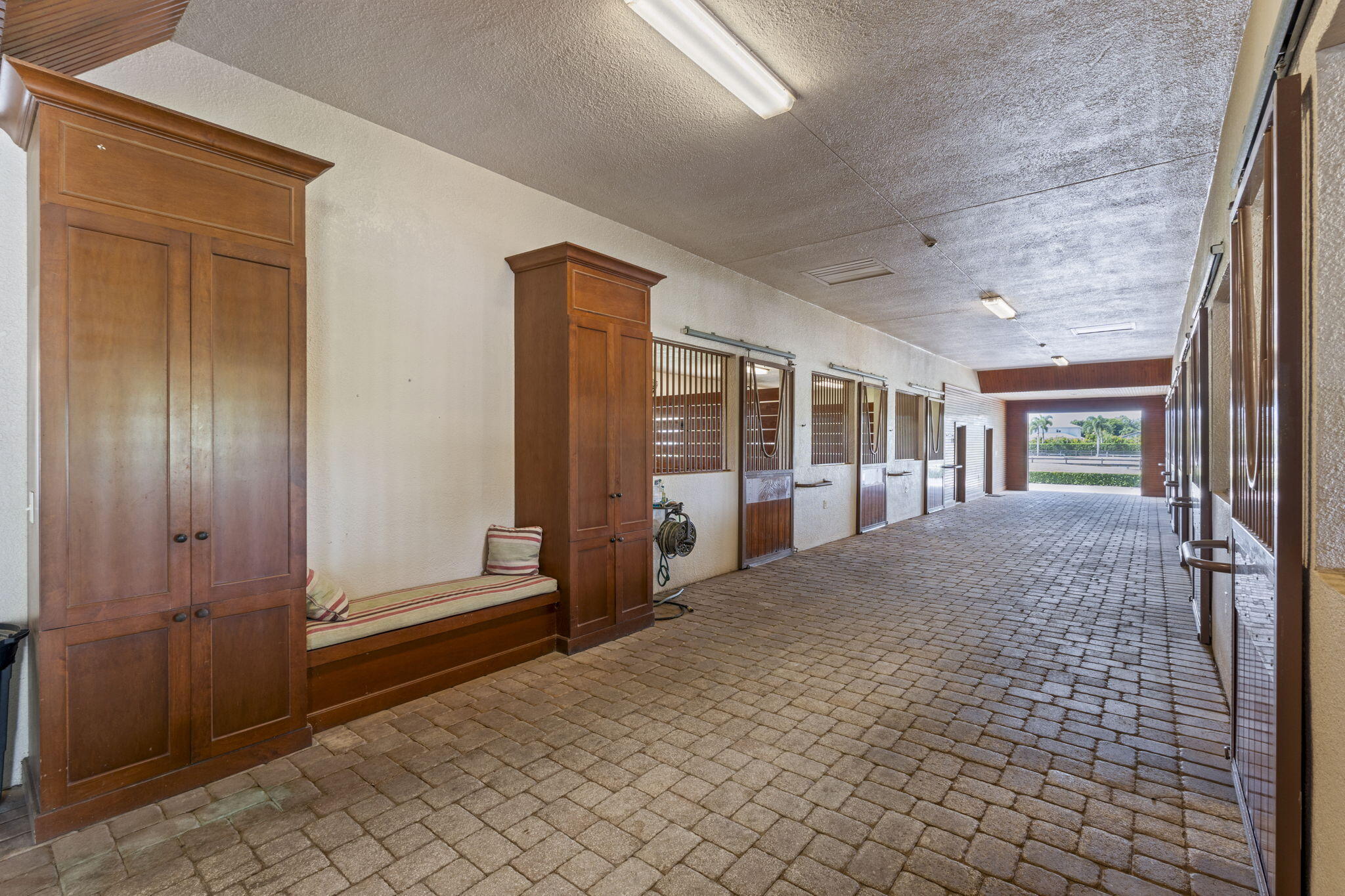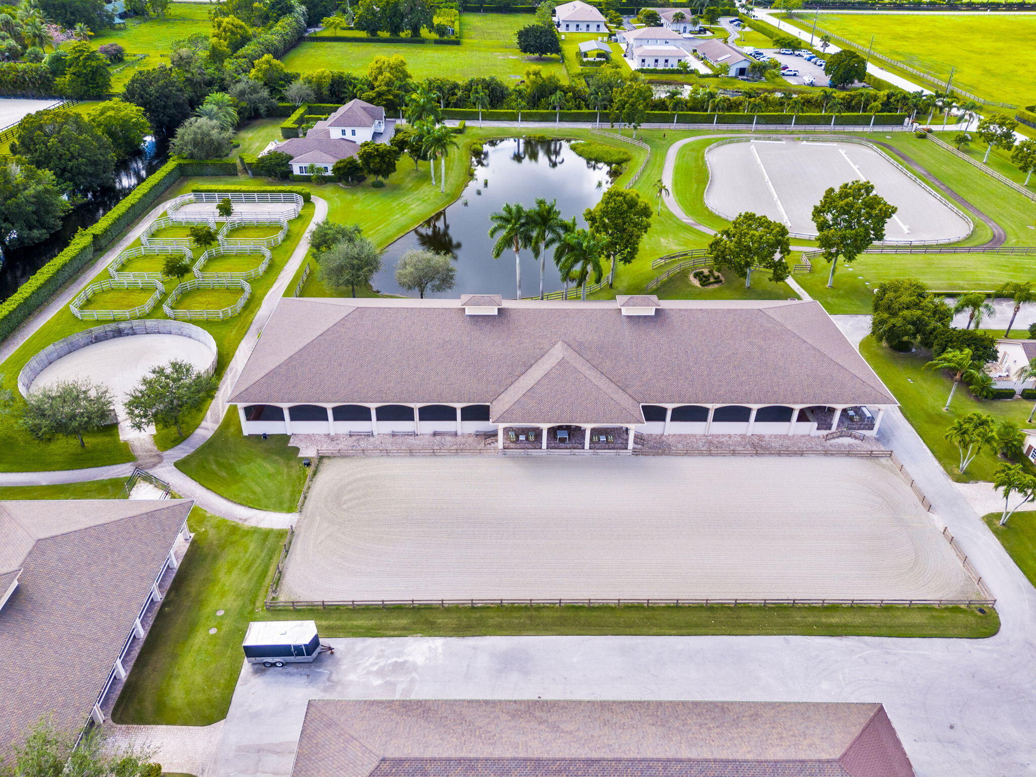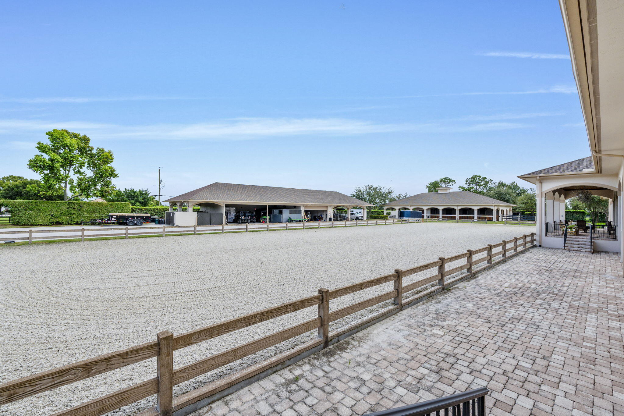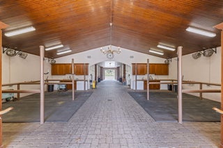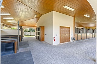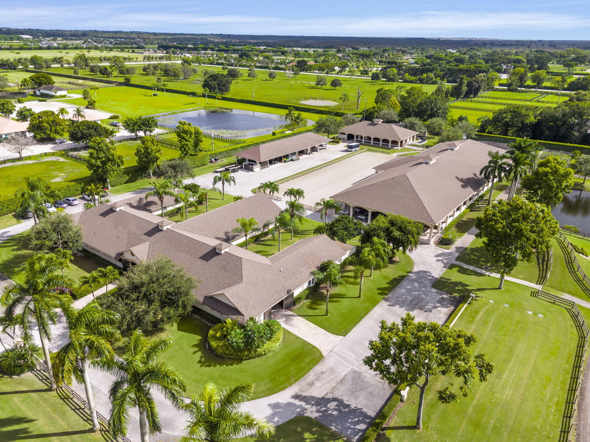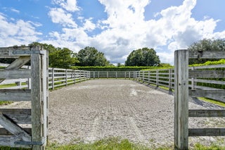 Step into a truly exceptional equestrian estate where Olympic-caliber performance meets refined luxury. Set on 10.33 stunning private acres, this thoughtfully designed property offers unparalleled training facilities alongside elegant living spaces crafted to support both horse and rider at the highest level.The centerpiece is an expertly engineered barn with 17 stalls, including a separate eight-stall barn featuring its own tack room. The barns and all amenities are impeccably maintained and beautifully appointed. Horses enjoy superior care with fans and fly spray systems in every stall, four grooming stalls, two wash stalls, multiple grooming stations, a dedicated farrier area with drive-in access, and a spacious covered equipment area for horse spa and exercise gear.Additional features include a hot walker, round pen, and seven paddocks, one of which is a stallion paddock. Ample tack rooms, equipment storage, manure management facilities, and multiple gated entrances support efficient and seamless daily operations. The training facilities are impressive and versatile, highlighted by a large covered arena with multiple viewing areas and two additional arenas perfect for schooling and clinics. Professional-grade footing is maintained by an indoor irrigation system, and multiple tracks encircle the property, providing everything needed for comprehensive equestrian training. The main residence is bright and airy, boasting over 5,078 square feet of living space with wood tile flooring throughout. It features a large kitchen outfitted with stainless steel appliances, including a Sub-Zero refrigerator, impact windows, and a primary suite with a relaxing sitting area and scenic views. Currently configured as a single-family home with five bedroomsthree upstairs, and 7.1 bathrooms, the layout offers flexibility to be converted into two separate living spaces, ideal for multigenerational living, guests, or trainers. Additional highlights include a spacious patio with pool, powder and laundry rooms, three AC units, a gas generator, and large storage closets. Set amidst beautifully maintained grounds and mature landscaping, this estate blends professional equestrian excellence with sophisticated living. The entire property is surrounded by lush Clusia hedges and secure fencing, providing ultimate privacy and tranquility. Located in Wellington, just minutes from premier horse show venues, upscale shopping, and dining, it presents a truly rare opportunity to own a private, luxury equestrian property in one of the nation's most desirable equestrian communities.