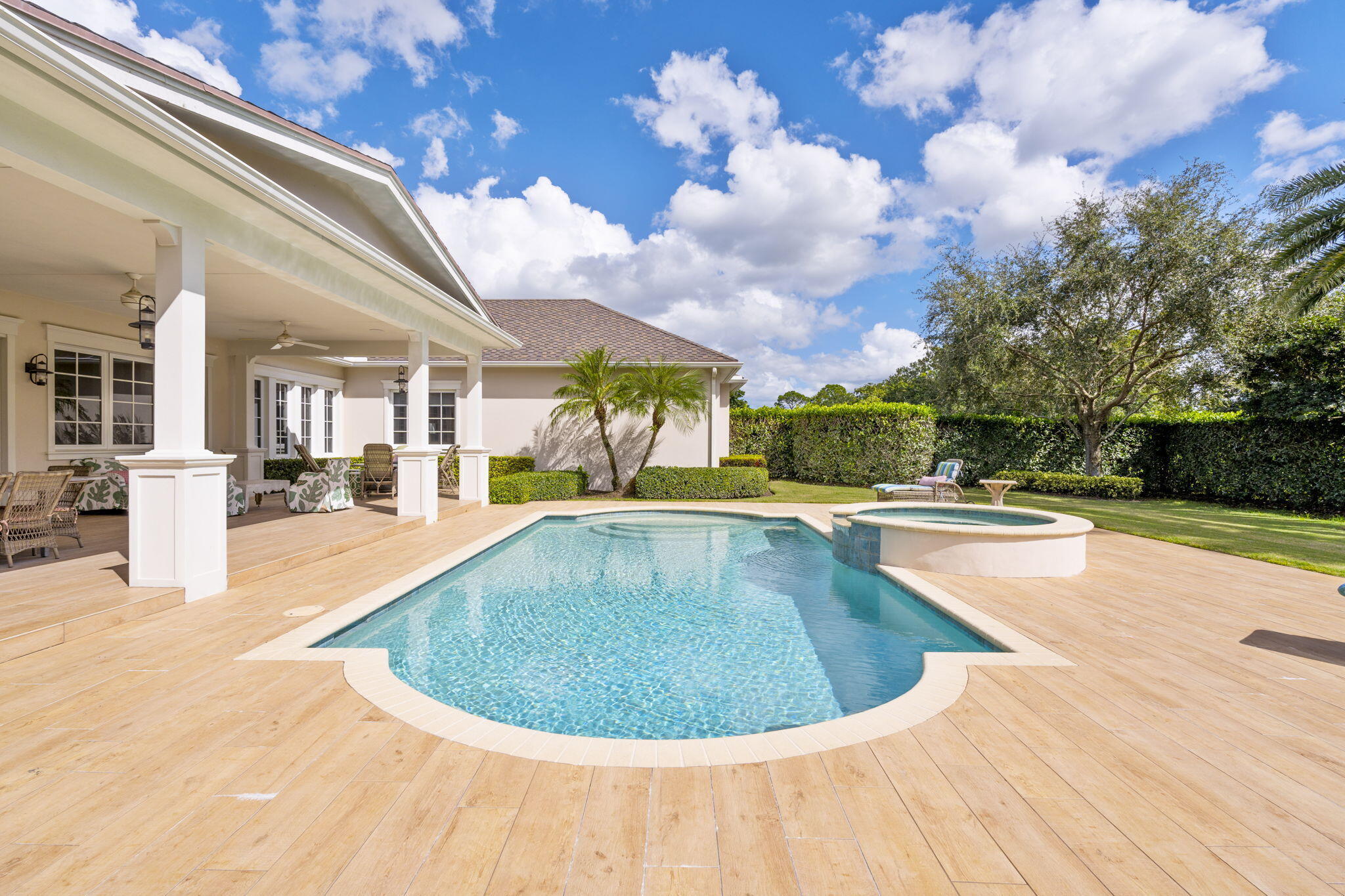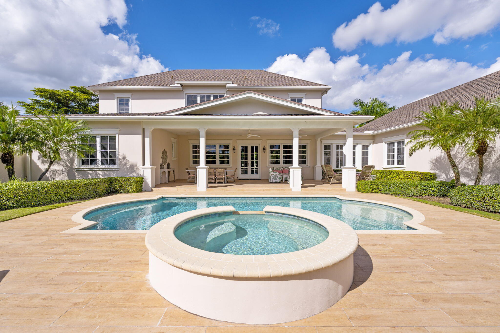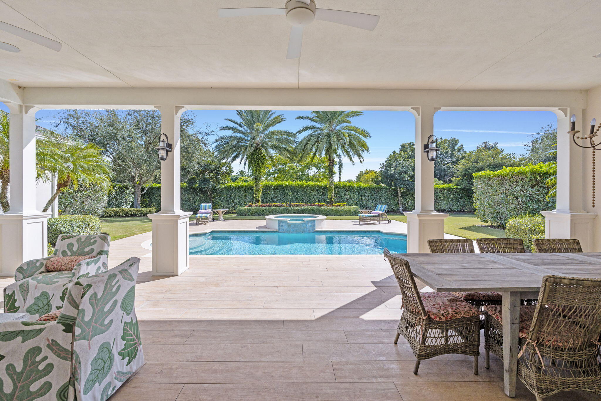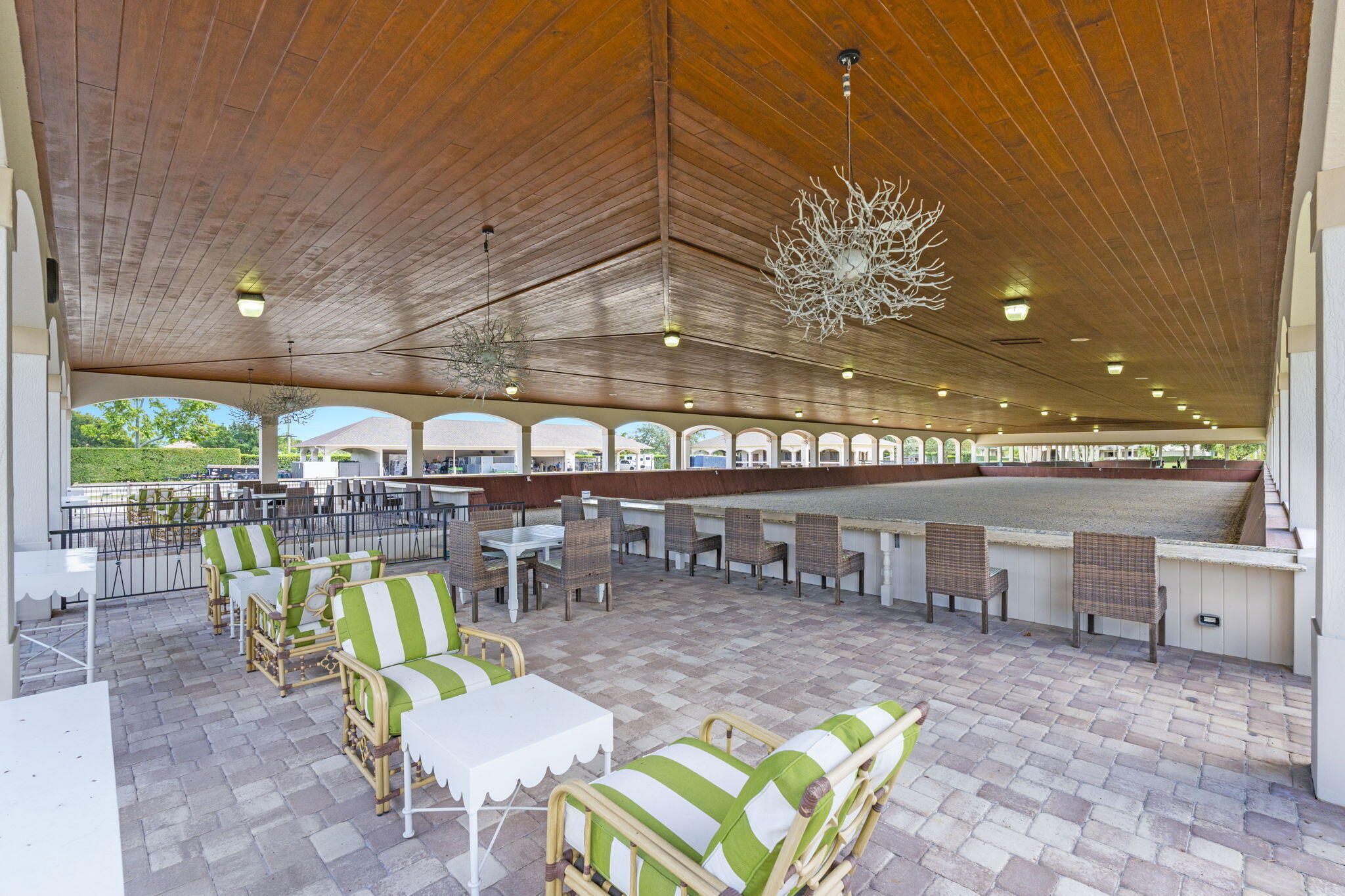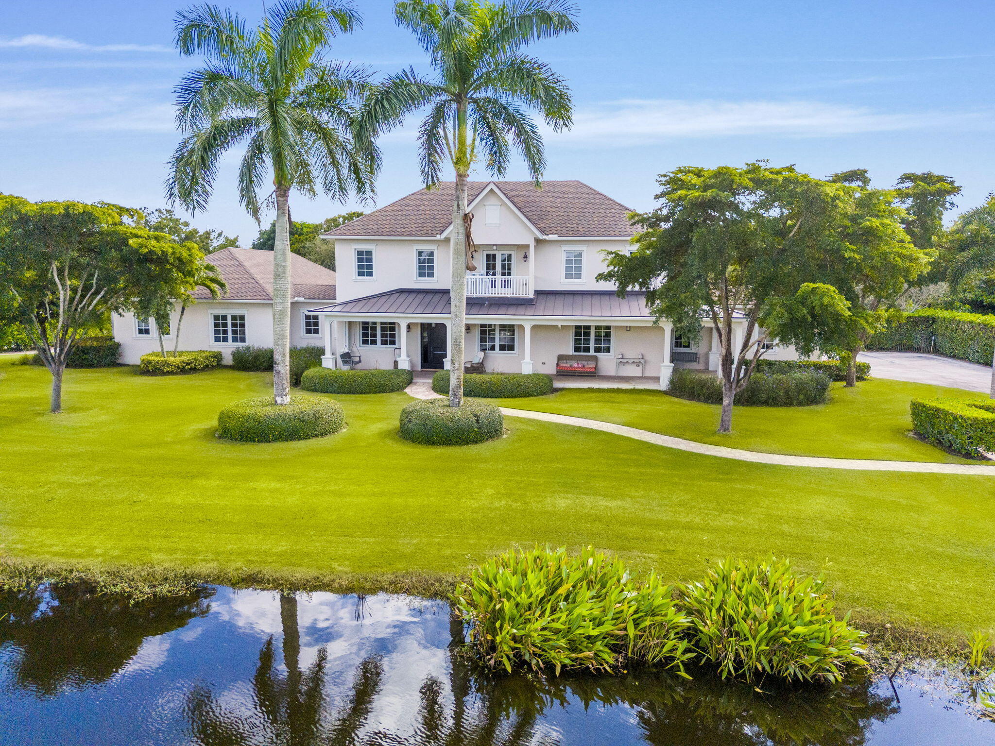 Step into a truly exceptional equestrian estate where Olympic-caliber performance meets refined luxury. Set on 10.33 stunning private acres, this thoughtfully designed property offers unparalleled training facilities alongside elegant living spaces crafted to support both horse and rider at the highest level.The centerpiece is an expertly engineered barn with 17 stalls, including a separate eight-stall barn featuring its own tack room. The barns and all amenities are impeccably maintained and beautifully appointed. Horses enjoy superior care with fans and fly spray systems in every stall, four grooming stalls, two wash stalls, multiple grooming stations, a dedicated farrier area with drive-in access, and a spacious covered equipment area for horse spa and exercise gear.Additional features include a hot walker, round pen, and seven paddocks, one of which is a stallion paddock. Ample tack rooms, equipment storage, manure management facilities, and multiple gated entrances support efficient and seamless daily operations. The training facilities are impressive and versatile, highlighted by a large covered arena with multiple viewing areas and two additional arenas perfect for schooling and clinics. Professional-grade footing is maintained by an indoor irrigation system, and multiple tracks encircle the property, providing everything needed for comprehensive equestrian training. The main residence is bright and airy, boasting over 5,078 square feet of living space with wood tile flooring throughout. It features a large kitchen outfitted with stainless steel appliances, including a Sub-Zero refrigerator, impact windows, and a primary suite with a relaxing sitting area and scenic views. Currently configured as a single-family home with five bedroomsthree upstairs, and 7.1 bathrooms, the layout offers flexibility to be converted into two separate living spaces, ideal for multigenerational living, guests, or trainers. Additional highlights include a spacious patio with pool, powder and laundry rooms, three AC units, a gas generator, and large storage closets. Set amidst beautifully maintained grounds and mature landscaping, this estate blends professional equestrian excellence with sophisticated living. The entire property is surrounded by lush Clusia hedges and secure fencing, providing ultimate privacy and tranquility. Located in Wellington, just minutes from premier horse show venues, upscale shopping, and dining, it presents a truly rare opportunity to own a private, luxury equestrian property in one of the nation's most desirable equestrian communities.