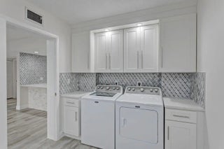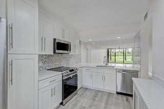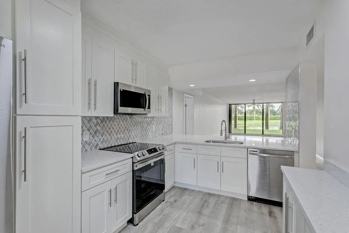 This is a must see!!! Just reduced this renovated most desirable 1st floor condo that comes with stunning water & golf course views, & is ready now! Move in ready 2 bedroom, 2 bathroom condo also comes with a bonus room, great for office or working from home. Beautiful neutral color paint throughout the entire unit, no popcorn ceilings & luxurious wood plank flooring. No carpet! The gourmet kitchen has new cabinets with soft close drawers & cabinets, custom crown molding, stunning quartz countertops with designer marble backsplash, stainless steel appliances & an extended breakfast bar accented by stoned tile kickboard. Stainless steel sink & faucet, LED lighting and additional cabinets with quartz countertops great for entertaining. This is Florida living at its finest!