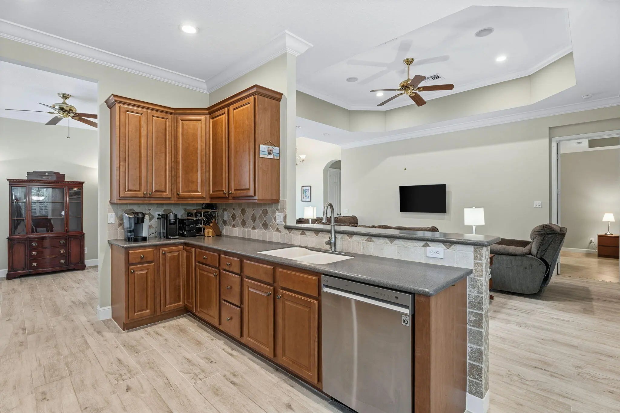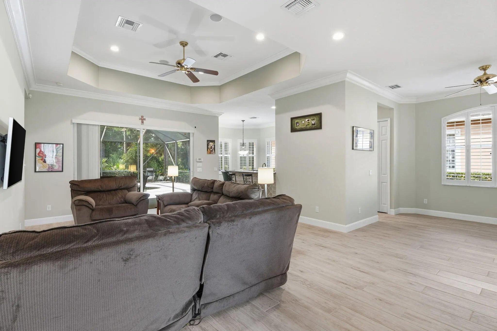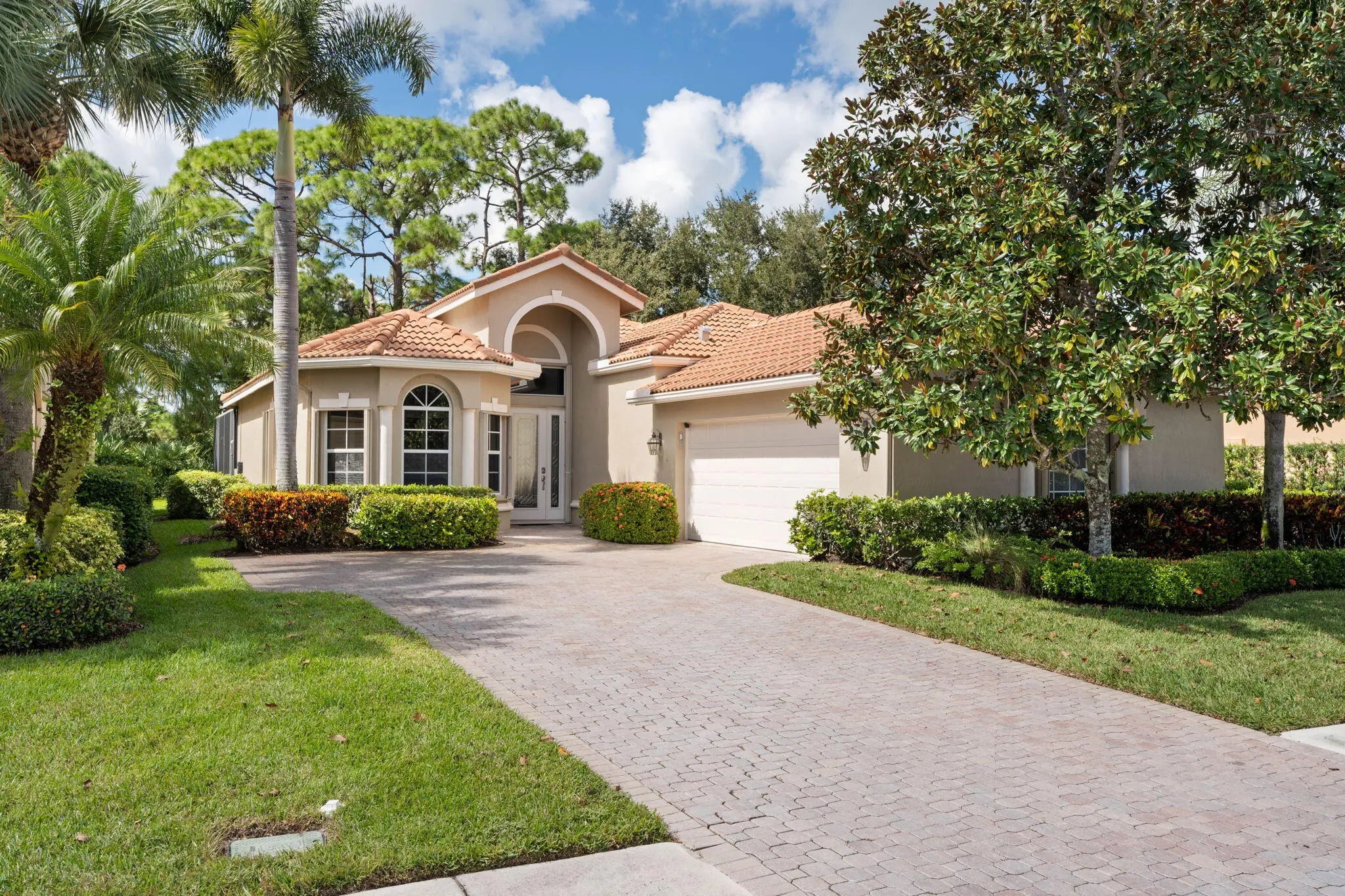 Welcome to Maidstone at PGA Village, where timeless design meets relaxed Florida living. This 2BR + den, 2.5 bath retreat offers a heated pool and spa surrounded by vibrant tropical landscaping. Light pours through plantation shutters onto wood-look tile floors that flow through open, inviting spaces designed for comfort and connection. The kitchen and family room open to the screened lanai for effortless indoor-outdoor living. Dues include lawn care, cable, internet, + access to exclusive amenities, fitness center, lap pool, tennis, & pickleball. Optional memberships available at The Legacy and PGA Golf Club's championship courses. Experience the ultimate blend of serenity, sophistication, and resort-style living, where every day feels like a private getaway in the heart of PGA Village.