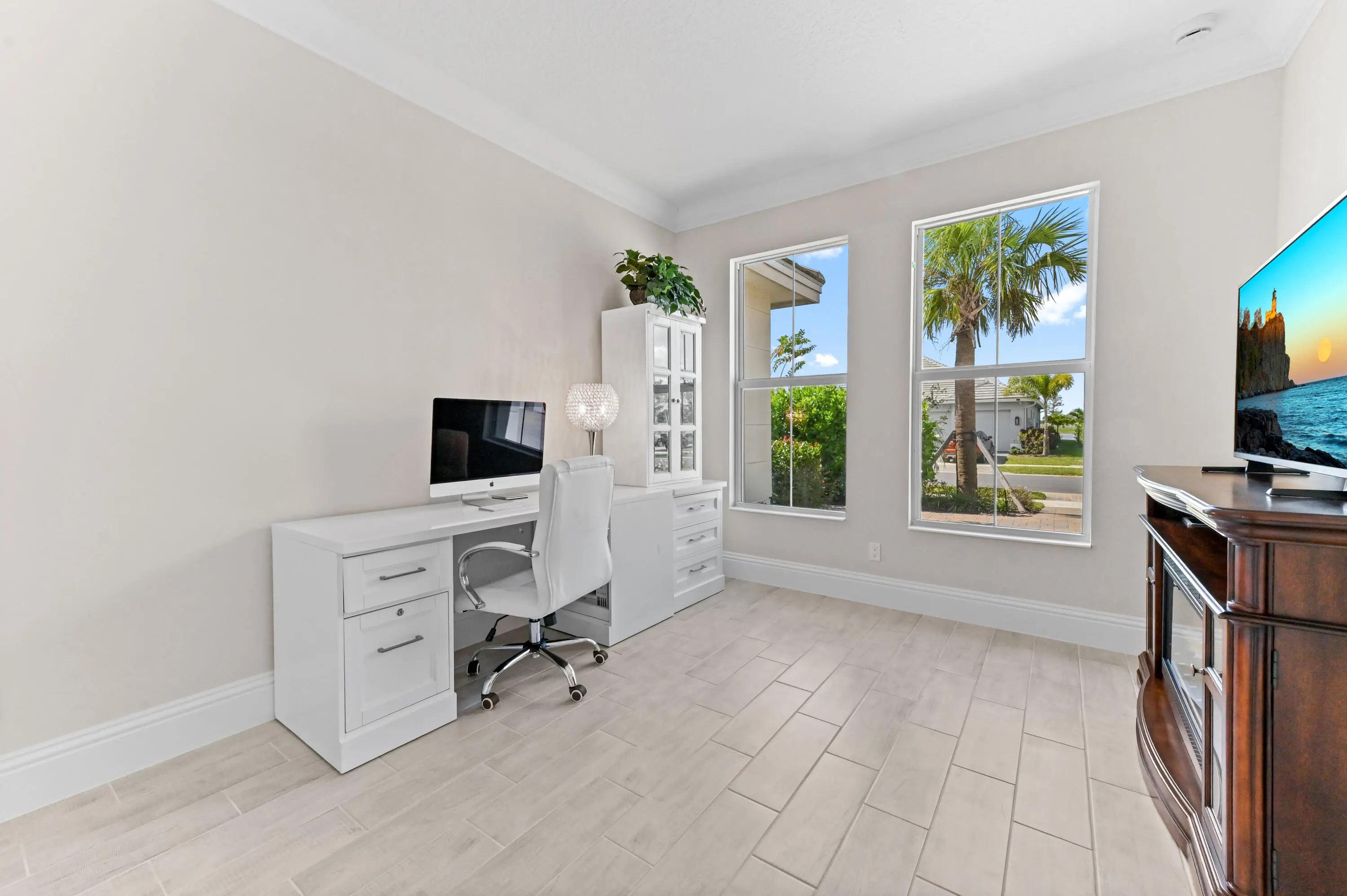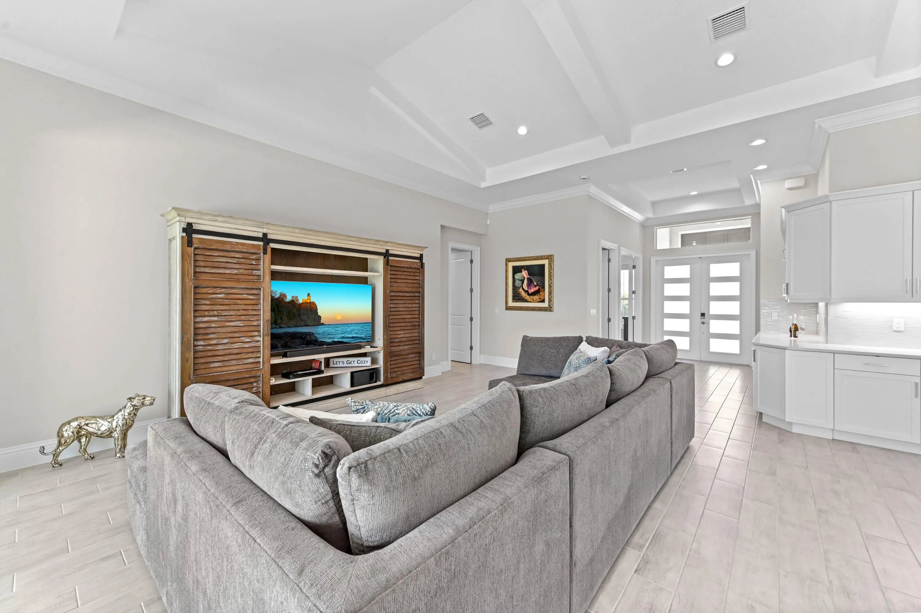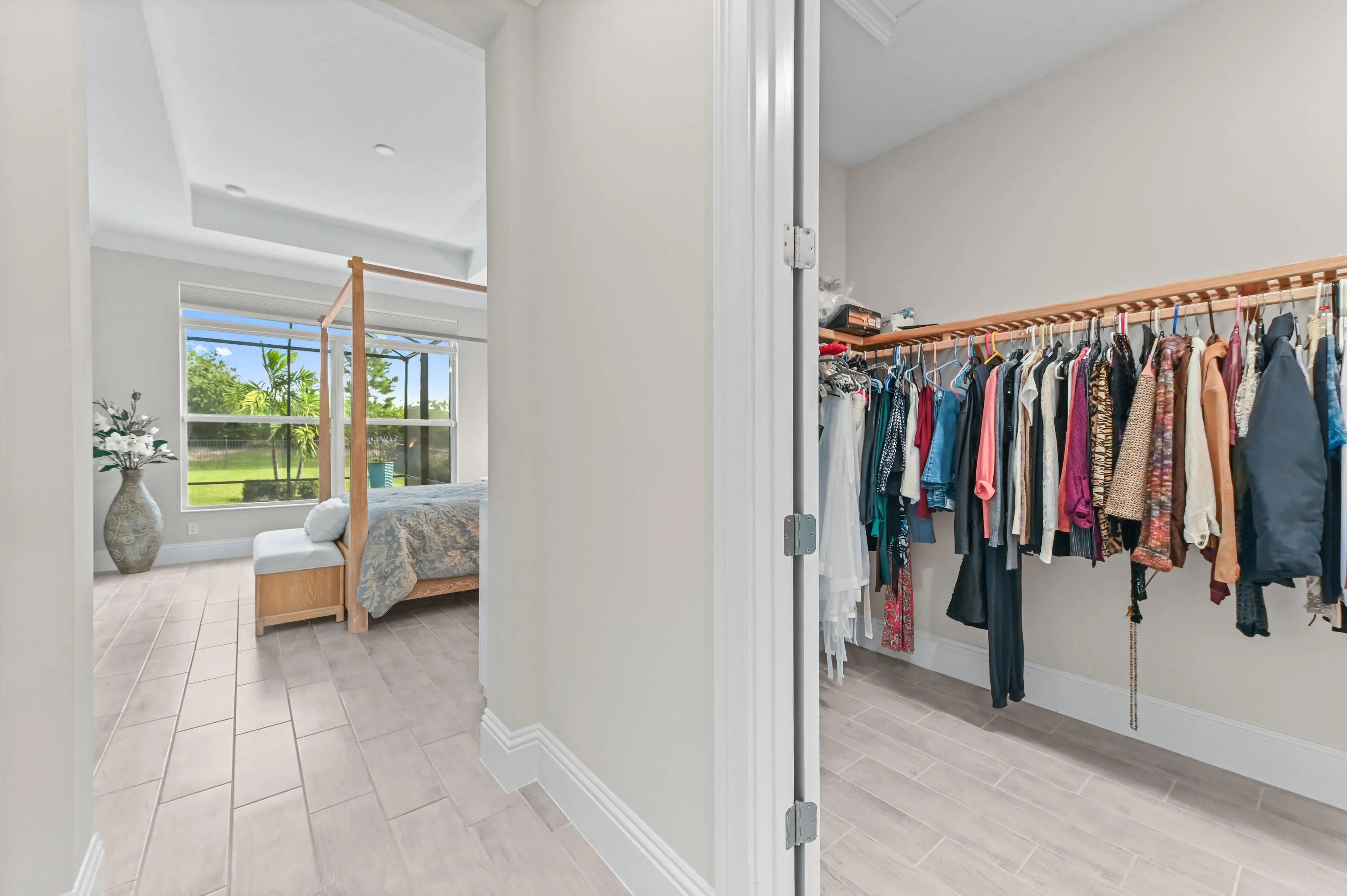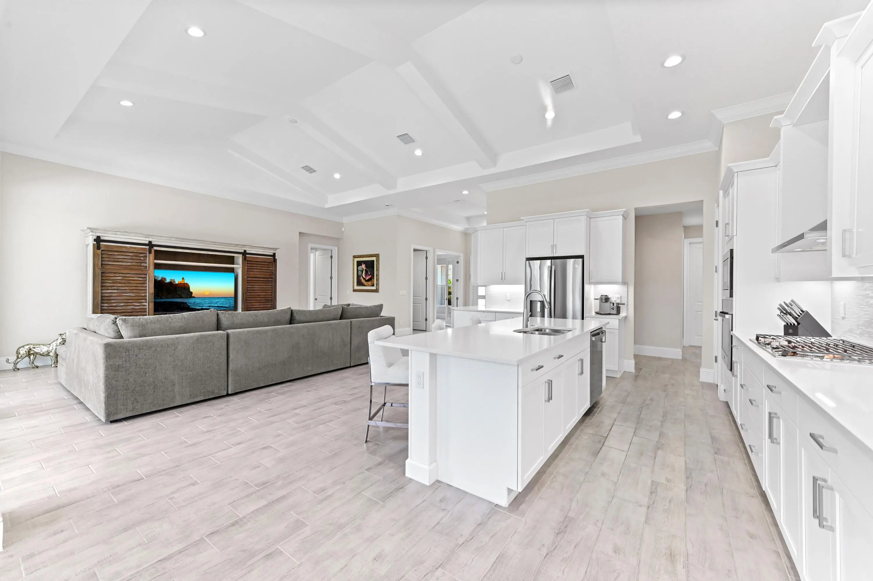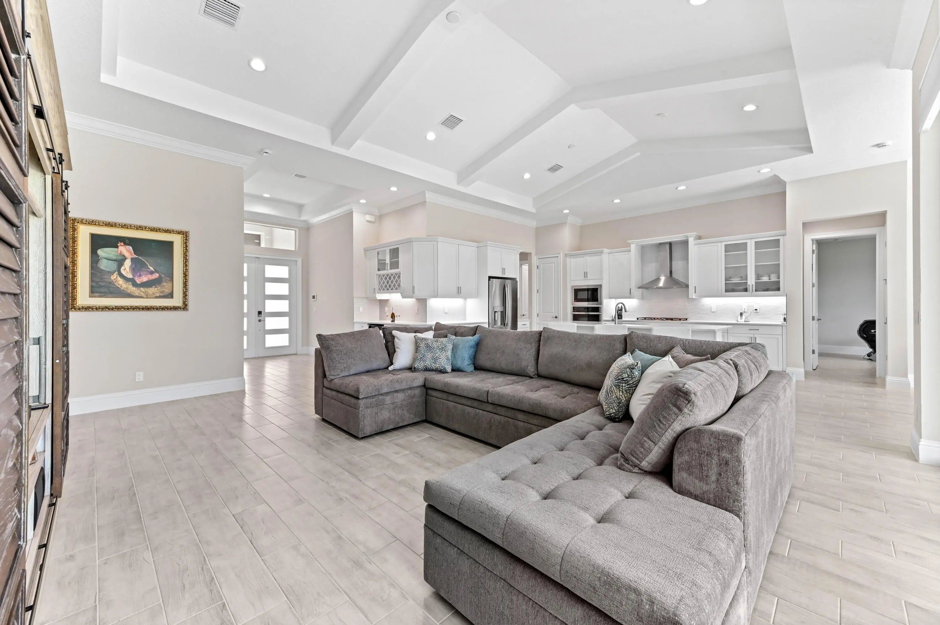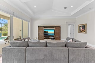 Prepare to live the ultimate Florida lifestyle in this upgraded Willow Signature model pool home, a luxury 5-bedroom, 3.5-bath sanctuary by GHO Homes, located in the highly desirable, gated Belterra at Tradition. This model is no longer offered by the builder - why wait for new construction when this move-in-ready masterpiece is perfectly situated on an oversized lot with no backyard neighbors for maximum privacy?Step inside to be captivated by soaring vaulted ceilings, abundant natural light, and stunning pool views. The open floor plan flows seamlessly over elegant wood plank tile flooring (2023) and is complemented by upgraded baseboards (2023) and simple, elegant crown molding throughout.