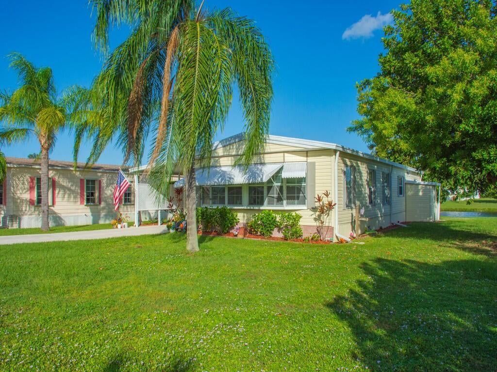 WELCOME HOME to this beautifully REMODELED, WATERFRONT home in the 55+ community of Spanish Lakes Golf Village! NEW kitchen, floors, appliances, water heater. This home is MOVE IN READY! Enjoy the wide water view from your back patio! This home has 2 bedrooms, 2 bathrooms, and is located at the end of the Cul de sac! Roof replaced in 2023! Schedule your private showing today, this home won't last long!