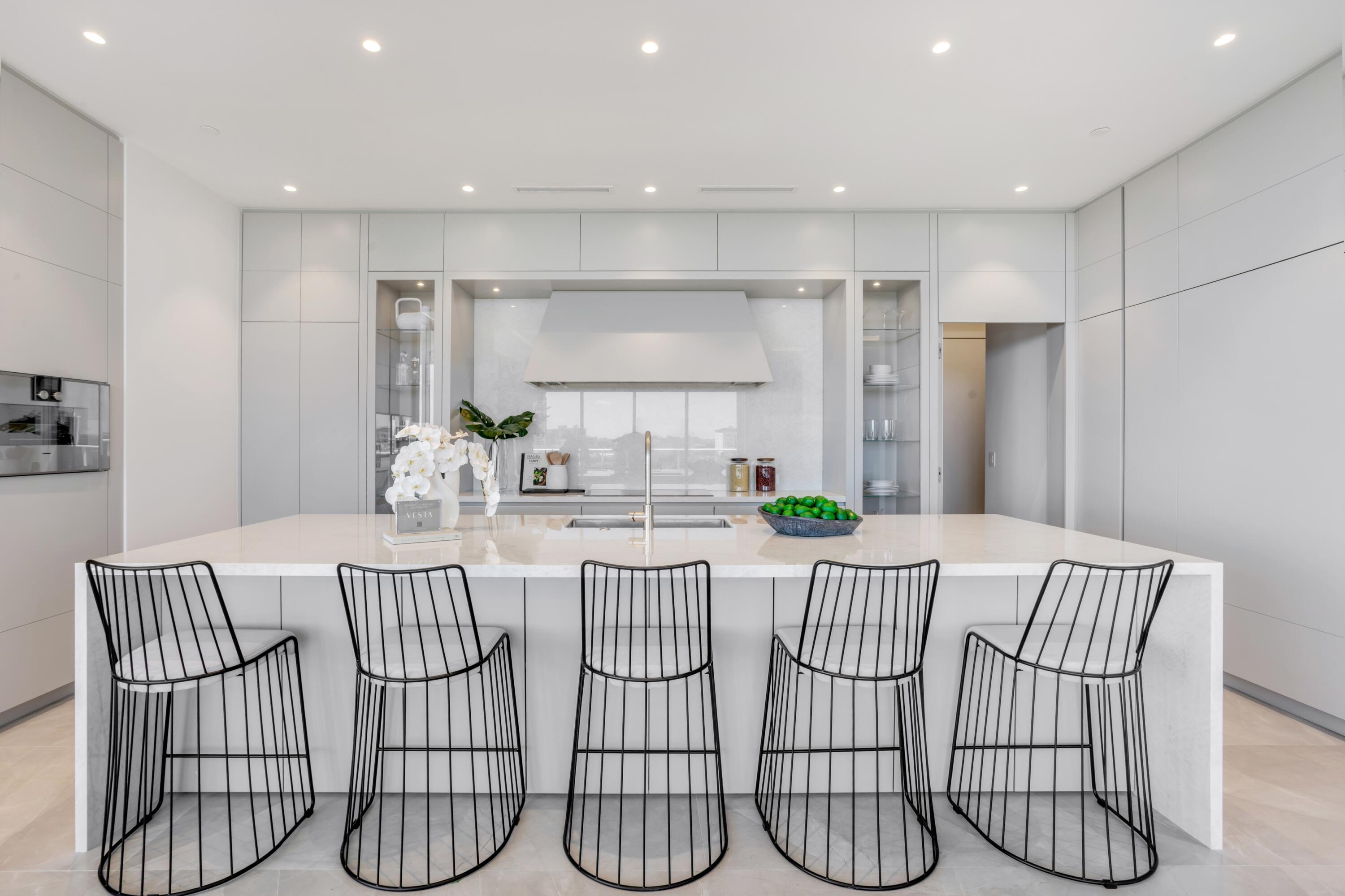 220 South East Mizner Boulevard, Boca Raton, Florida. Ideally situated in the heart of downtown Boca Raton, Alina 220 stands as a landmark of contemporary sophistication overlooking the posh Boca Raton Resort's verdant green fairways and the azure ocean beyond. Created by one of New York's most renowned developers, this nine-story architectural masterpiece encompasses 152 exclusive private residences surrounded by 8.5 acres of lush, artfully landscaped grounds.Residents enjoy immediate access to the city's most desirable destinations: Royal Palm Place, Mizner Park, fine dining, upscale galleries, and couture boutiques, only steps away. The resort-style amenities include an elegant lobby, elite-performance fitness center, club and game rooms, private yoga studio, ... continued ...full-service spa with saunas, steam and salt rooms, plus 24/7 concierge, security, and valet, all under the attentive care of a white-glove staff dedicated to refined living. ________________________________________ PROPERTY This private residential retreat embodies luxury resort living with exceptional outdoor amenities, a sparkling rooftop pool and cabanas, meditation garden, yoga lawn, dog park, and private indoor/outdoor dining terrace with catering kitchen, all designed to elevate wellness, leisure, and social connection. ________________________________________ RESIDENCE Occupying the uppermost floor of Alina 220, this brand-new, fully custom finished southeast-corner Penthouse represents the pinnacle of modern Boca Raton living. Spanning 5,151± total square feet, the three-bedroom, split-plan residence combines dramatic architectural volume with ultra-luxury appointments throughout. Expansive walls of floor-to-ceiling glass capture panoramic breathtaking views of The Boca Raton Resort's emerald fairways and the azure Atlantic Ocean, seamlessly inviting the captivating, serene vistas of the natural surroundings infused into the interior living spaces. The expansive great room, encompassing living, dining, and media areas, is bathed in natural light and framed by 11-foot± tray ceilings with concealed recessed linear lighting, creating a sense of airy grandeur. Adjacent to the light infused great room, a tailored den with tailored cabinetry and wet bar complements the designer European-style kitchen, a true showpiece featuring a cascading-edge island, custom cabinetry, porcelain countertops, Gaggenau appliances, and a spacious walk-in pantry. The primary suite serves as a private sanctuary, offering dual walk-in closets, a private sitting room, and a spa-inspired marble bath with freestanding soaking tub, dual vanities, large glass-enclosed multi-head shower, and two water closets all oriented toward sweeping views of the golf course, skyline, and ocean. Two additional guest suites provide equally stunning vistas. Additional features include a powder room, laundry room, two garage spaces, private elevator access, Savant Smart Home automation, premium Samsung TVs, Lutron lighting, and a full security system. ALINA 220 PENTHOUSE 24 TECHNOLOGY & SYSTEM ENHANCEMENTS A fully automated management system by Savant - controls audio, TVs, lighting, climate, and motorized shades, all from your phone, iPad, wall touchscreens, or voice. The integrated Lutron lighting system enables dimming, programmable custom lighting scenes, energy efficient scheduling, and automated routines adapt effortlessly to your preferred schedule. Trimless recessed downlights and LED cove lighting in key areas enhance warmth and architectural elegance. The whole-home Audio-Visual components are prewired throughout, extending to the dining, kitchen, den, and primary bath for immersive and balanced sound including: " Great Room: 85" Samsung display, Savant LCR soundbar, invisible ceiling speakers, and hidden subwoofer. " Primary Suite: 75" Samsung display, dual ceiling speakers, and wireless subwoofer. Also featured is a robust Wi-Fi 6 system ensuring fast, reliable coverage and discreet entry cameras provide secure video monitoring. In addition, custom millwork details include a primary suite bed wall with integrated TV, boutique closets, a tailored wet bar, great room media wall with concealed AV access, built-in guest closets, and elegant foyer cabinetry. Staging and furnishings by Vesta Home; all furniture available for purchase. DISCLAIMER: Information published or otherwise provided by the listing company and its representatives including but not limited to prices, measurements, square footages, lot sizes, calculations, statistics, and videos are deemed reliable but are not guaranteed and are subject to errors, omissions or changes without notice. All such information should be independently verified by any prospective purchaser or seller. Parties should perform their own due diligence to verify such information prior to a sale or listing. Listing company expressly disclaims any warranty or representation regarding such information. Prices published are either list price, sold price, and/or last asking price. The listing company participates in the Multiple Listing Service and IDX. The properties published as listed and sold are not necessarily exclusive to listing company and may be listed or have sold with other members of the Multiple Listing Service. Transactions where listing company represented both buyers and sellers are calculated as two sales. "No payments made until title passes" Some affiliations may not be applicable to certain geographic areas. If your property is currently listed with another broker, please disregard any solicitation for services. Information published or otherwise provided by seller, listing company or its representatives is deemed reliable but are not guaranteed and subject to errors, omissions, or changes without notice. Copyright 2025 by the listing company. All Rights Reserved.