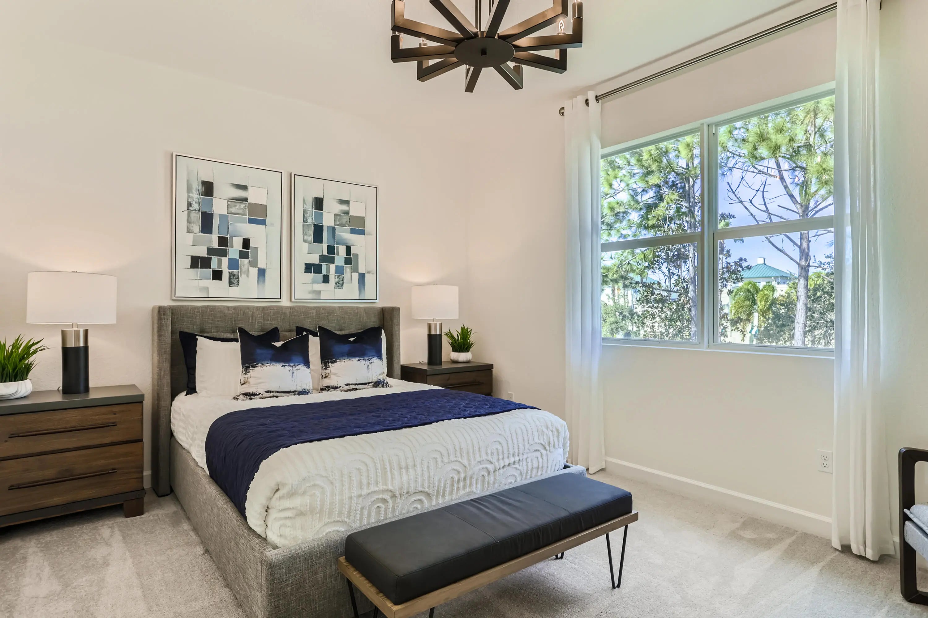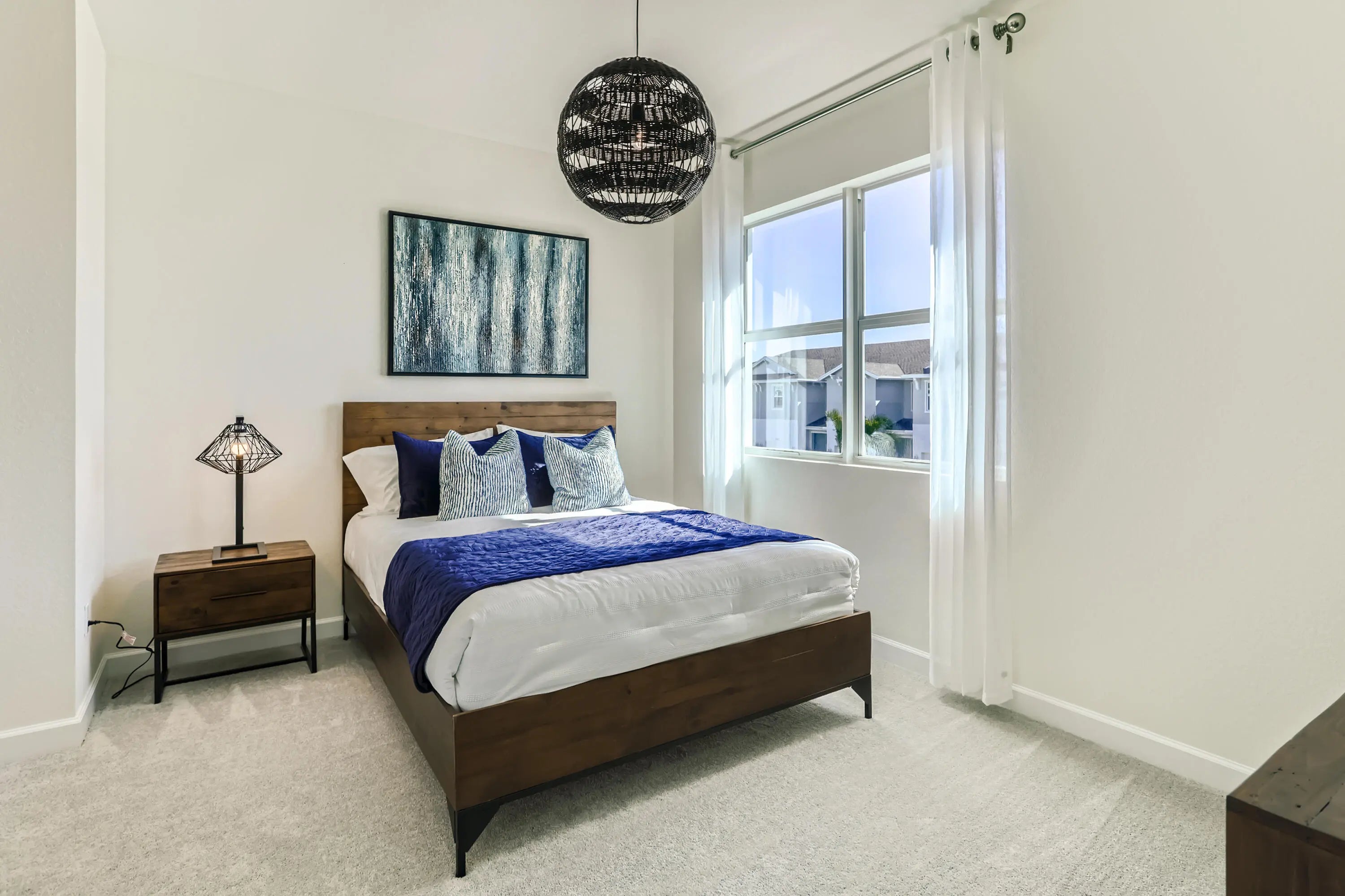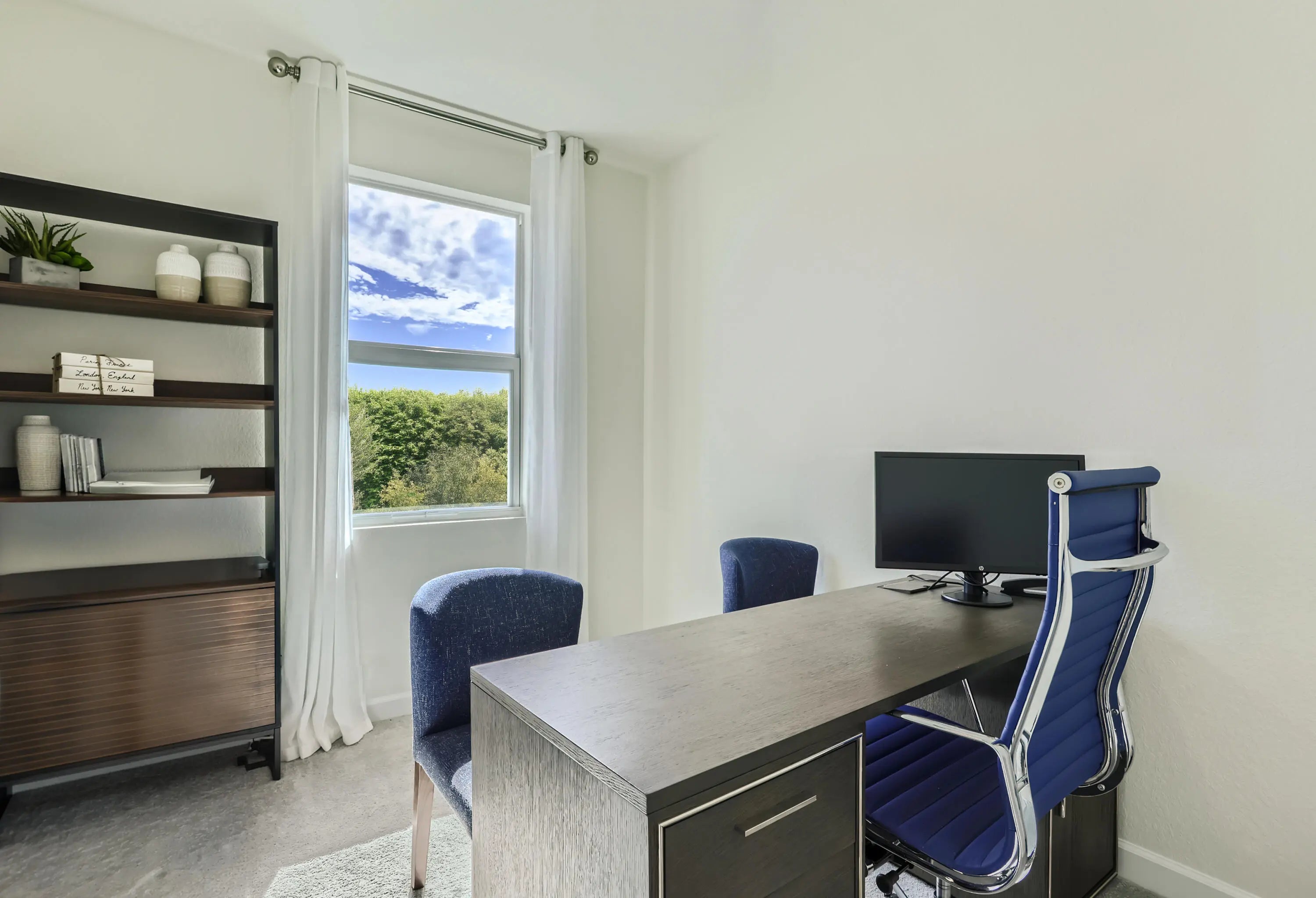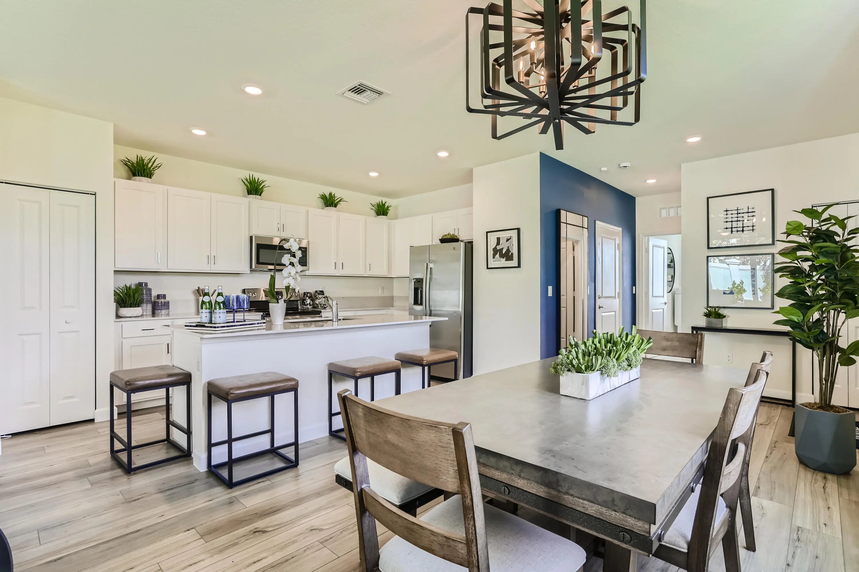 This two-story townhome has a smart layout that offers ample space and convenience. The first floor is occupied by the open-concept dining room, kitchen and living room, along with an attached terrace. A quiet study on the same level can be used as a home office. Upstairs are three peaceful bedrooms, each with direct access to an adjoining full-sized bathroom. Photos are for illustrative purposes only.
