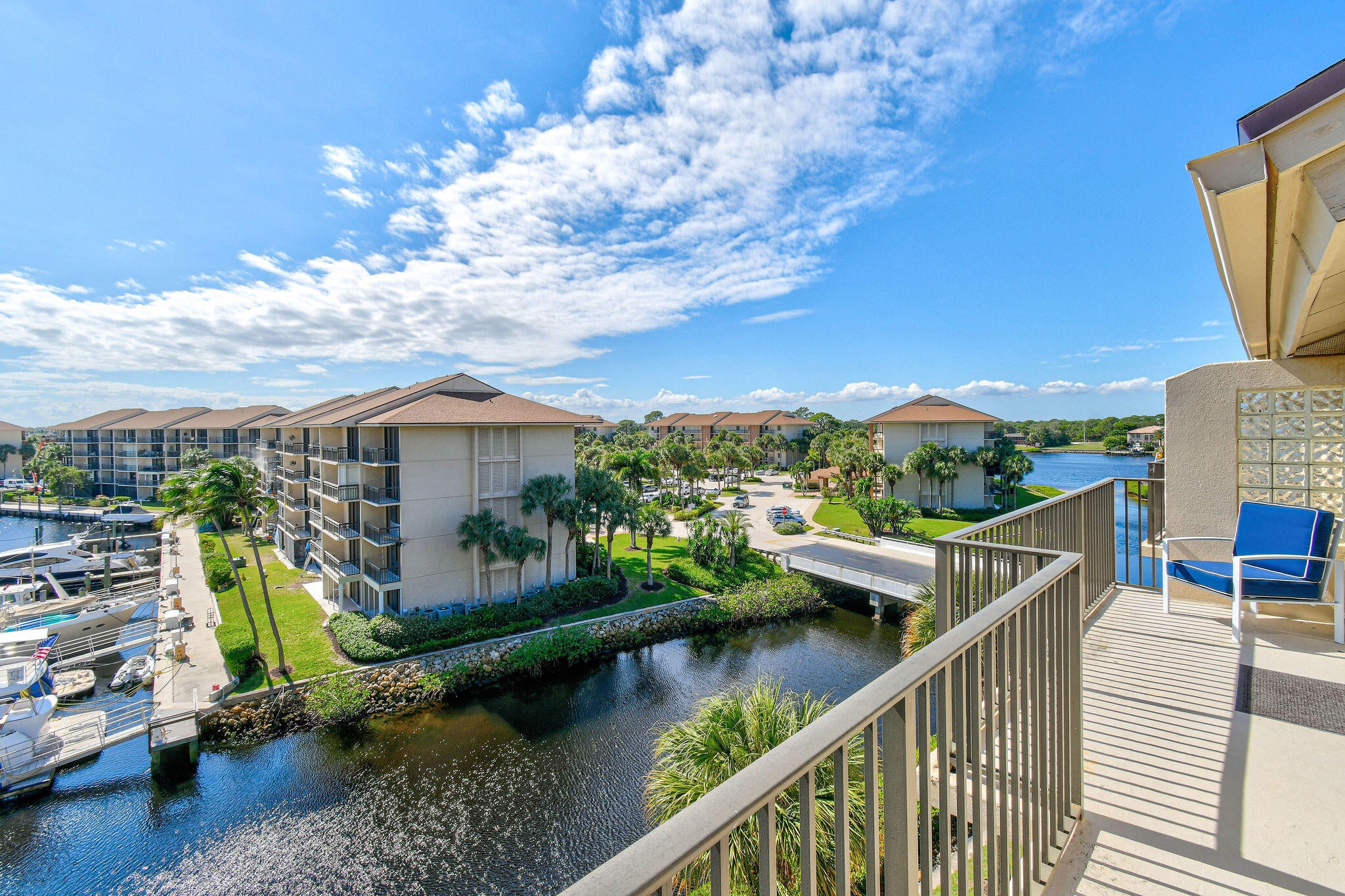 Enjoy this Bluffs Marina penthouse offering expansive marina views, where elegance meets comfort. This beautifully designed residence features soaring vaulted ceilings in the main living and dining areas as well as both bedrooms, creating an open and airy ambiance that sets it apart from lower-floor units. A spacious bonus room provides versatile options for an third bedroom, office, storage, or hobby space. Residents can enjoy four pool areas with covered pavilions and breathtaking marina and lake views--perfect for relaxation. Stay active with tennis and pickleball courts available for day or night play. The lush professionally maintained landscaping and winding sidewalks create an ideal setting for leisurely walks or safe biking, all complemented by refreshing tropical breezes.