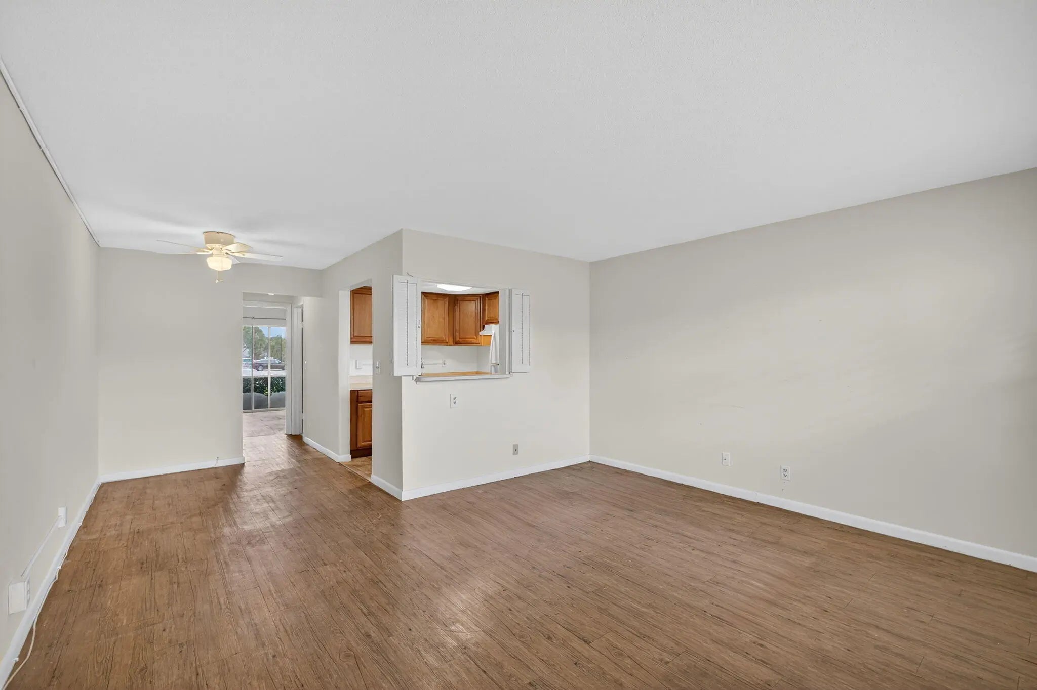 Bright and spacious ground-floor condo with plenty of natural light throughout. The functional kitchen features a convenient pass-through window that opens to the living area -- perfect for casual dining or entertaining. A large hallway closet provides great storage space, and the open, screened porch offers relaxing south views and a perfect spot to enjoy the Florida sunshine and breeze.This condo does need some updating, giving you the opportunity to make it your own or invest in a property with great potential. Conveniently located near the community laundry area and close to shopping, dining, and major roadways.