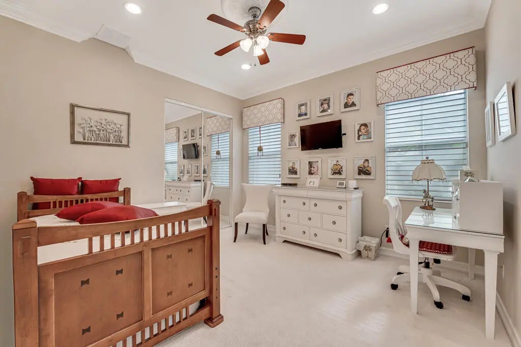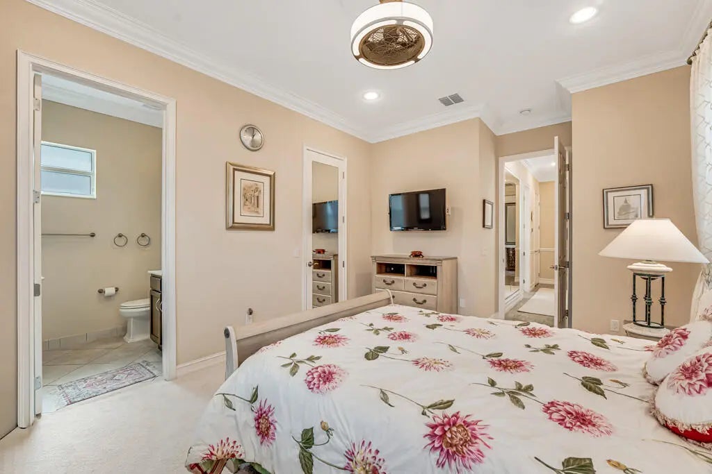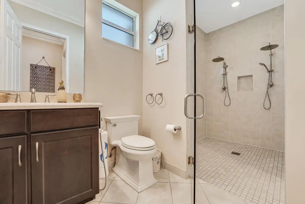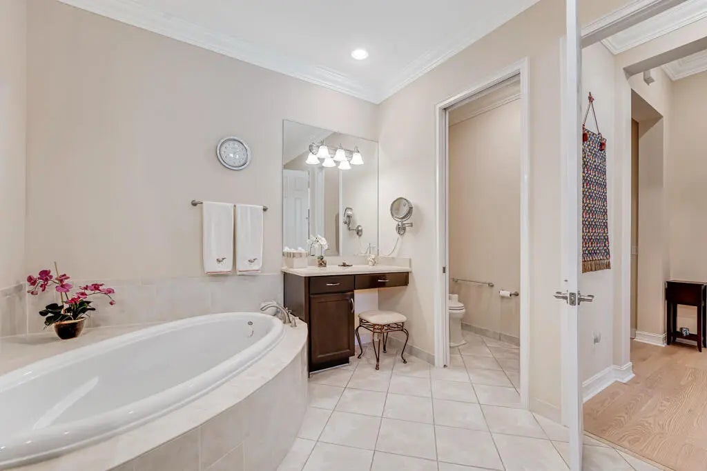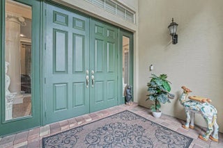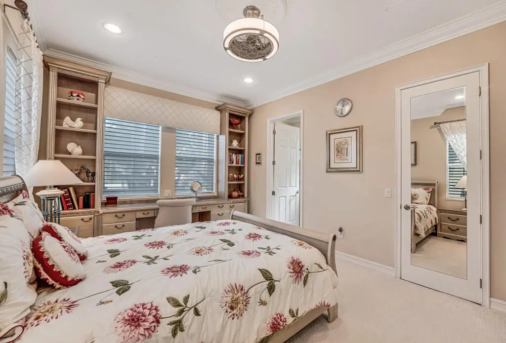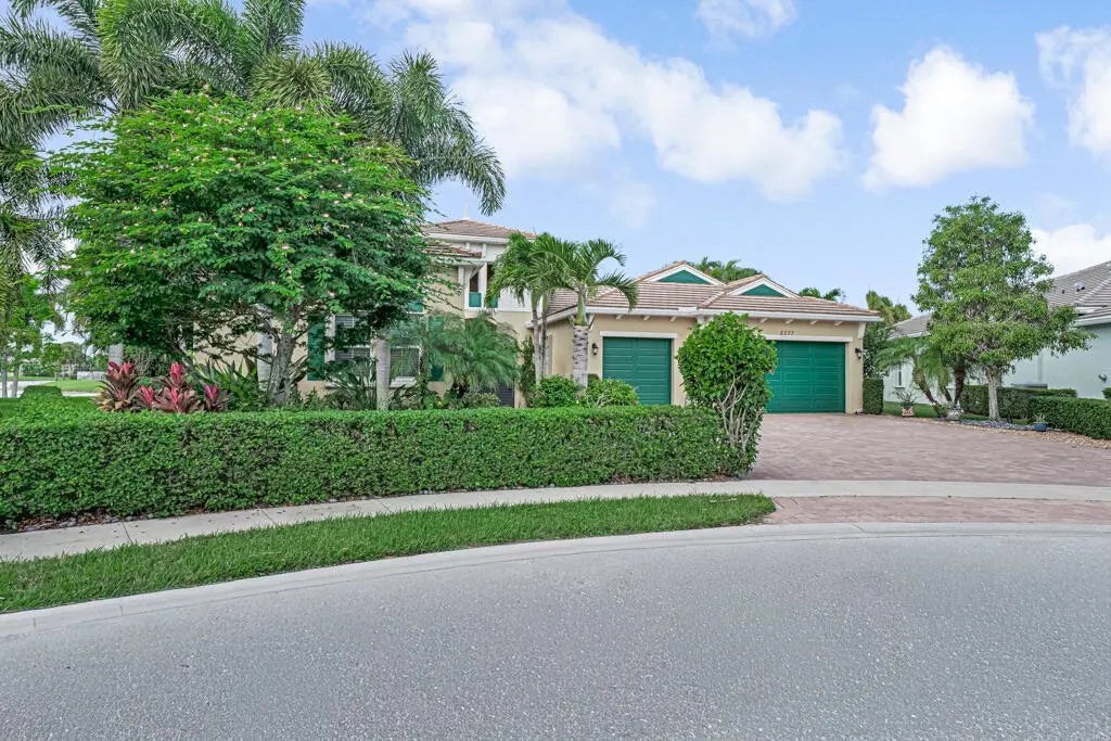 This elegant one-story home offers over 4,000 square feet of living space and is situated on a large pie-shaped lot at the end of a quiet cul-de-sac. Once part of the community's model row, the property is surrounded by expansive lakefront views, providing nearly 180 degrees of stunning water scenery.Notable features include a three-car garage, three private bedrooms, and a spacious club room currently used as an office. The home showcases high-end finishes such as crown molding throughout, 11-foot coffer ceilings, neutral tones, and light tile flooring across the main living areas.The primary bedroom wing offers exceptional comfort with red oak flooring, dual custom walk-in closets and separate his-and-hers bathroom areas, creating a private retreat within the home. Olympia