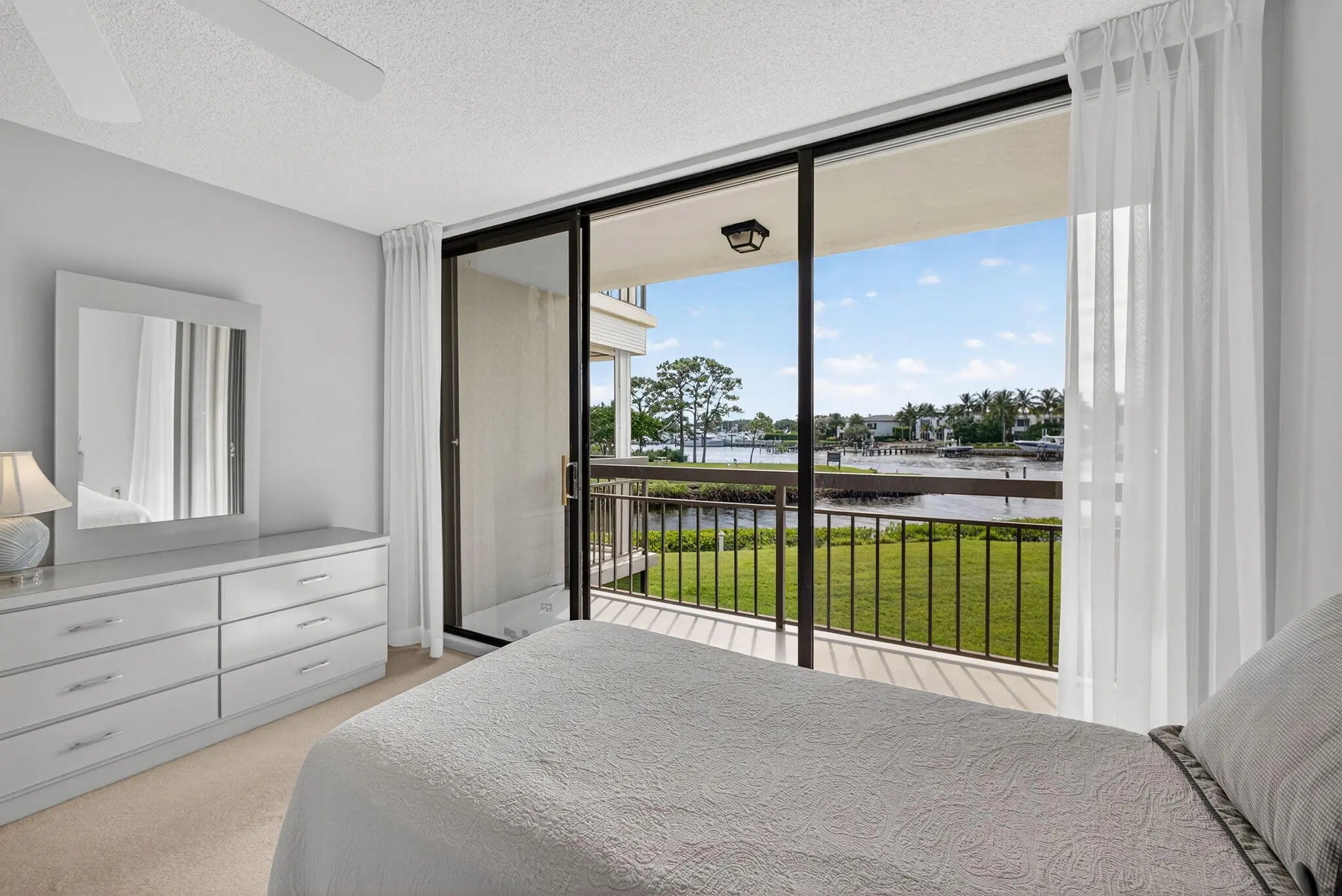Wow! What an amazing view! Rarely available Marina at the Bluffs 2nd floor condo with spectacular, unobstructed Intracoastal views! One of the best locations in the Bluffs plus great Jupiter location! Wake up each day to gorgeous Intracoastal views without tall trees blocking your views. 2 balconies located off the LR & master BR where you can enjoy the boats going by & fantastic sunsets. Community has a private marina, tennis courts & pools, with a pool adjacent to building 2201. Some updates, including A/C 2020, Water heater 2020, DW 2022, Dryer 2023, Washer 2024, Master BR shutters 2022 & kitchen remodel 2014. Bonus room off laundry room. Close to beaches, parks, Juno Pier, restaurants & shopping. Don't miss out!!