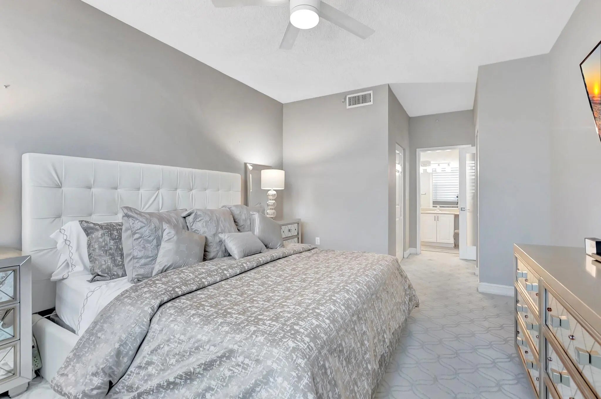 Beautifully renovated, furnished 2/2 split floor plan, 9ft ceilings, corner unit on the 1st floor, outdoor seating area, gated resort community on Intracoastal w private beach & 24hr security. Master king bed & welkin closet, shower/tub combo. Guest queen, Jacuzzi, Gym w Steam, Sauna, BBQ & Pizza oven, gazebo w TV outdoor all overlooking water, Clubhouse, Business Center Tennis/Picklball courts, Billiard Room, Pier extends into Intracoastal. Highland Beach Library, Police Dept, Fire Station adjacent. Walk/bike path extends miles along A1A. Minutes from trendy Delray Beach and Boca Raton. Plenty of guest parking.