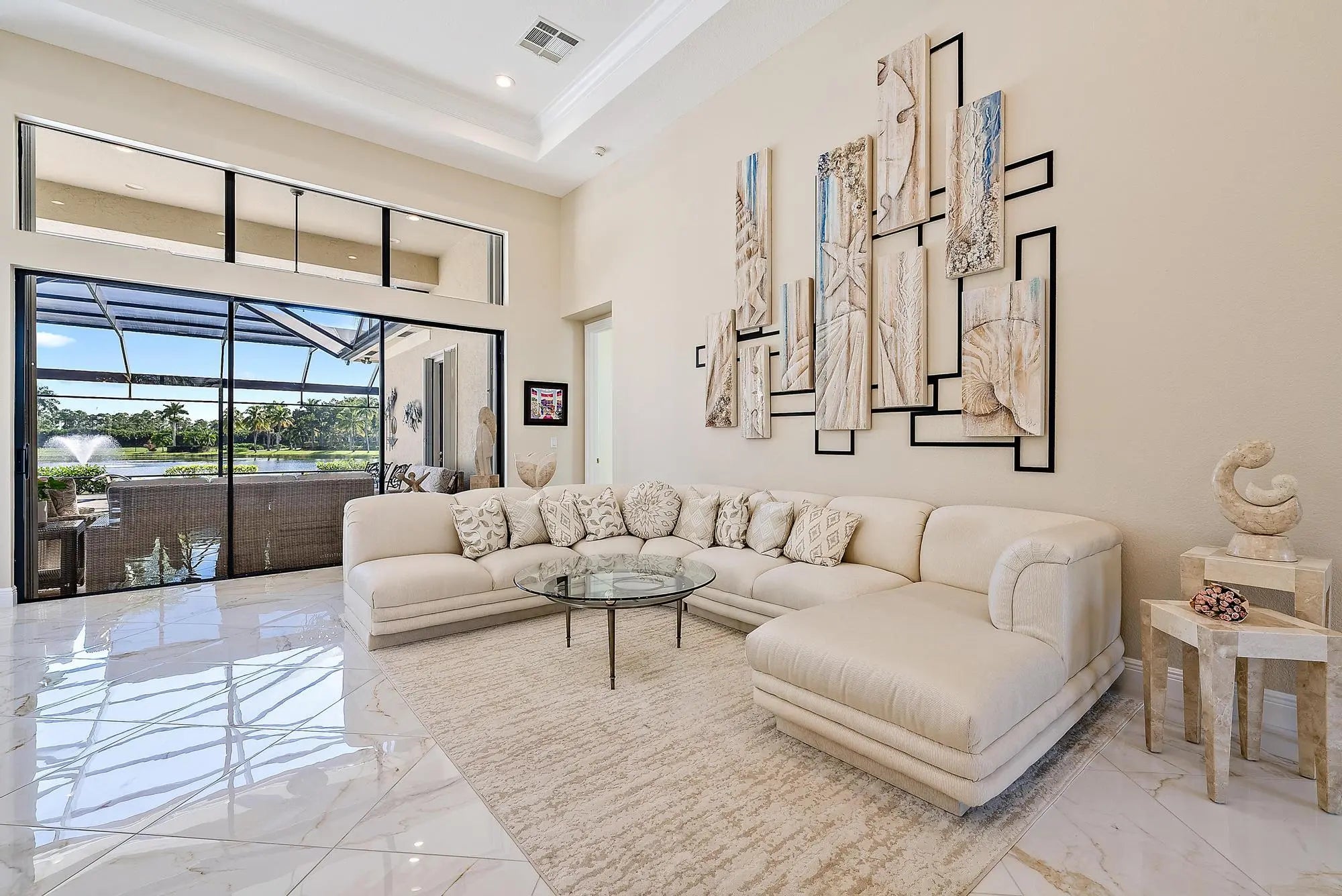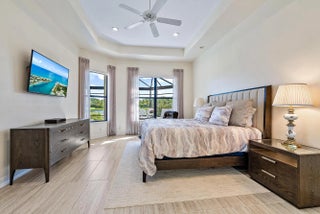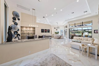 IMMEDIATE PREMIER GOLF MEMBERSHIP AVAILABLE WITH THE PURCHASE OF THIS HOME. With one of the most dramatic water views in Ibis, this beautifully situated Sabatello-built ''Danielle'' model has been stunningly renovated and enhanced. A true great room floor plan with all three bedrooms located on separate wings of the home, this 3BR/3BA+Den residence offers modern updates, timeless finishes, and a perfect setting for enjoying Ibis's signature Florida lifestyle. Major improvements provide peace of mind and enduring value: a NEW ROOF (2022), ACCORDION HURRICANE SHUTTERS, and SOLAR POWER (40 TESLA PANELS / 16KW) installed in 2023. Generac 24 KW full house generator provides safety, and peace of mind.