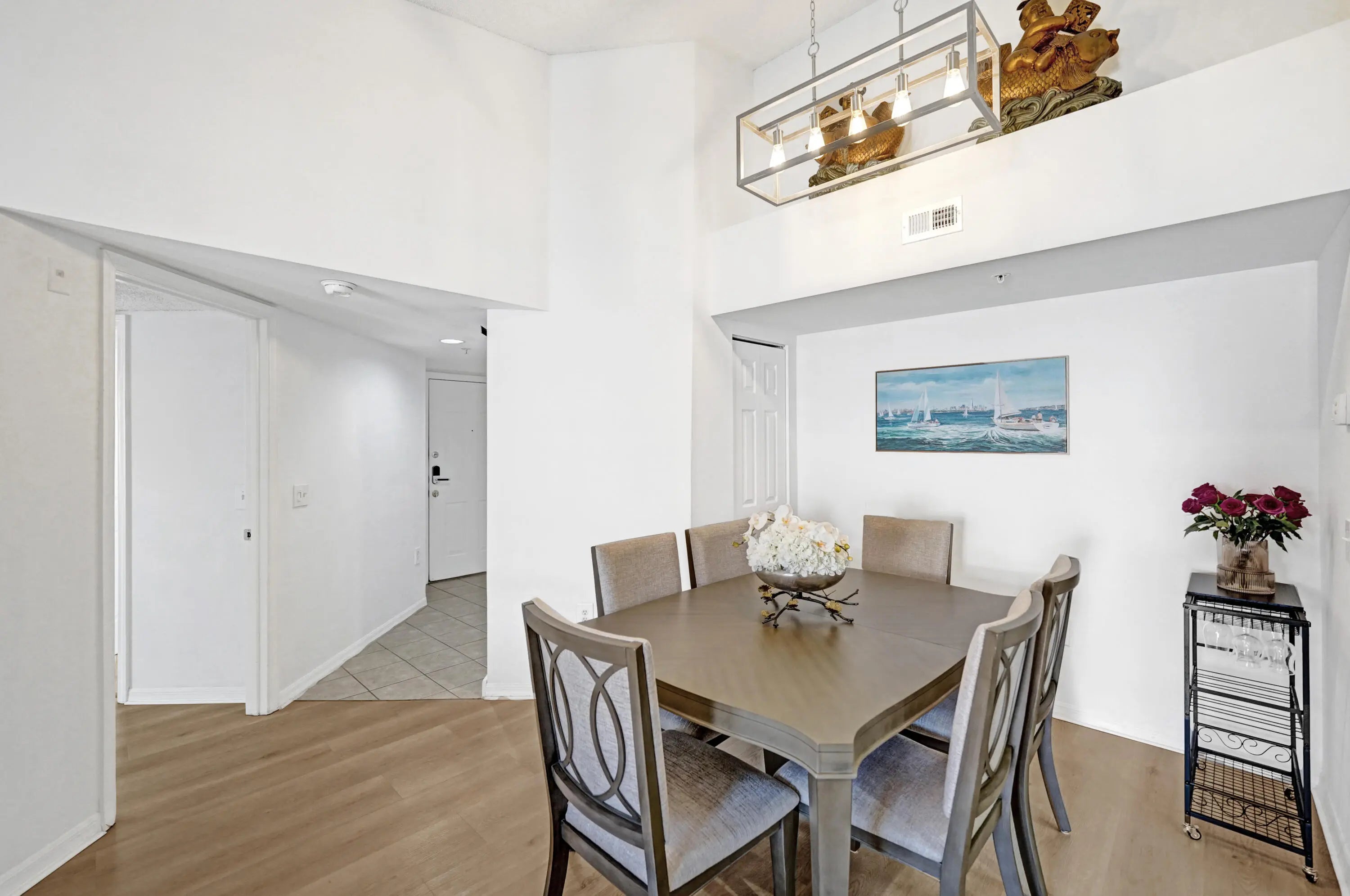Amazing opportunity to own a condo in the beautiful Village East. This is a very quiet gated community located next to Harbour Shops, La Fitness gym and lots of great Restaurants. This beautiful 2/2 updated condo has an open kitchen with Quartz countertops and stainless-steel appliances. The condo features full-sized luxury washer and dryer, large walk-in closets in both bedrooms. Brand new laminate floors have been installed and both bathrooms have recently been renovated. The community offers some amenities including a fitness center and business center with WIFI access, beautiful swimming pool, BBQ area and a car wash area. Pets are welcome. Priced to sell, motivated seller