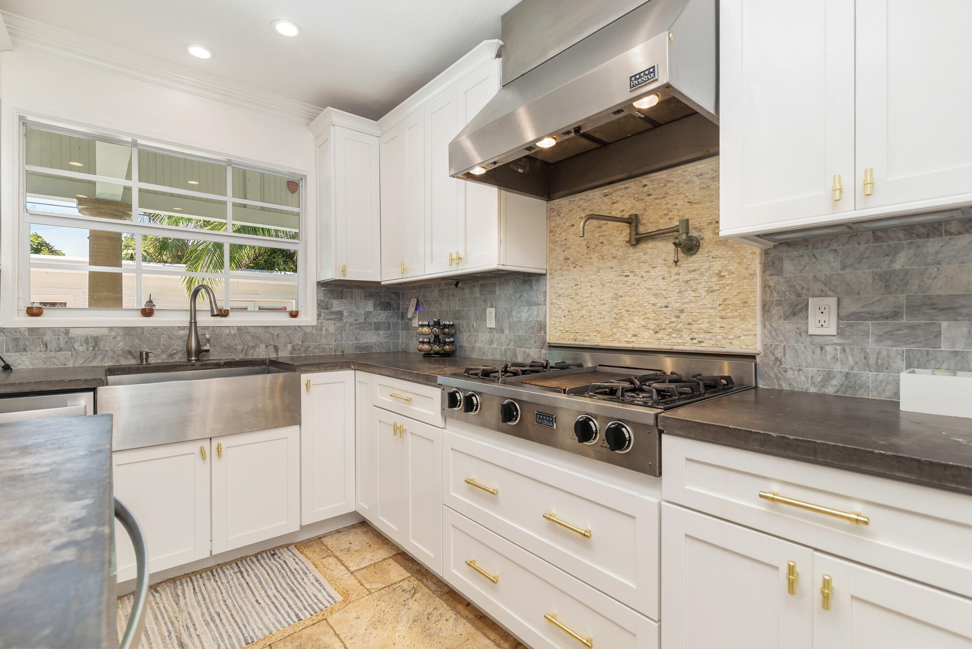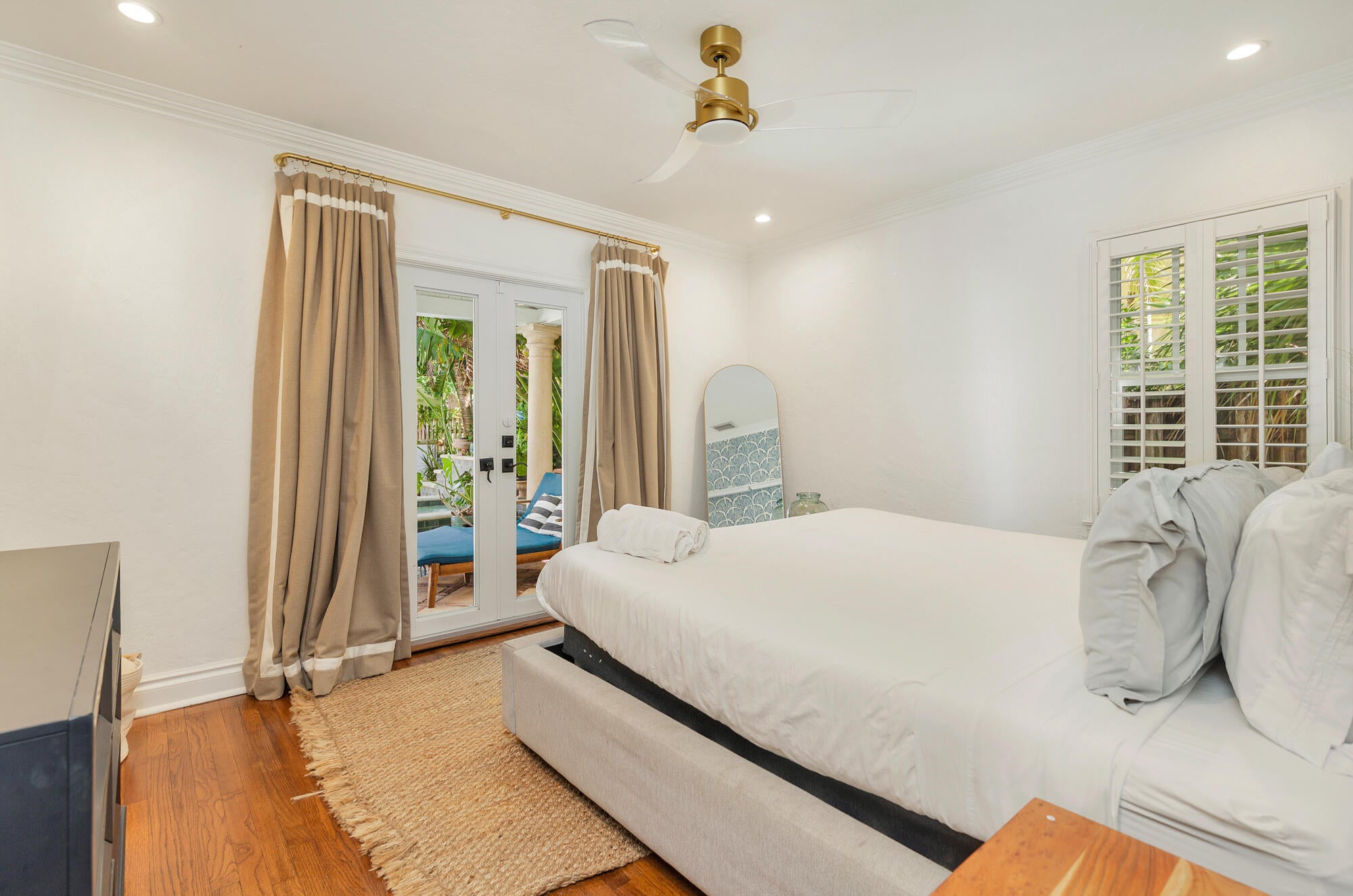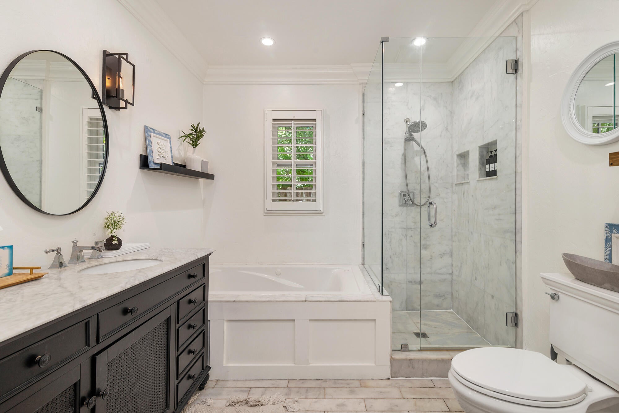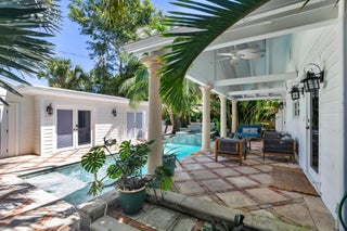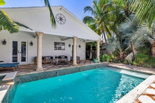 Classic Key West style cottage with pool and guest house in the heart of Old Northwood. This lovingly restored and updated private compound features a 2 bedroom, 1 bath main house with a spacious 1 bedroom, 1 bath guest cottage separated by a tropically landscaped courtyard complete with gas heated pool and spa. Historic Old Florida details include gleaming original hardwood floors, crown moulding and an elegant fireplace with built in shelving. You enter into a sunny Florida Room with plantation shutters and French Doors to the living room. The spacious eat-in kitchen features white shaker cabinetry with poured concrete countertops, farmhouse sink, stainless steel appliances including a Sub-Zero refrigerator, pot-filler, built-in microwave, and gas range for the chef.A cozy banquette has seating. Both bedrooms have historic charm and the primary has glass doors overlooking the enchanting, covered lanai and the pool. The roomy bath has a wide double vanity, soaking tub and separate frameless glass-enclosed marble shower. The oasis-like courtyard boasts multiple seating areas for sunseekers as well as covered areas for lounging and al fresco dining. The water features include cascading waterfalls from the spa into the pool. Lush landscaping makes this courtyard private and the perfect compound to entertain family and friends. The guest cottage is complete with living area, kitchen with granite countertops, full bath and it has its own laundry in addition to the laundry in the main house. Multiple sets of French Doors flood the cottage with natural light and there is an attached garage area for storage for your bicycles and water toys. 441 34th Street is conveniently located in the Old Northwood Historic District just minutes from downtown West Palm Beach and CityPlace and it is close to the north bridge to the island of Palm Beach to enjoy the beaches and world-class shopping and restaurants. There is so much excitement now in the north end with the development in Northwood Village with its fun shops and eateries, new ultra-luxury condo buildings, the Broadway Corridor redevelopment plans, the Rybovich expansion for super-yachts and new waterfront restaurants and private clubs including the Cove. This home is just two blocks from the Intracoastal Waterway and this section of North Flagler Drive has multiple waterfront parks, the Palm Beach Sailing Club, and is not far from the $35 million dollar redevelopment at Currie Park that has begun with extensive renovations to the beloved public waterfront areas to include redesigned open park areas, new boat ramps, a public art plaza, tidal amphitheater, playgrounds and fitness areas. This home is the perfect tropical Key West compound in the north end!