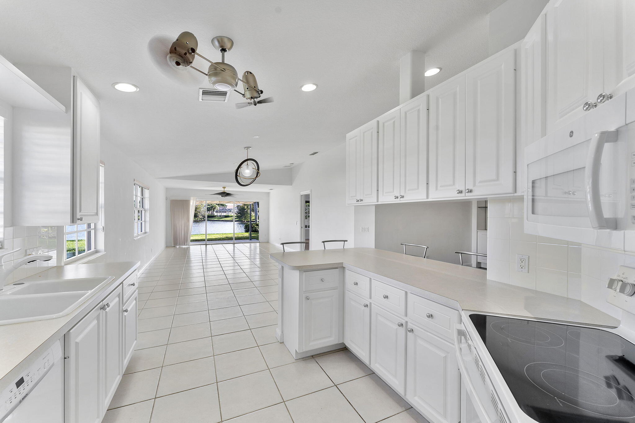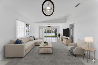Prepare to be swept away by this truly exceptional villa, where pristine contemporary design meets the tranquil luxury of waterfront living. This rare gem is perfectly configured as the ultimate low maintenance retreat, featuring 2 beds, 2 baths, and a 2 car garage. Step inside and be instantly greeted by a dramatic, light-filled atmosphere. Soaring, vaulted ceilings enhance the open-concept living area. The gourmet kitchen is a study in bright, minimalist function, showcasing extensive white cabinetry and bright countertops that flow seamlessly into the living spaces. This property and community are a rare and compelling find offering top-tier finishes, unparalleled water views, and the perfect scale for effortless luxury living.