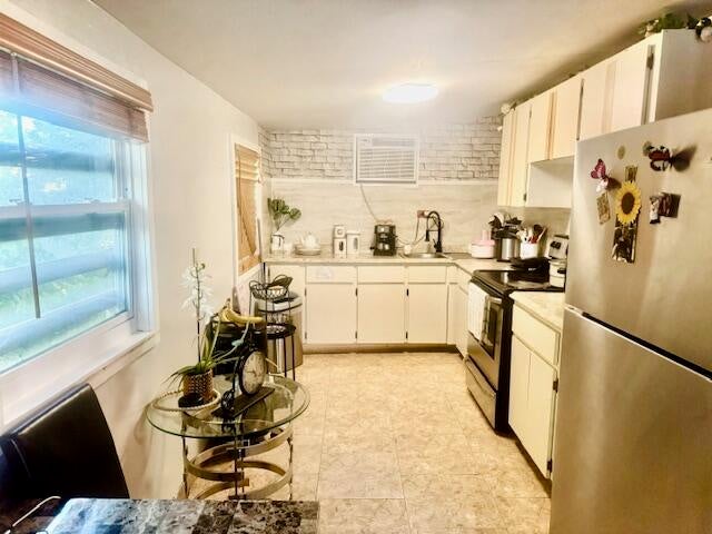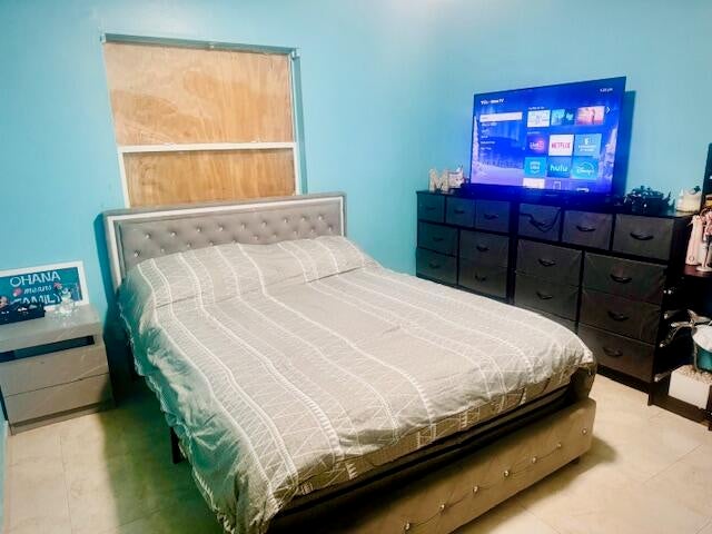This charming home is being sold as is. It features two bedrooms and two bathrooms, with a remodeled garage that has been converted into an additional living space (a big room that can serve as another bedroom). The enclosed porch now serves as a cozy living room and kitchen area. The entire house boasts new tile flooring and upgraded bathrooms. The kitchen has been freshly painted, and new tiles have been added to the backsplash, giving it a modern and refreshed look.Additionally, there's great rental potential, as one section of the house can be used as a separate unit. This section includes its own bedroom, bathroom, kitchen, and a walk-in closet, plus a separate entrance for privacy.