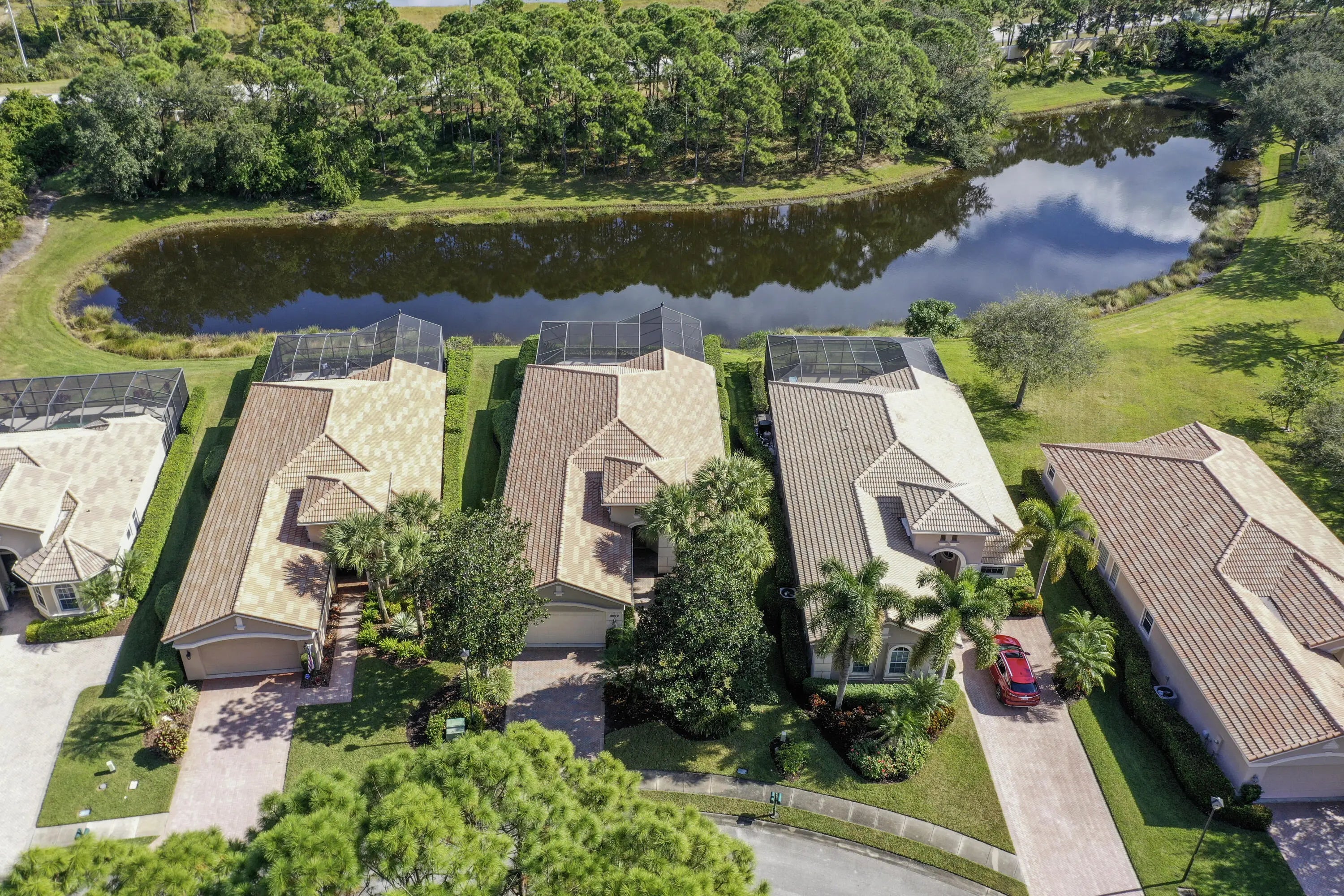 LAKEFRONT POOL HOME THAT OFFERS GREAT PRIVACY AND GREENSPACE! The popular 2/2+ den/3rd Bedroom Fairview model. Open plan with spacious rooms and great natural light from the wall of sliders leading to the newly screened lanai featuring a large pool and covered space for entertaining. This home has been very gently lived in with a neutral palette allows opportunity to customize to your taste. Newer SS appliances, 42'' wood cabinets, granite counters, large pantry. Spacious island w/ bar seating is open to the vaulted dining and great room. The oversize main suite overlooks the pool and lake. Dual walk in closets lead to the oversize en suite with spa tub, separate shower, private water closet and dual sinks. The 2nd bedroom and DEN/OFFICE/3RD BR have easy access to the guest bath.